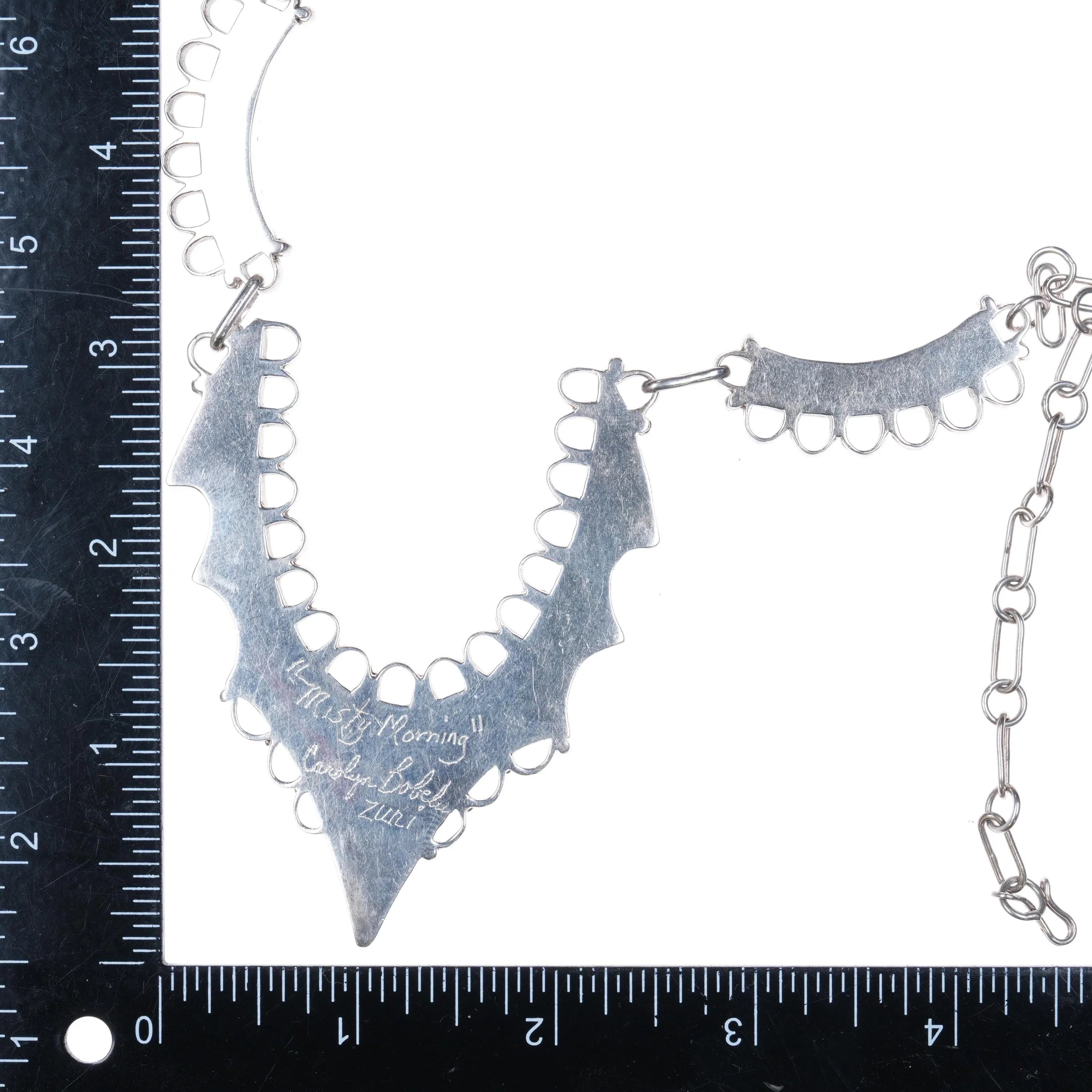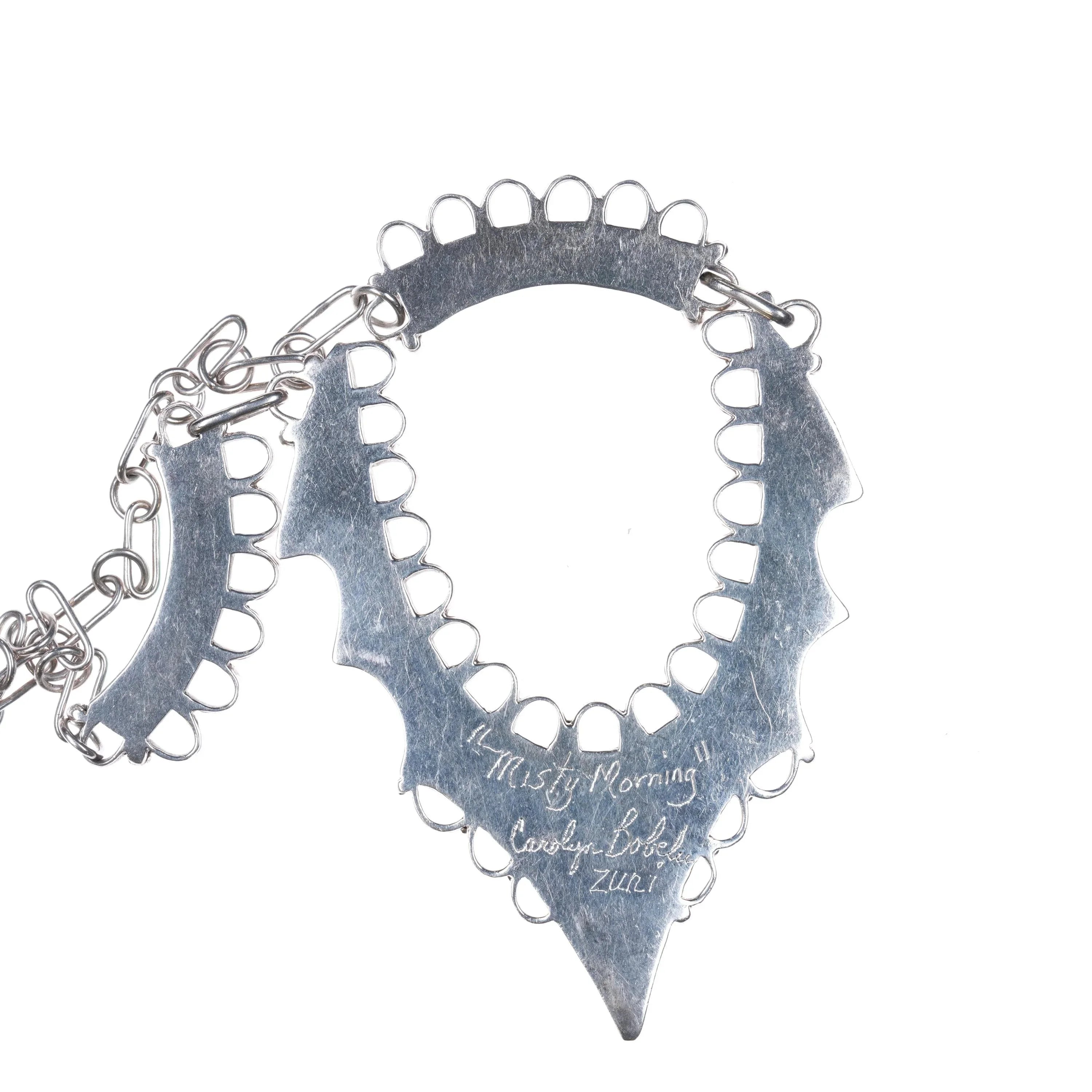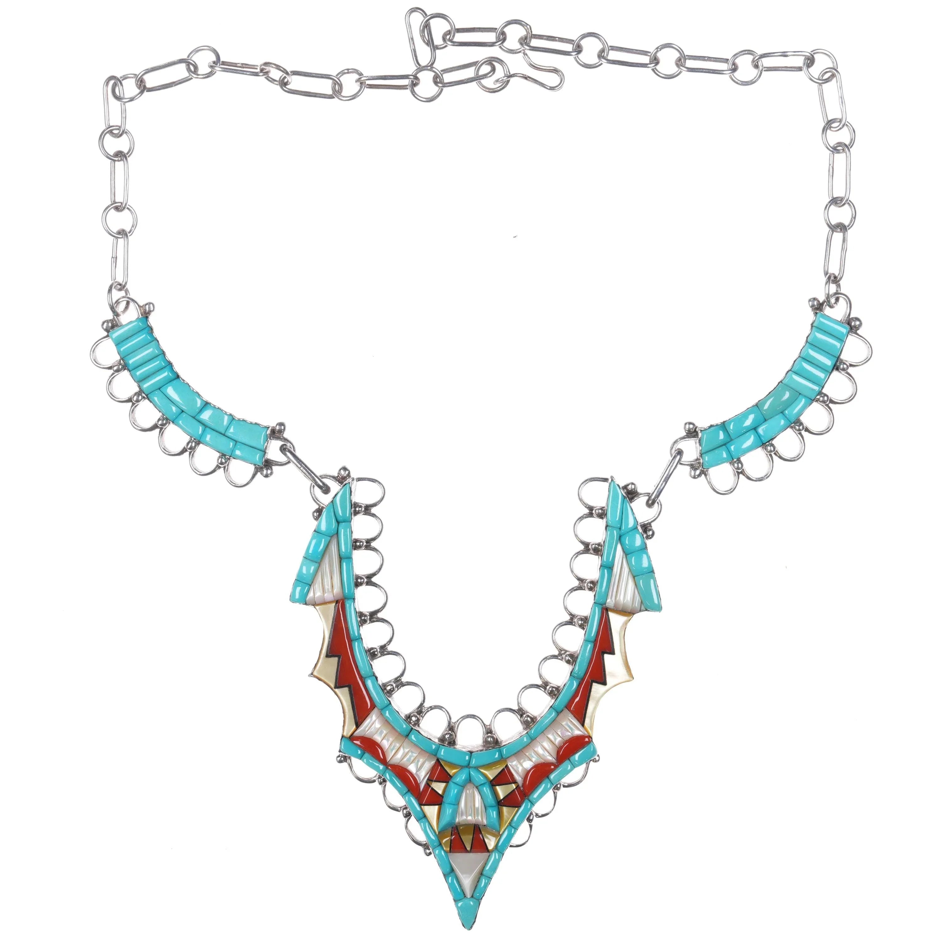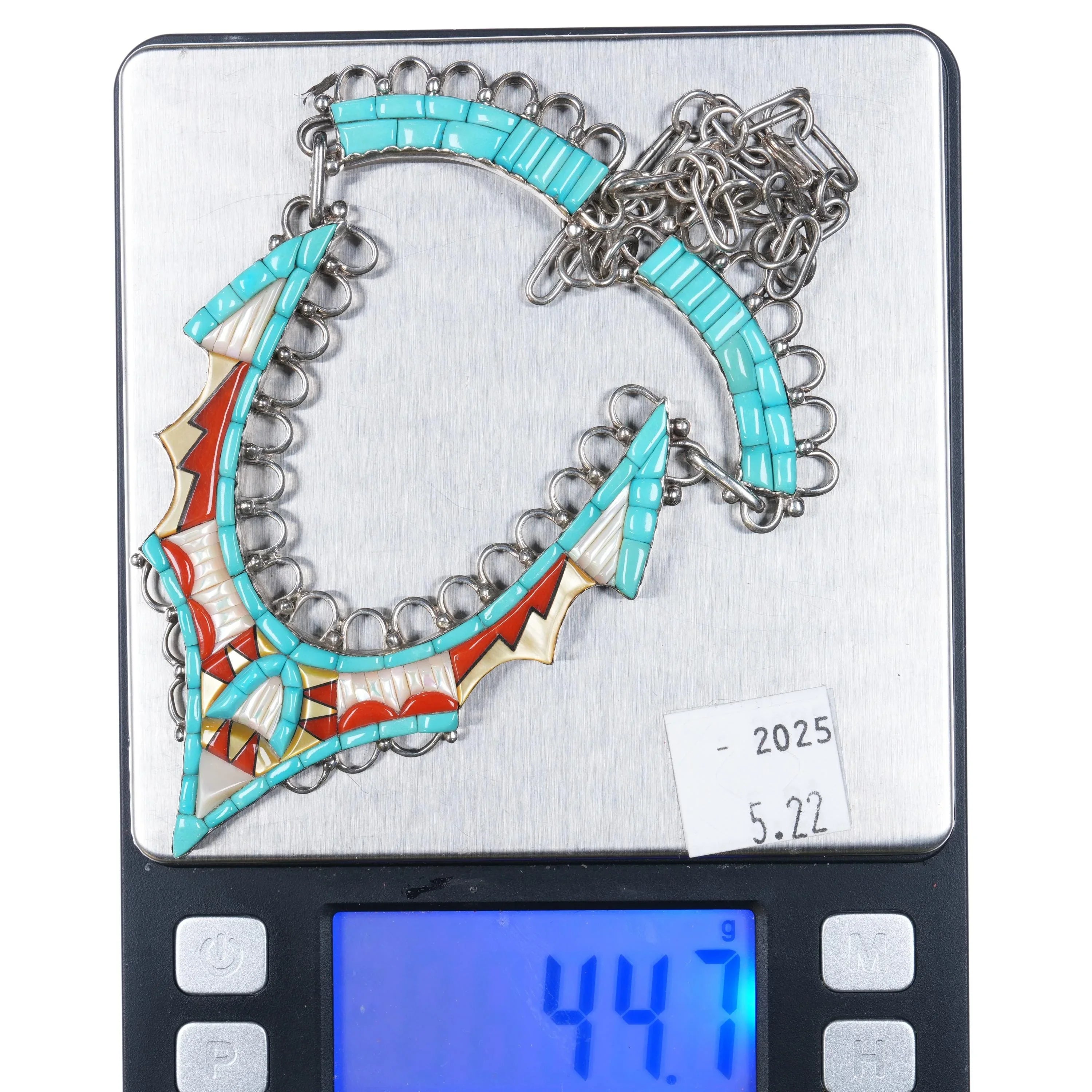 Carolyn Bobelu Zuni Sterling silver coral turquoise cobblestone inlay necklace