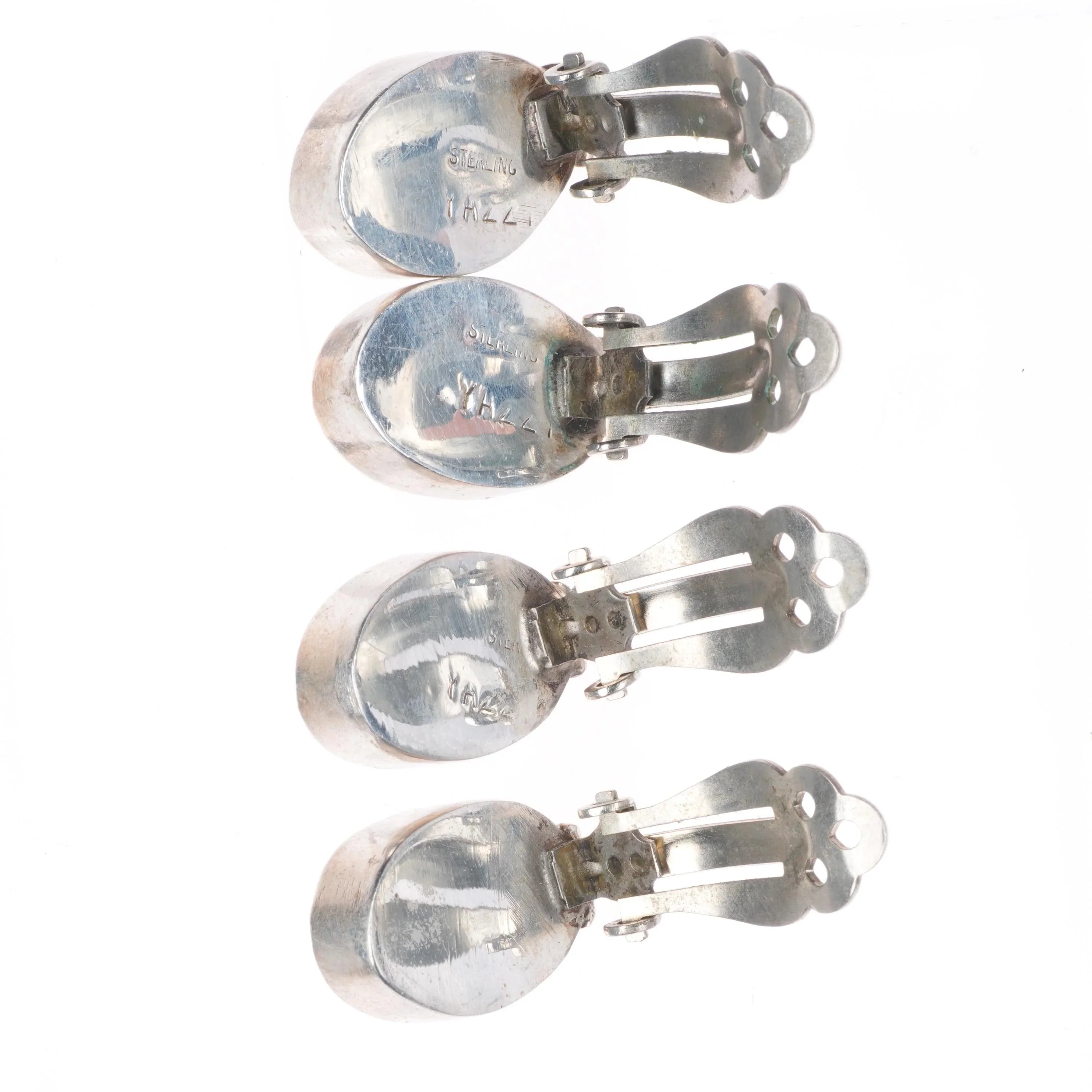 Edison Yazzie Navajo sterling silver multi-stone channel inlay clip-on earrings. Great earrings with no damage, some wear to stone faces, strong springs on clips. Selling both pairs shown.