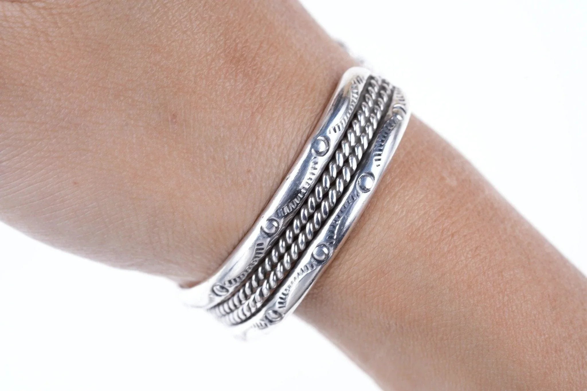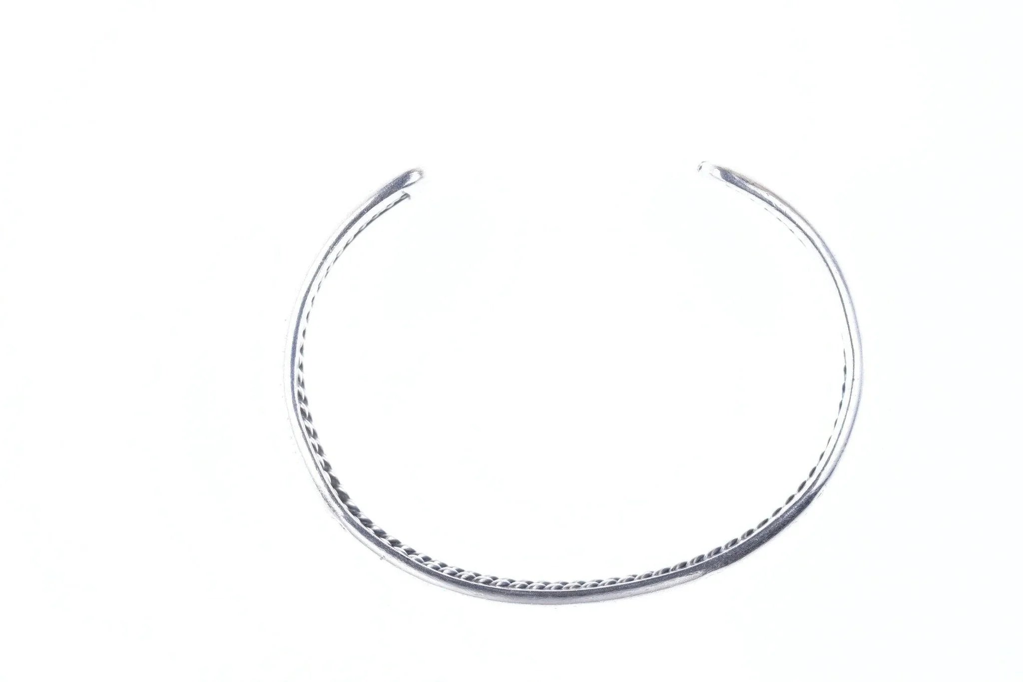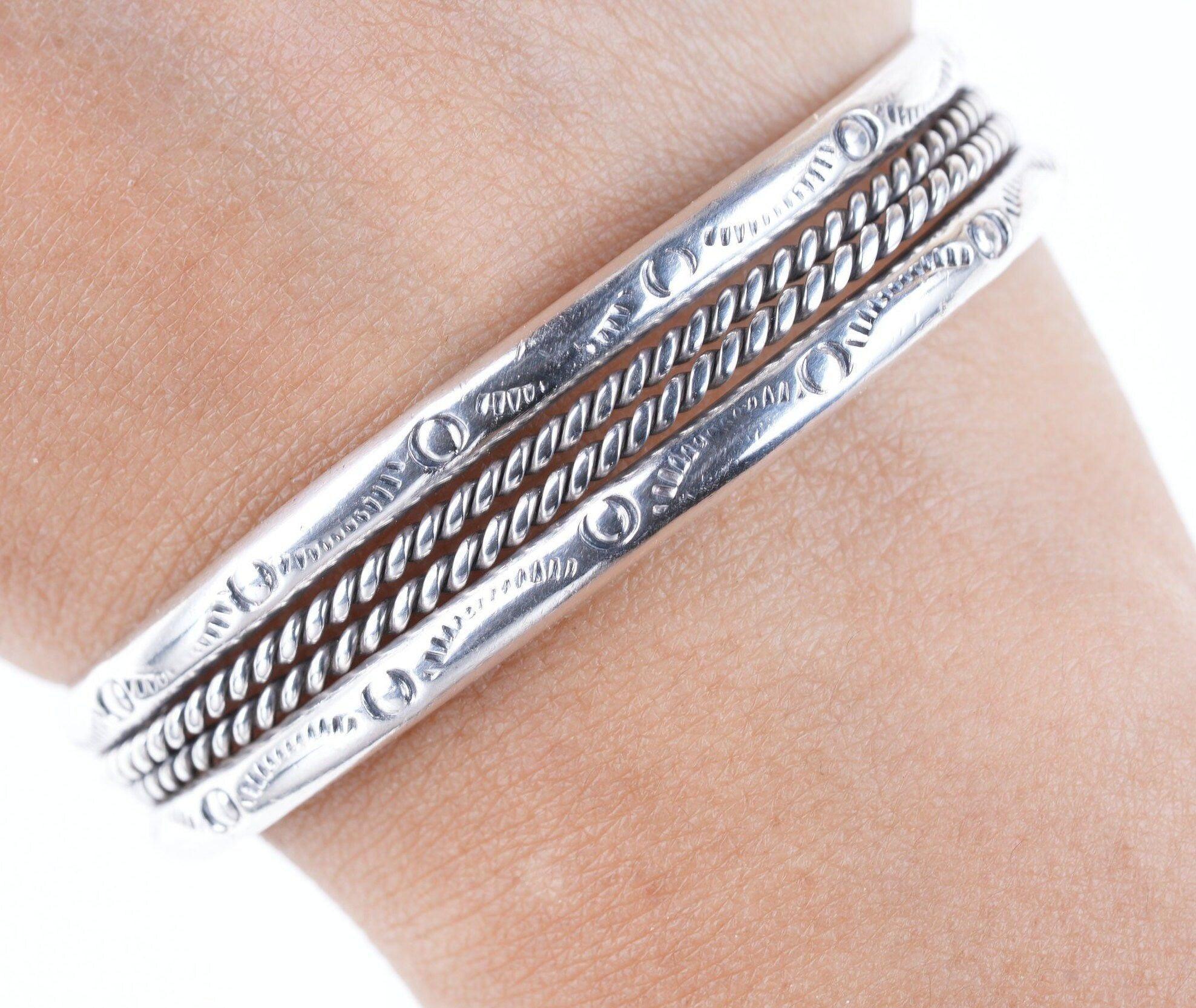 6.25" Vintage Native American sterling cuff bracelet. 6.25" inside diameter including 1" gap, unmarked other than makers mark (tested) sterling. 24.4 grams.