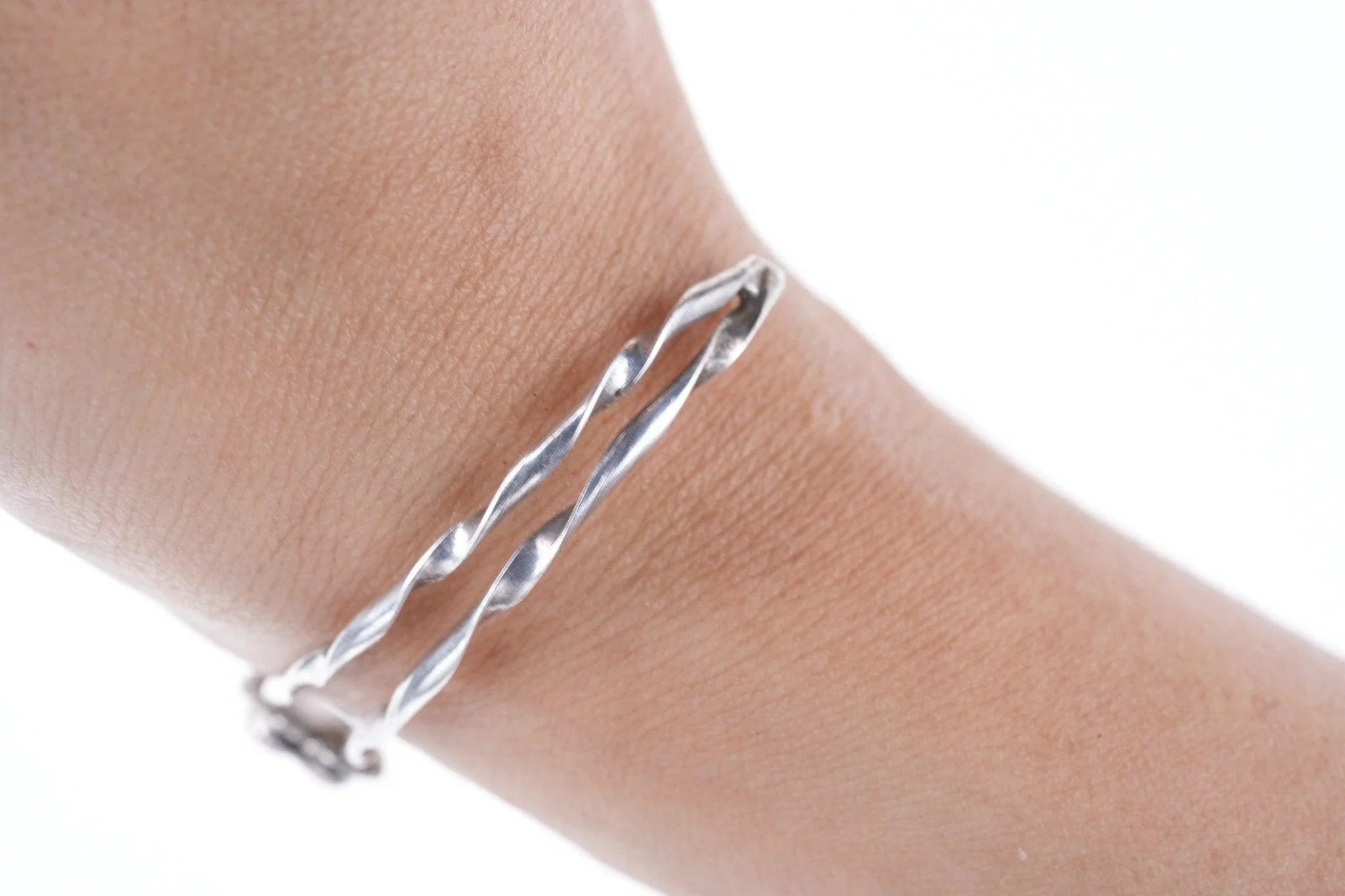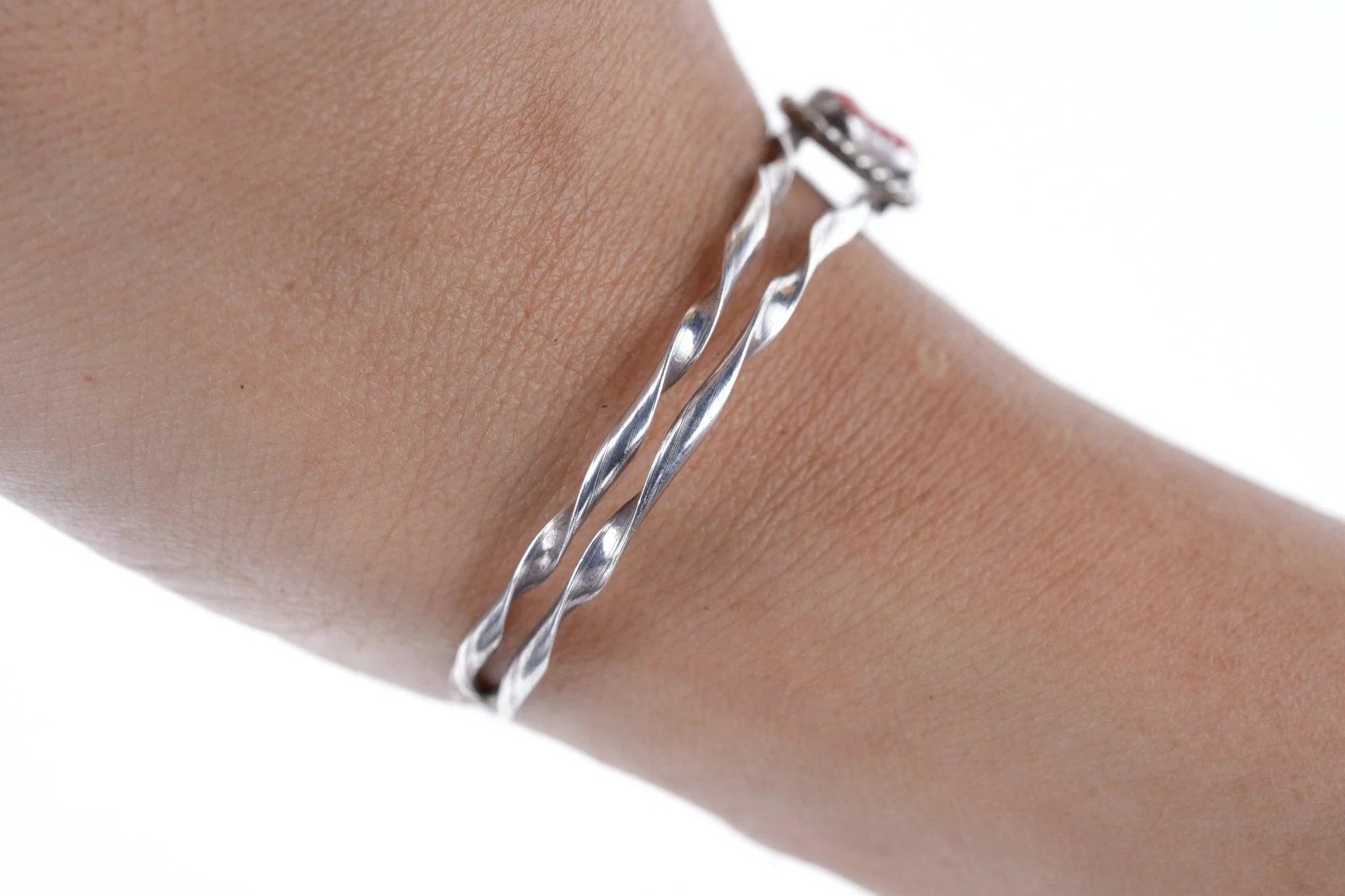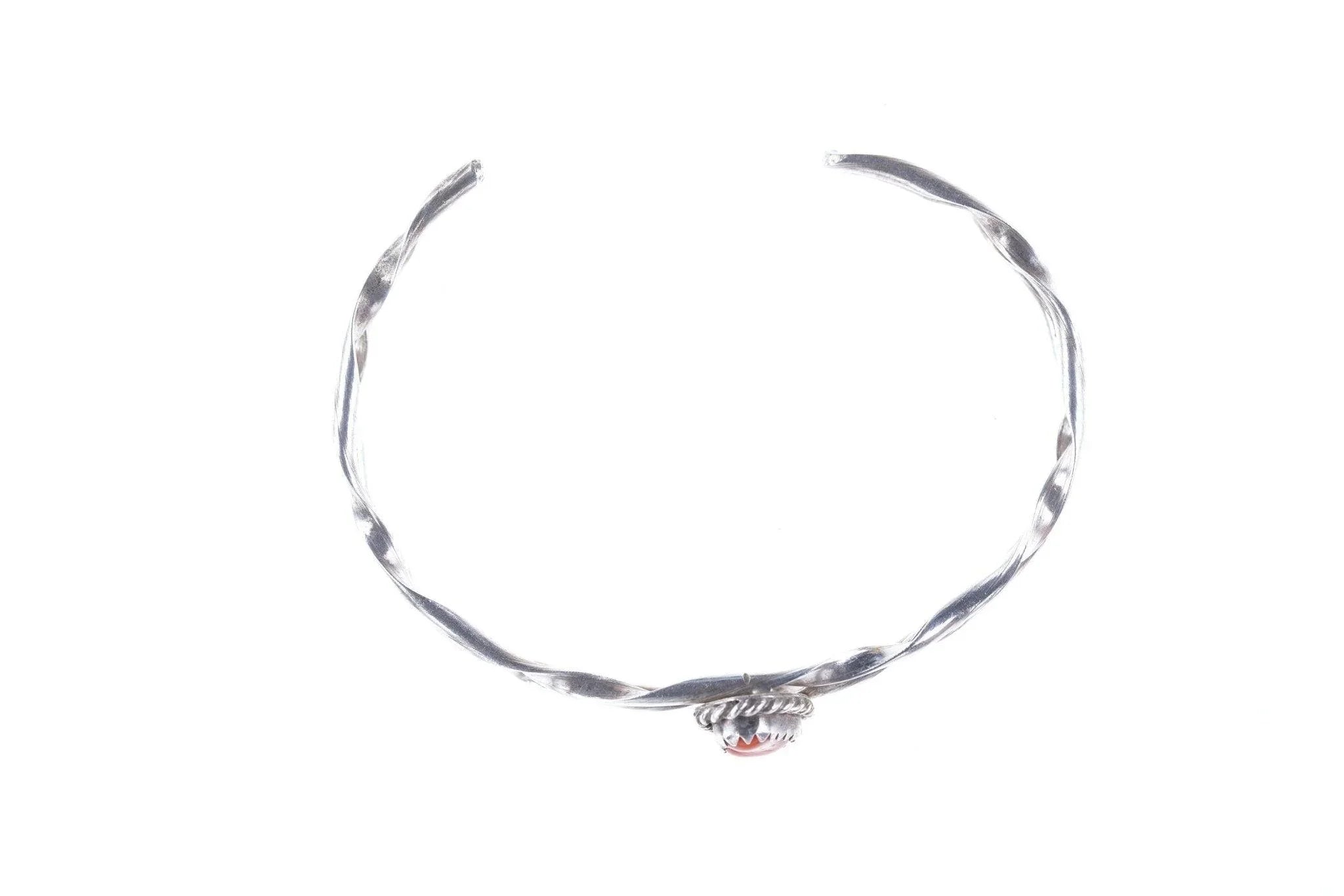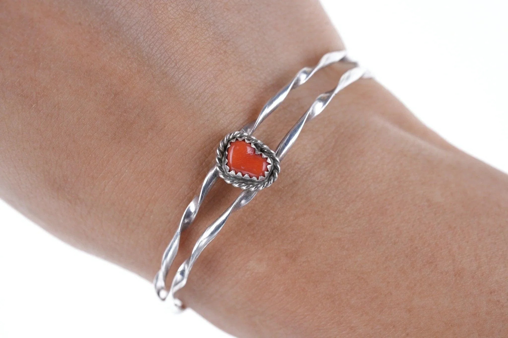5.5" Native American Sterling/Coral cuff bracelet. Unmarked, tested sterling, genuine coral 1" flexible gap 5.5 grams.