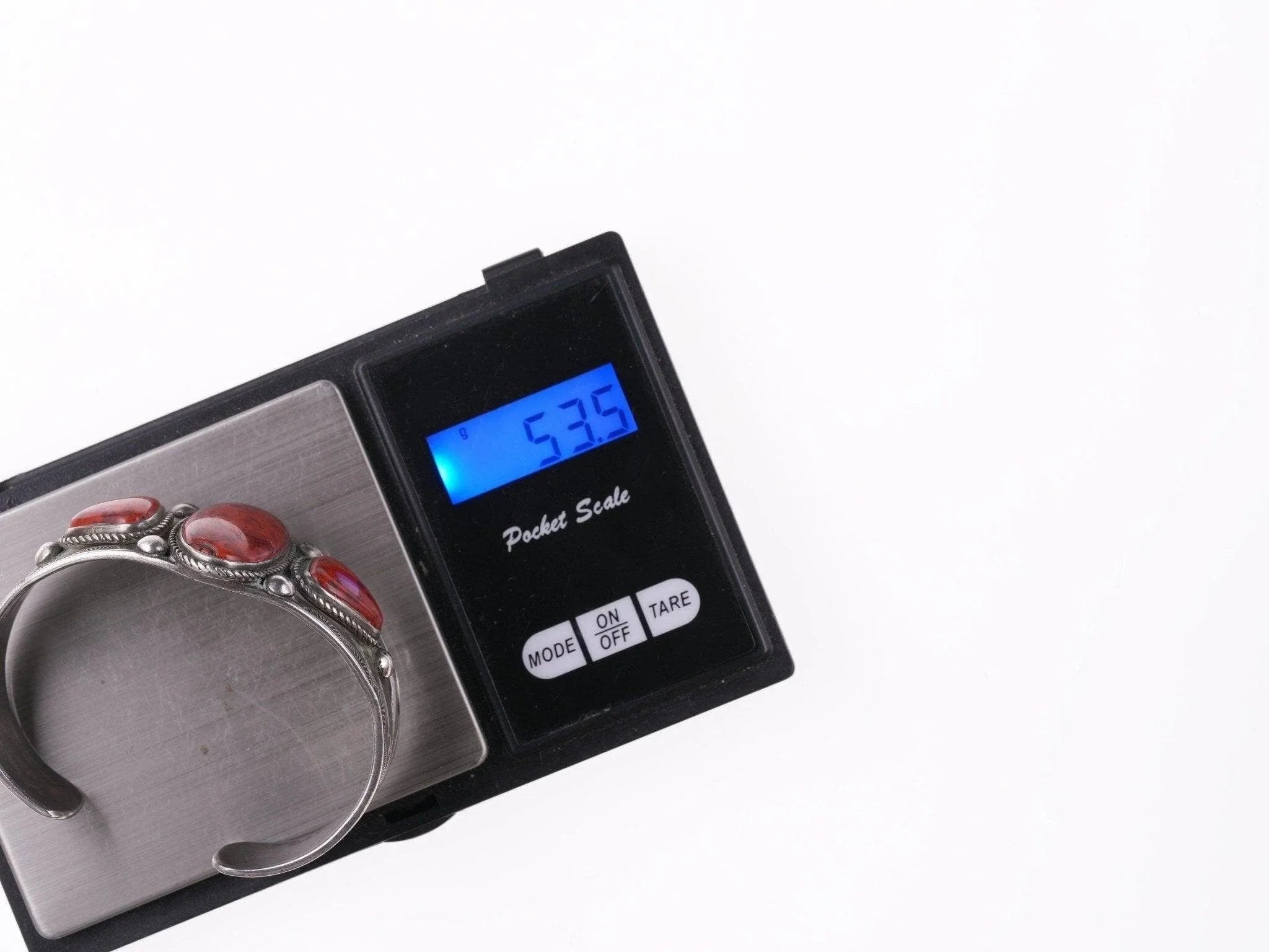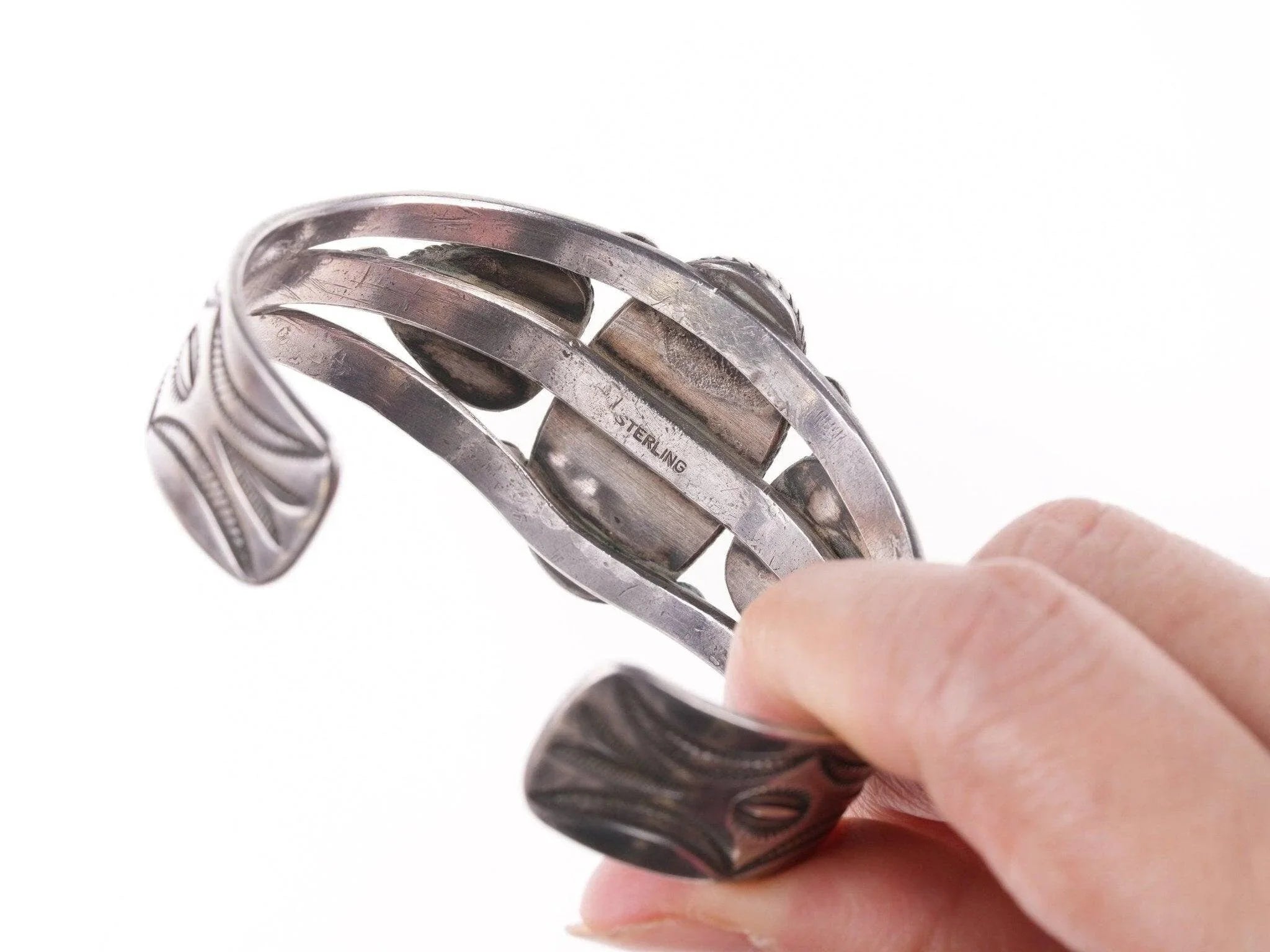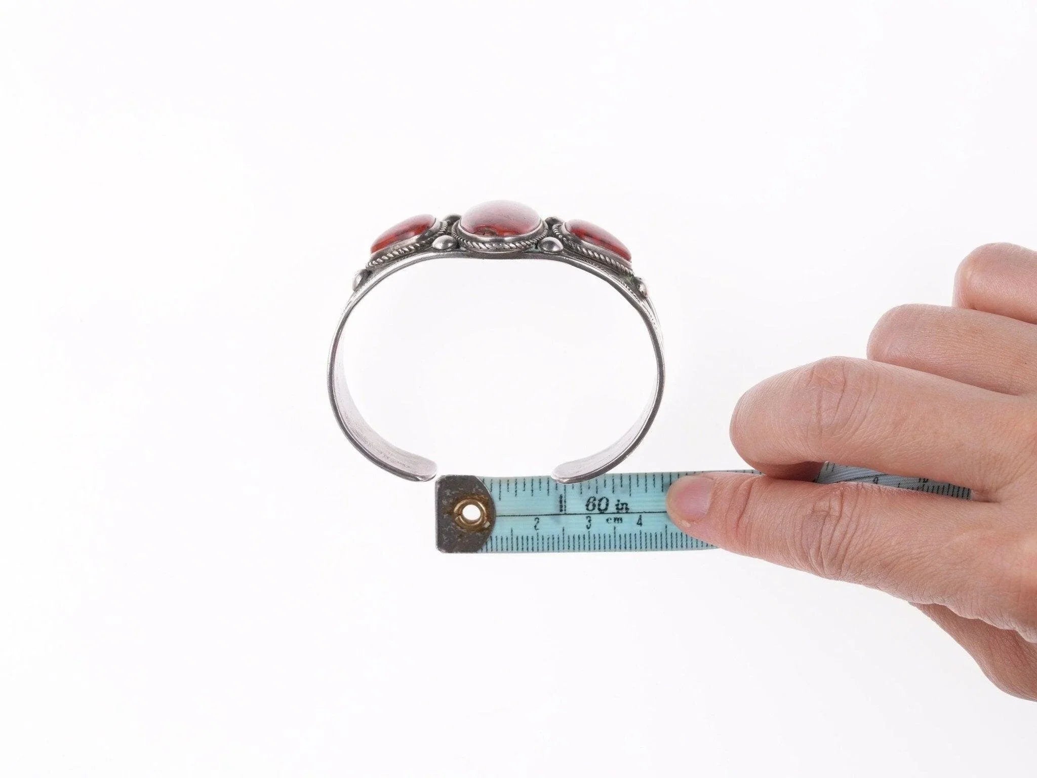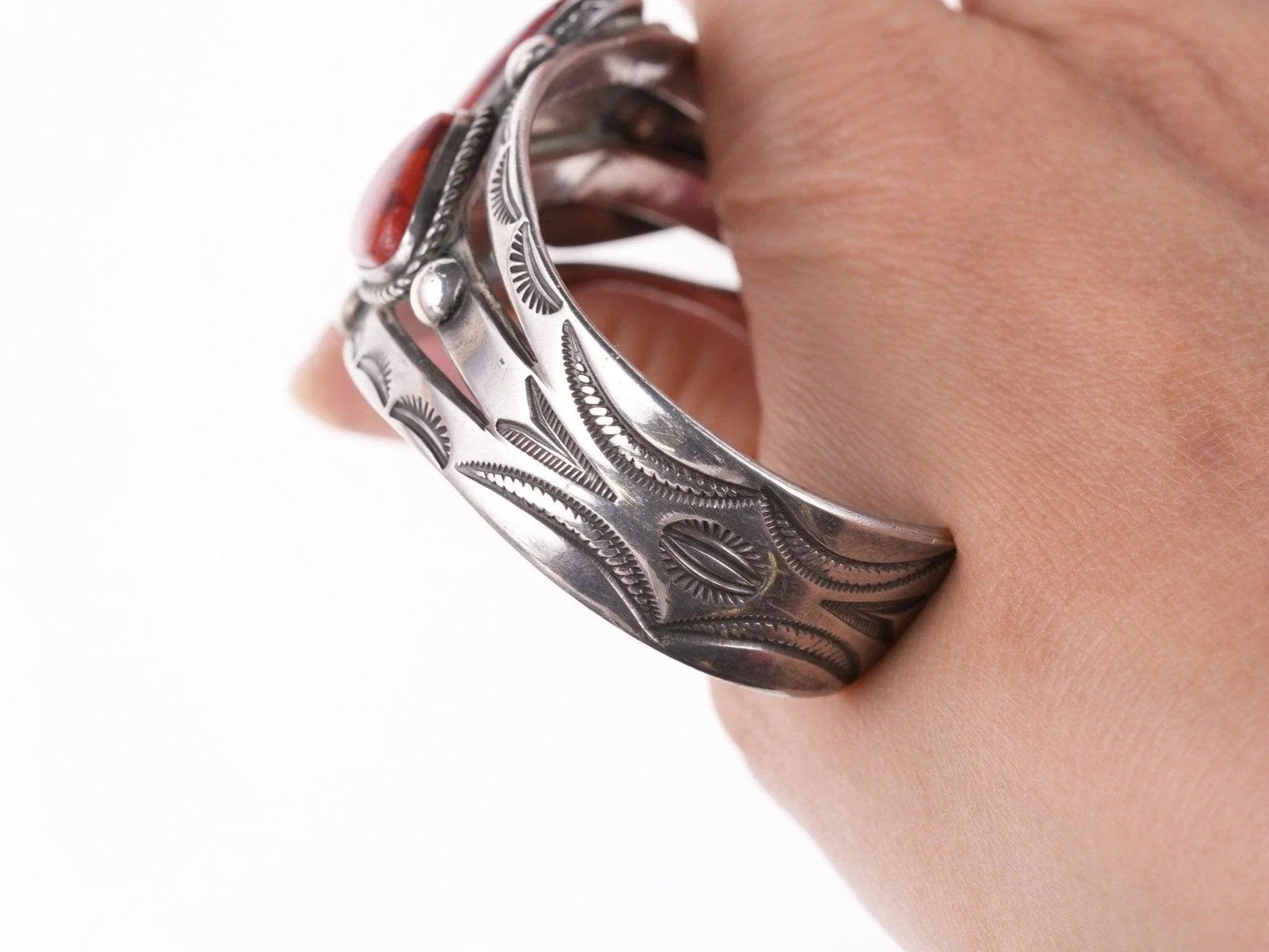 6.5" 40's-50's Navajo Stamped silver red jasper cuff bracelet