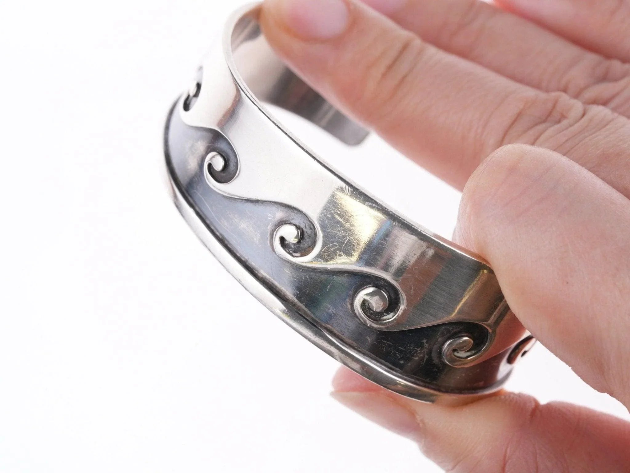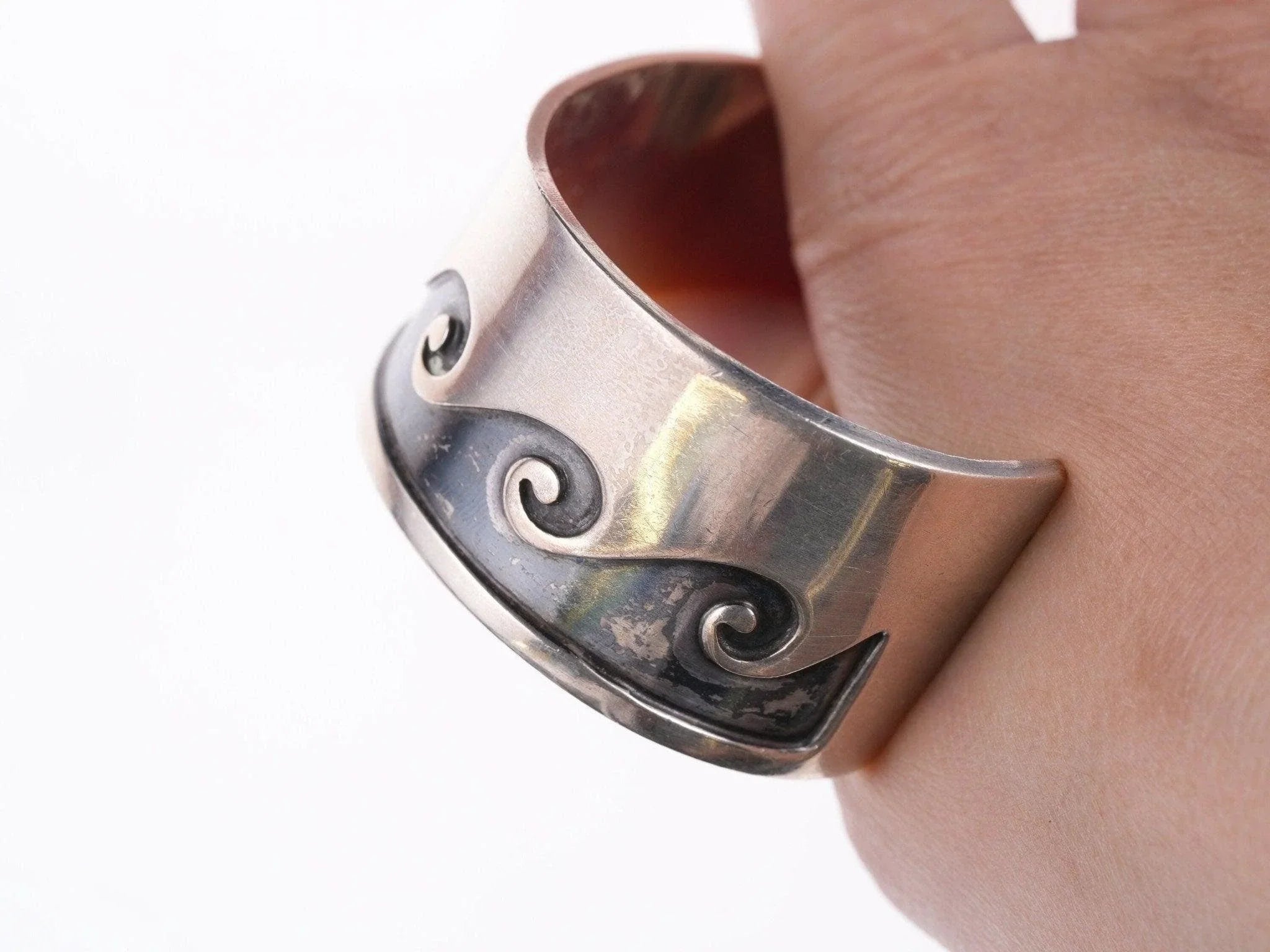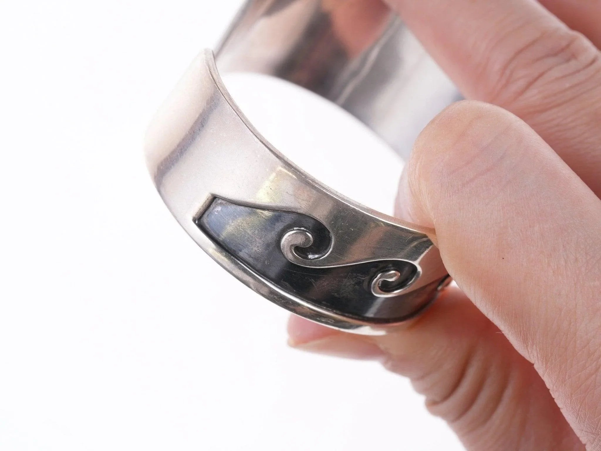 6.5" Vintage Native American Sterling Overlay style bracelet. High quality<br>handmade overlay bracelet with no markings.<br><br>All precious metals are tested and guaranteed, any Native American jewelry<br>referred to as Silver or Sterling is guaranteed to be a minimum of 90% (coin)<br>silver and possibly higher content. Anything marked is guaranteed to be what<br>it's marked, most bracelets are photographed on a 6" wrist (non hairy), rings<br>photographed on the appropriate sized finger when possible. With bracelets if<br>the measurement is not given in the description then inside circumference is<br>shown where the metal meets the number on the the cloth tape measure.