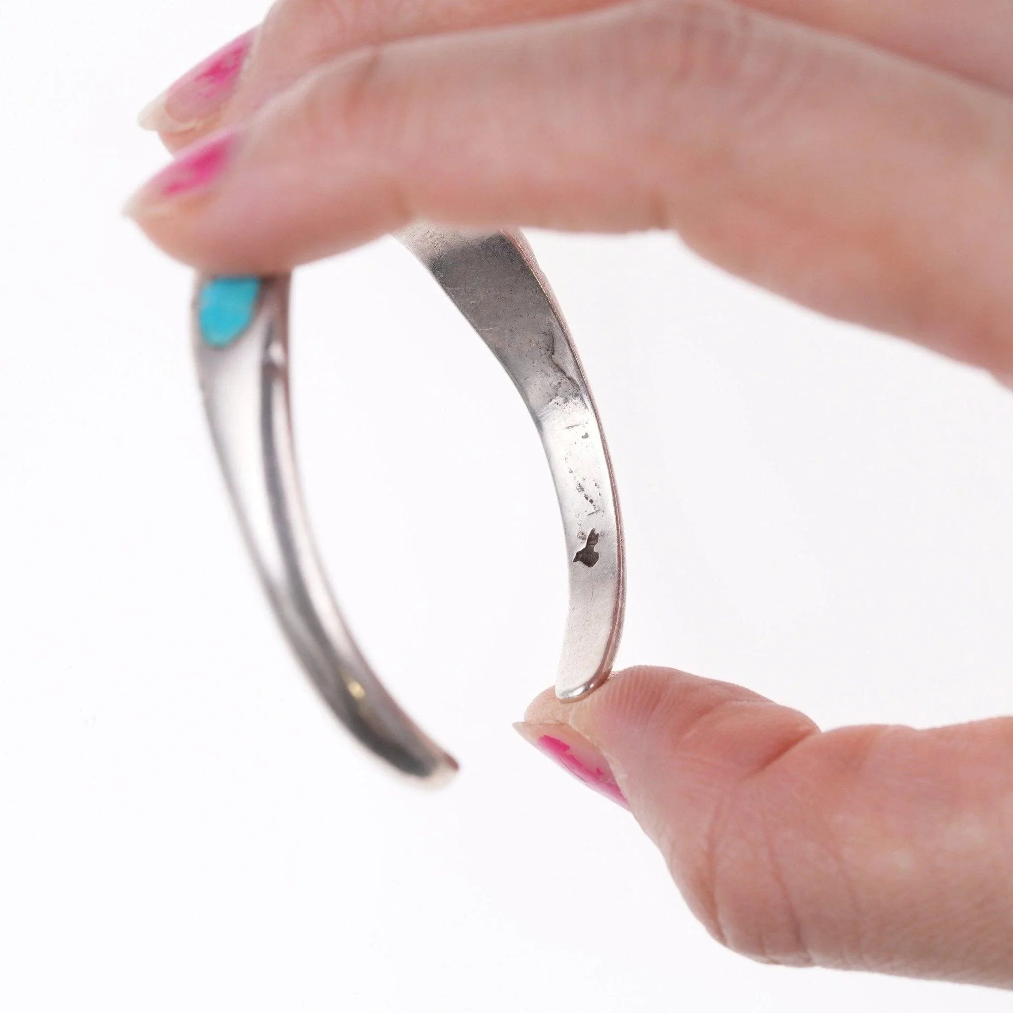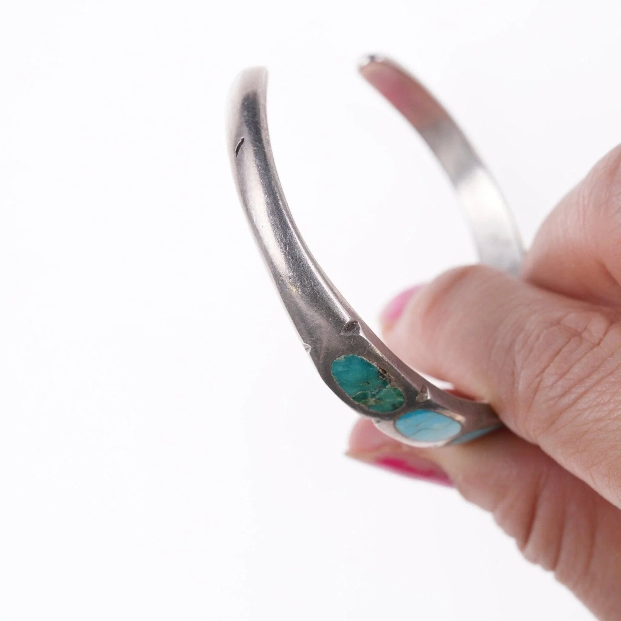 6.25" Vintage Zuni channel inlay turquoise silver cuff bracelet