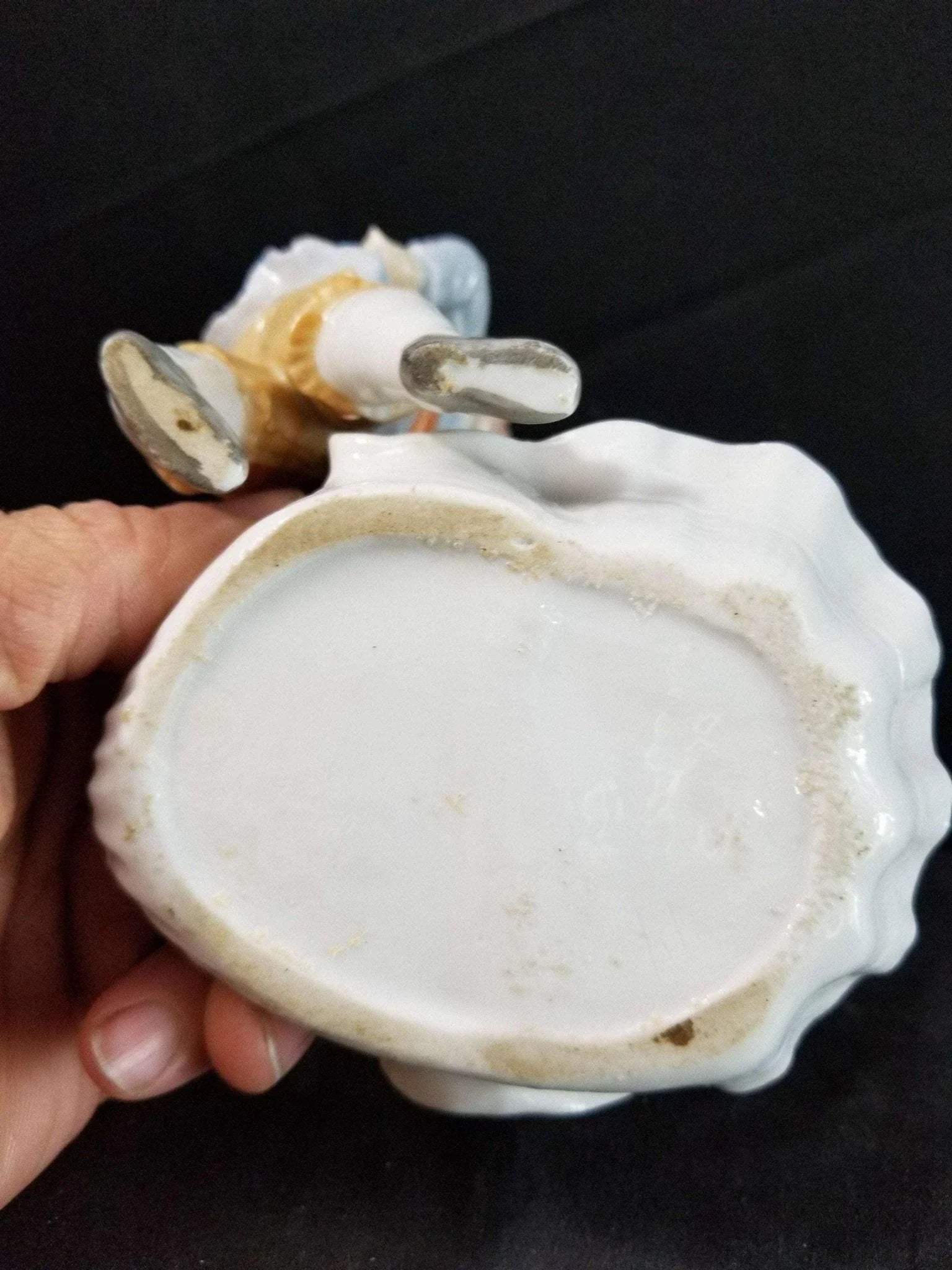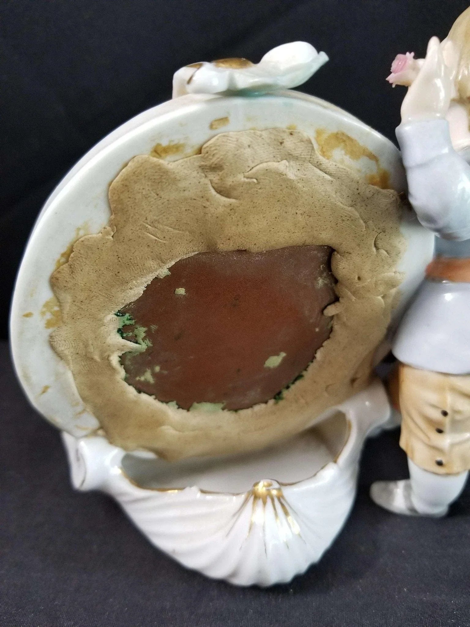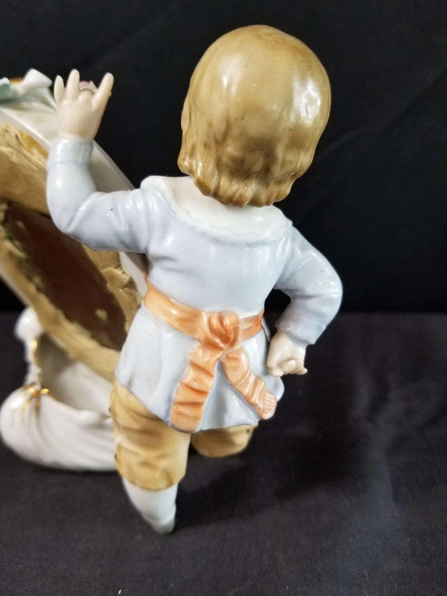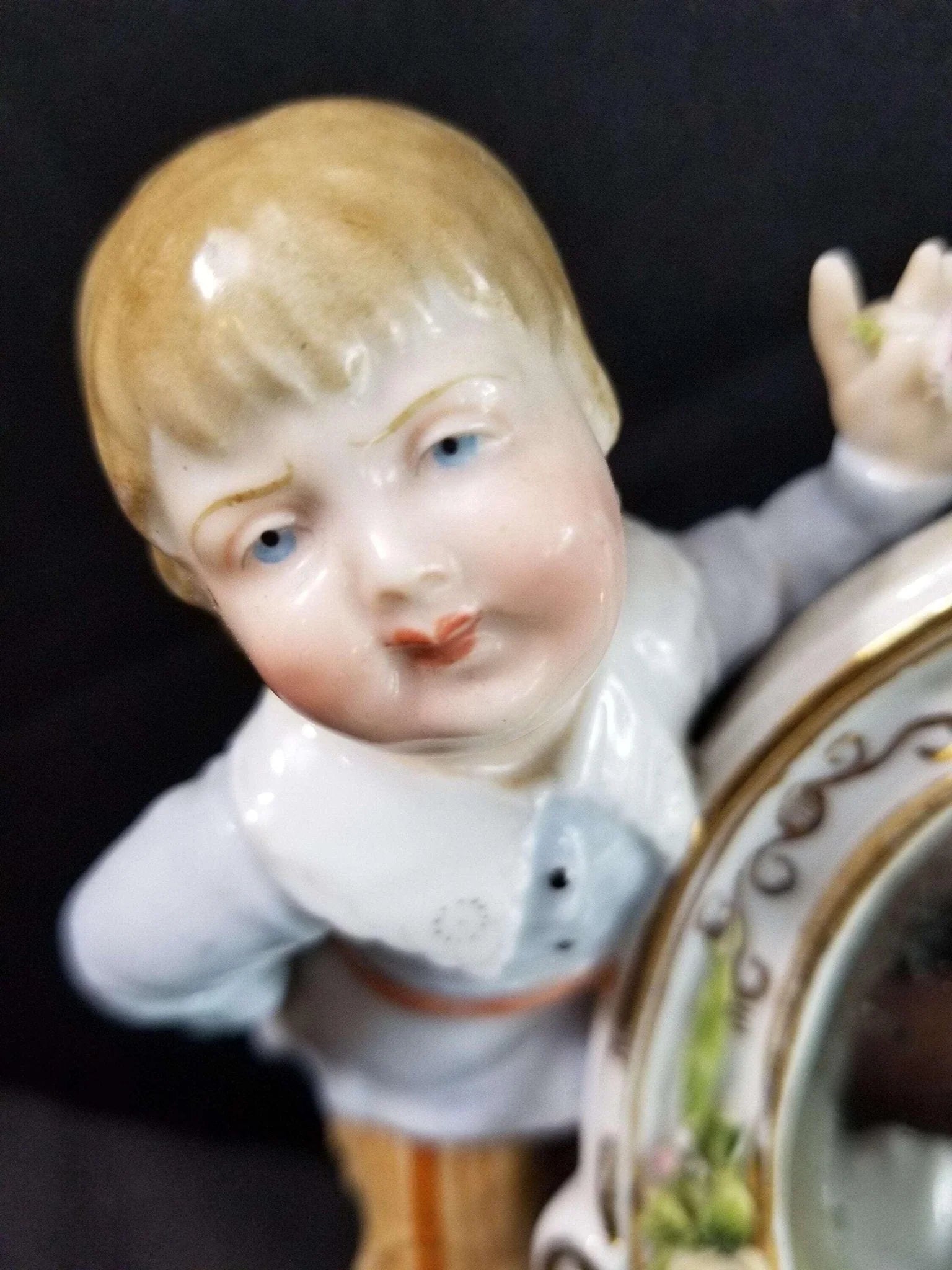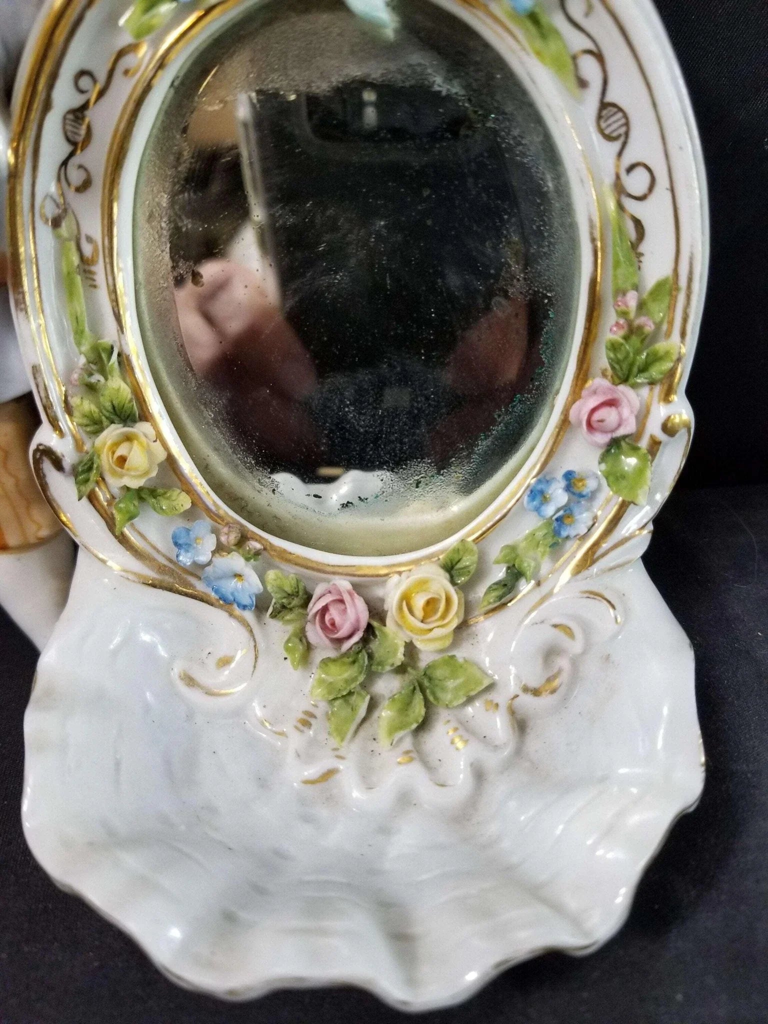 Dresden Porcelain Mirror With Boy Encrusted Flowers Ring Holder Whimsical 19th c