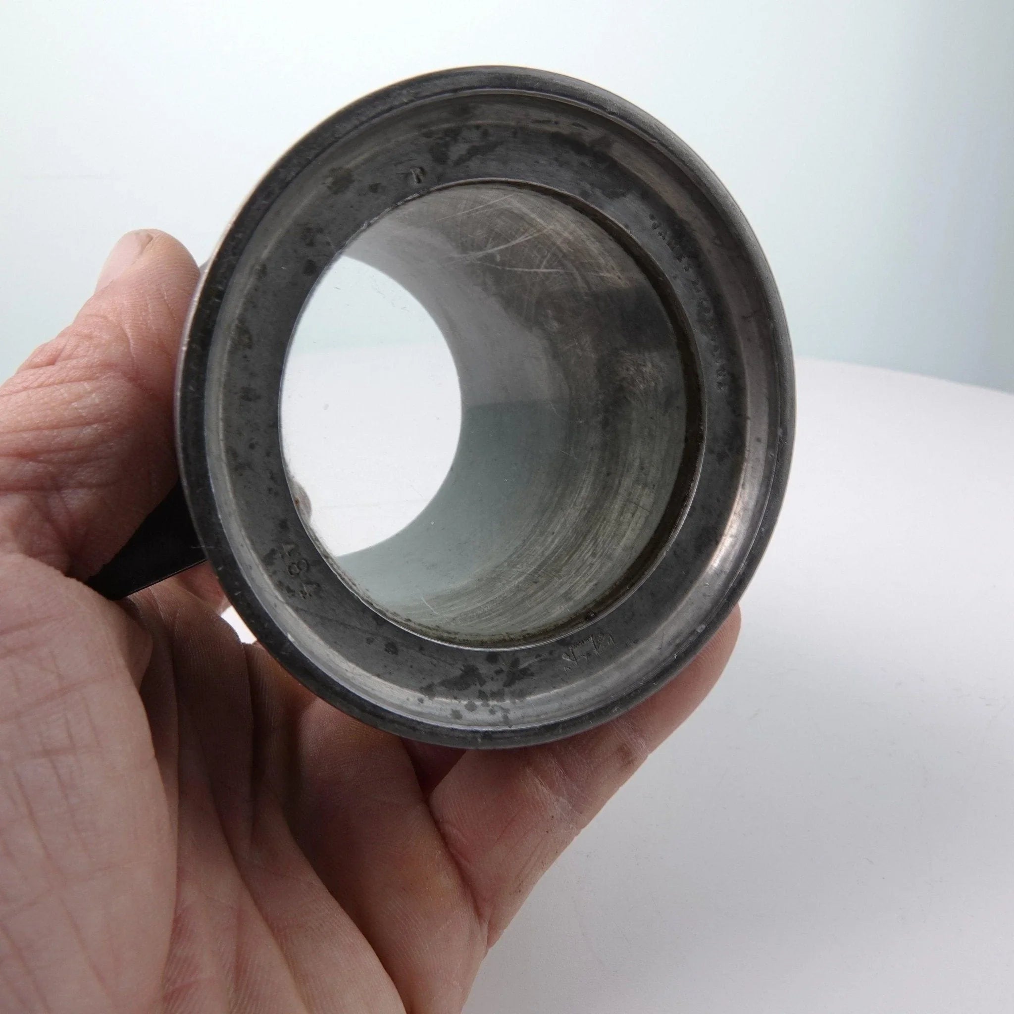 c1880 Glass Bottomed Pewter Tankard Half Pint by James Dixon