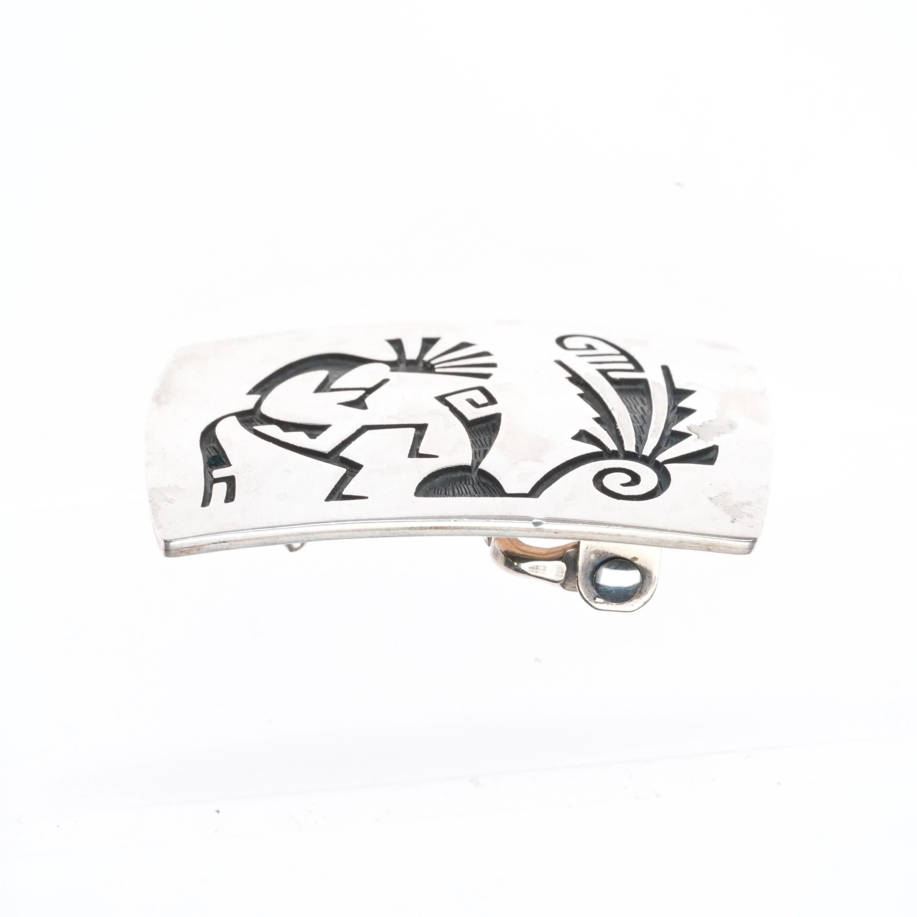Faron Yowytewa Hopi Overlay Kokopelli belt buckle sterling silver