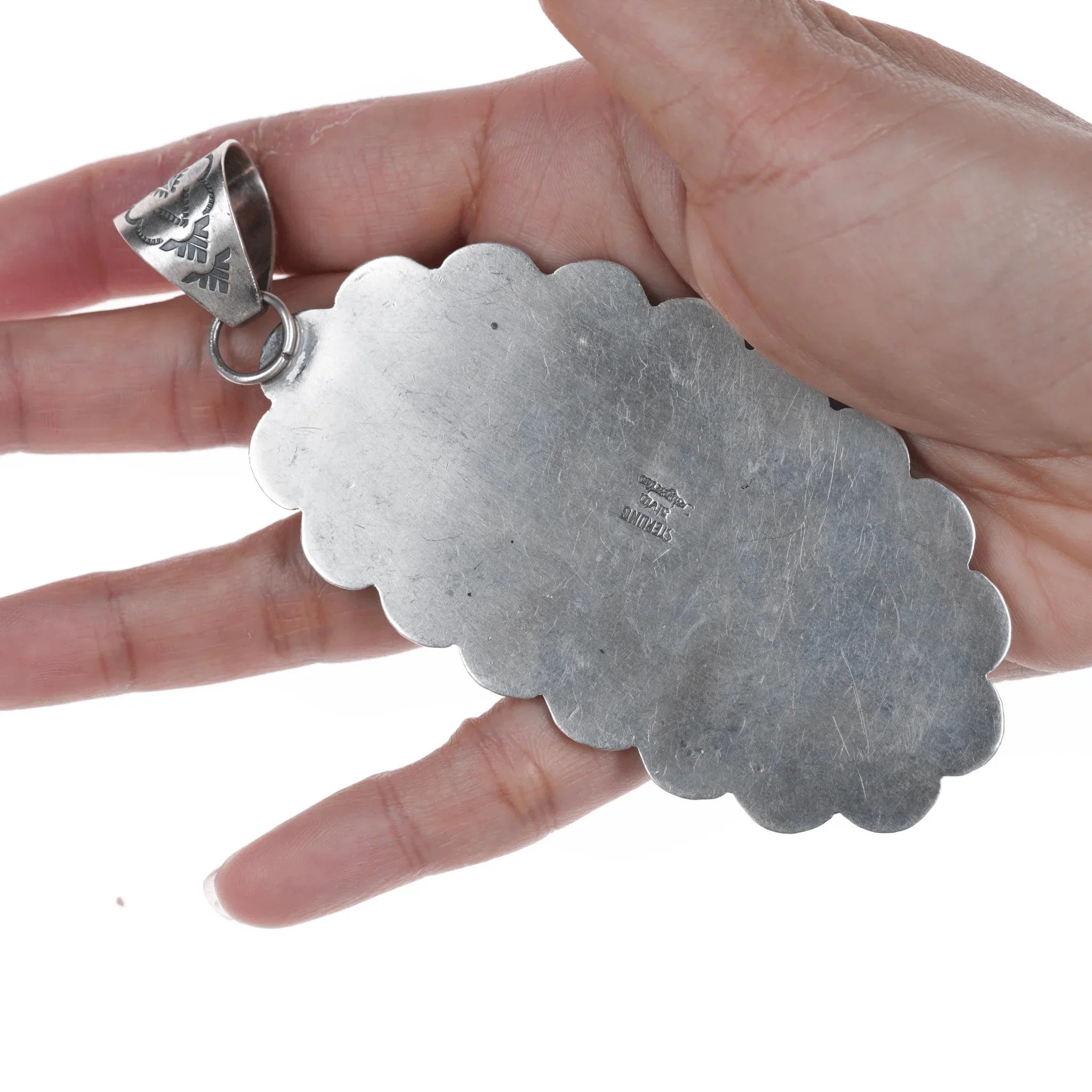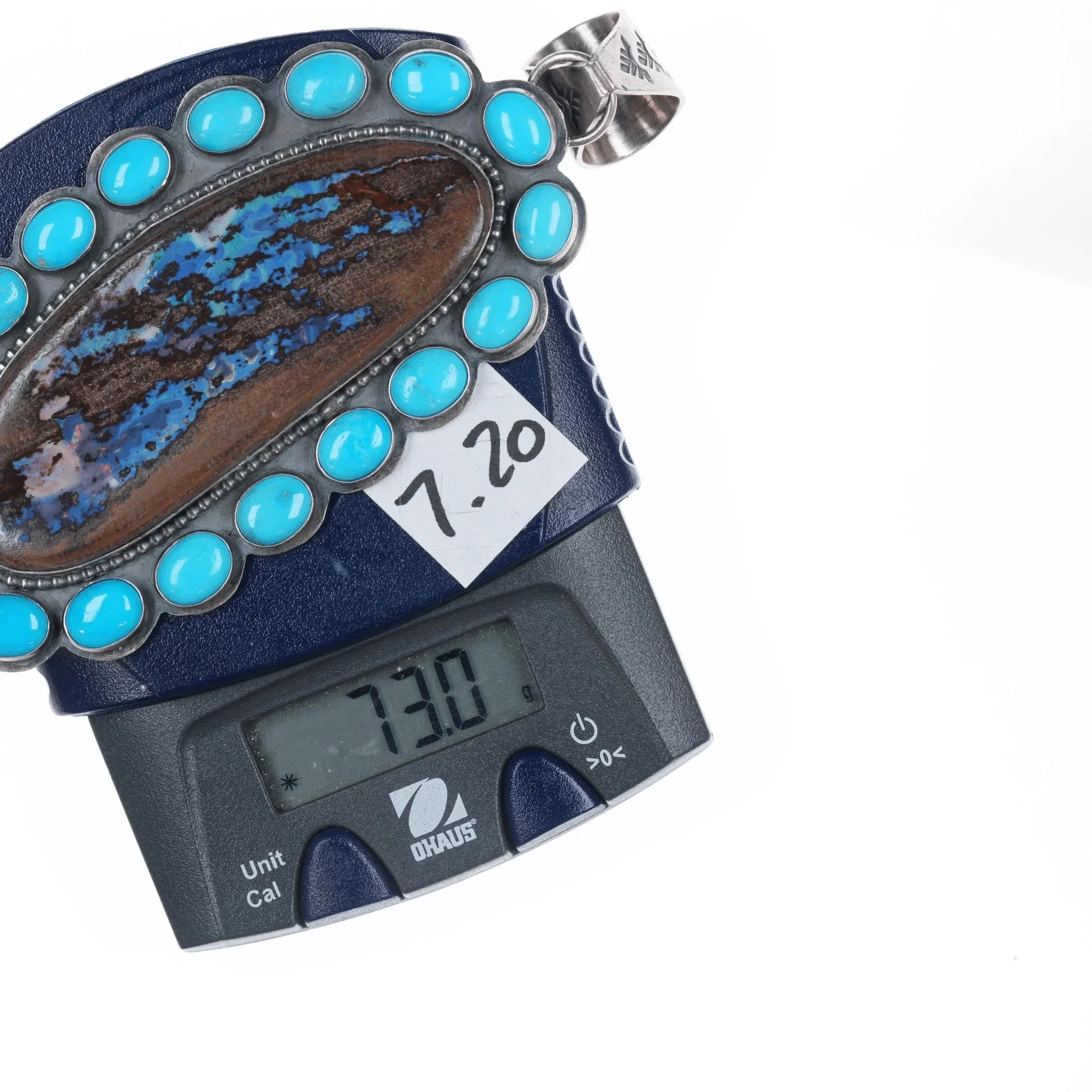 Huge Calvin Delgarito Navajo sterling Boulder Opal turquoise cluster pendant, no issues.