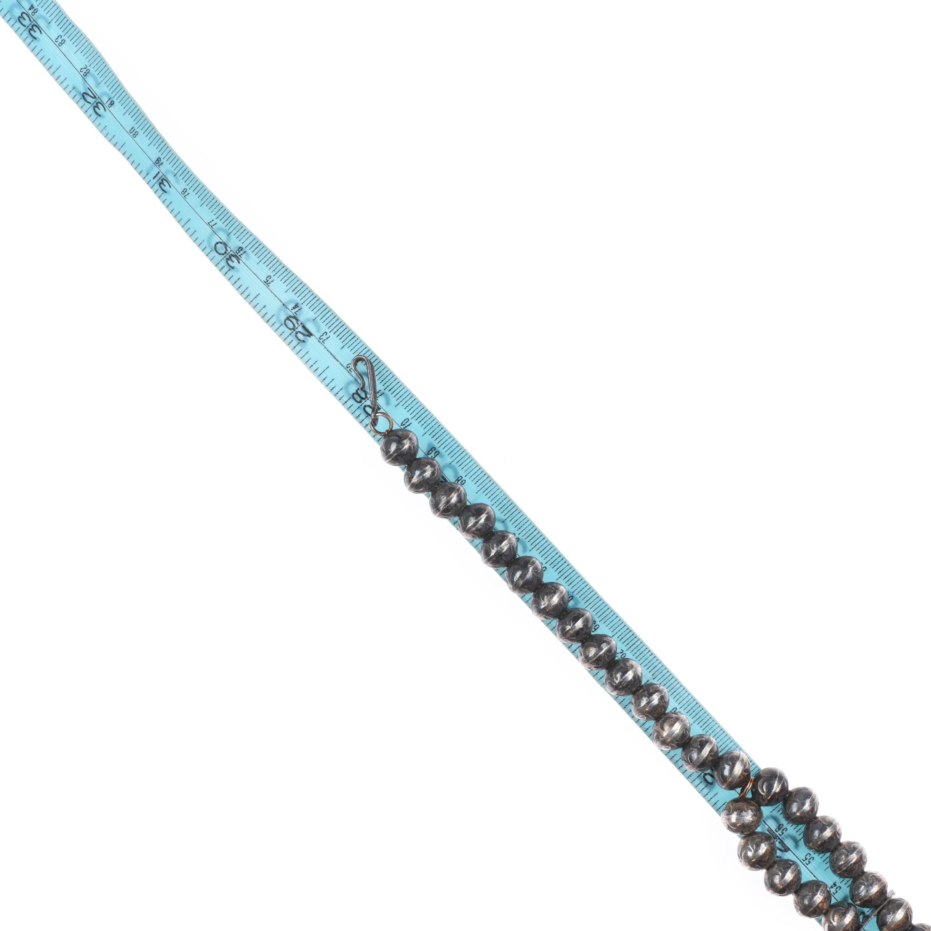 L Burnside Navajo vintage sterling silver stamped beads squash blossom necklace. Tested and guaranteed solid sterling silver with weight and measurements in pictures. 28" long with no significant issues.