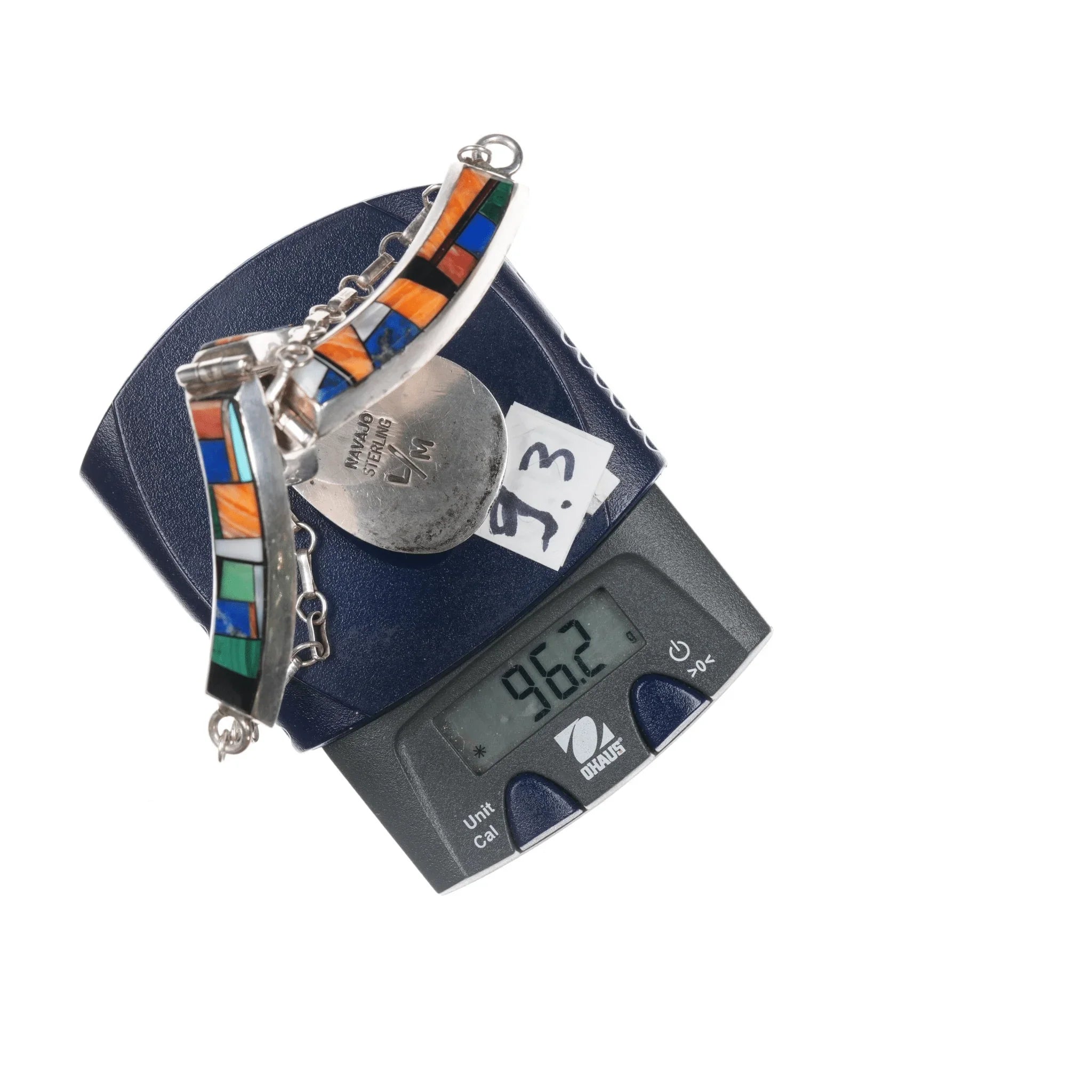 L/M Navajo sterling multi-stone intarsia inlay bib necklace. Measurements in pics, hinges are good and no damage to stones.