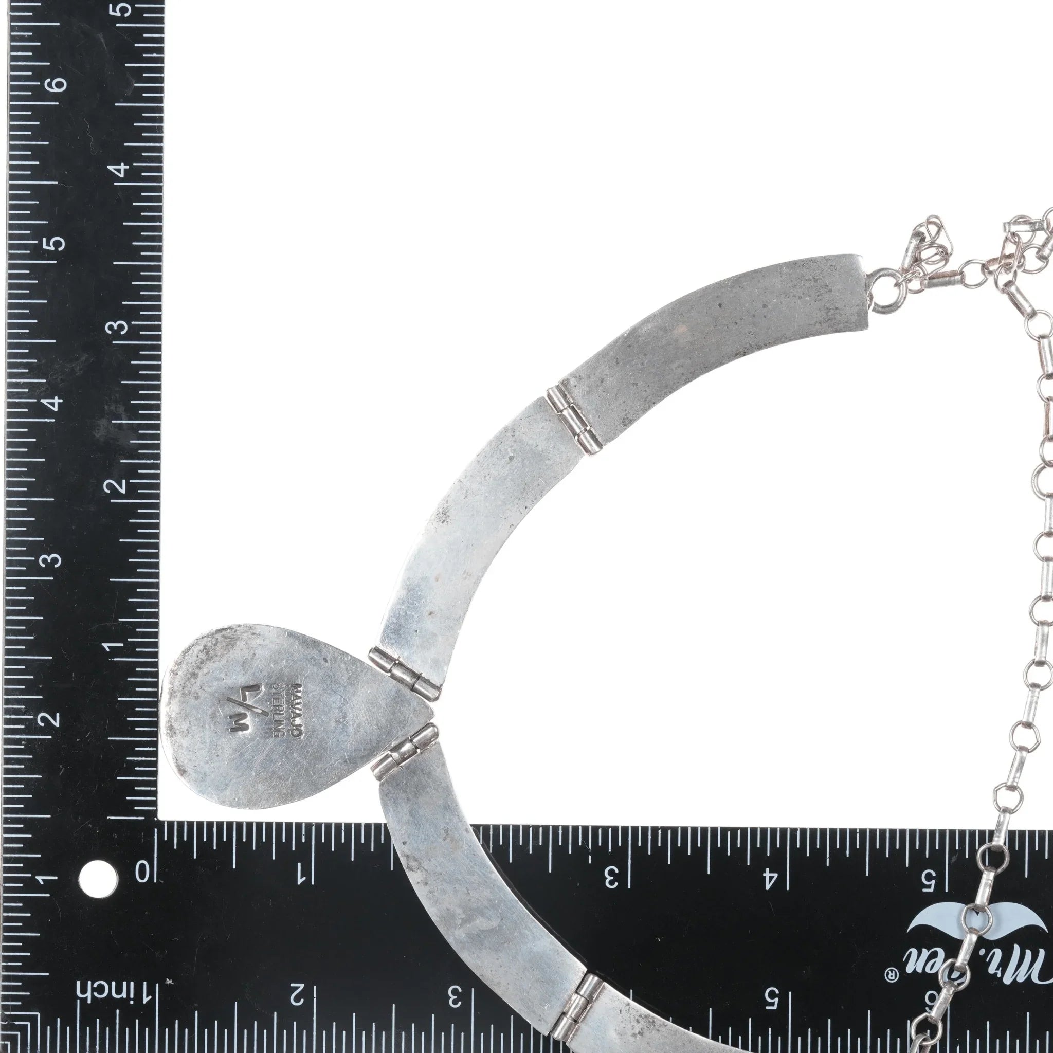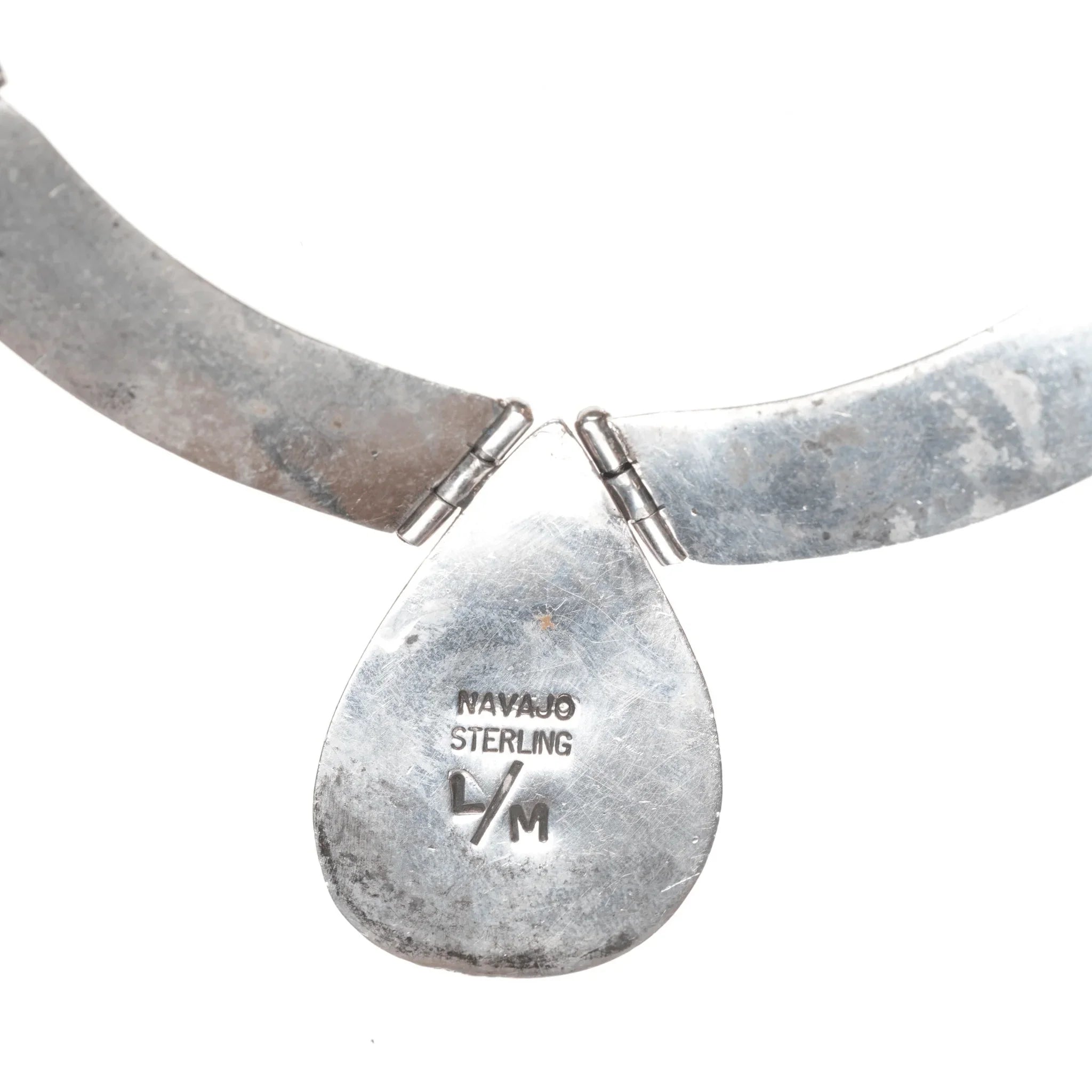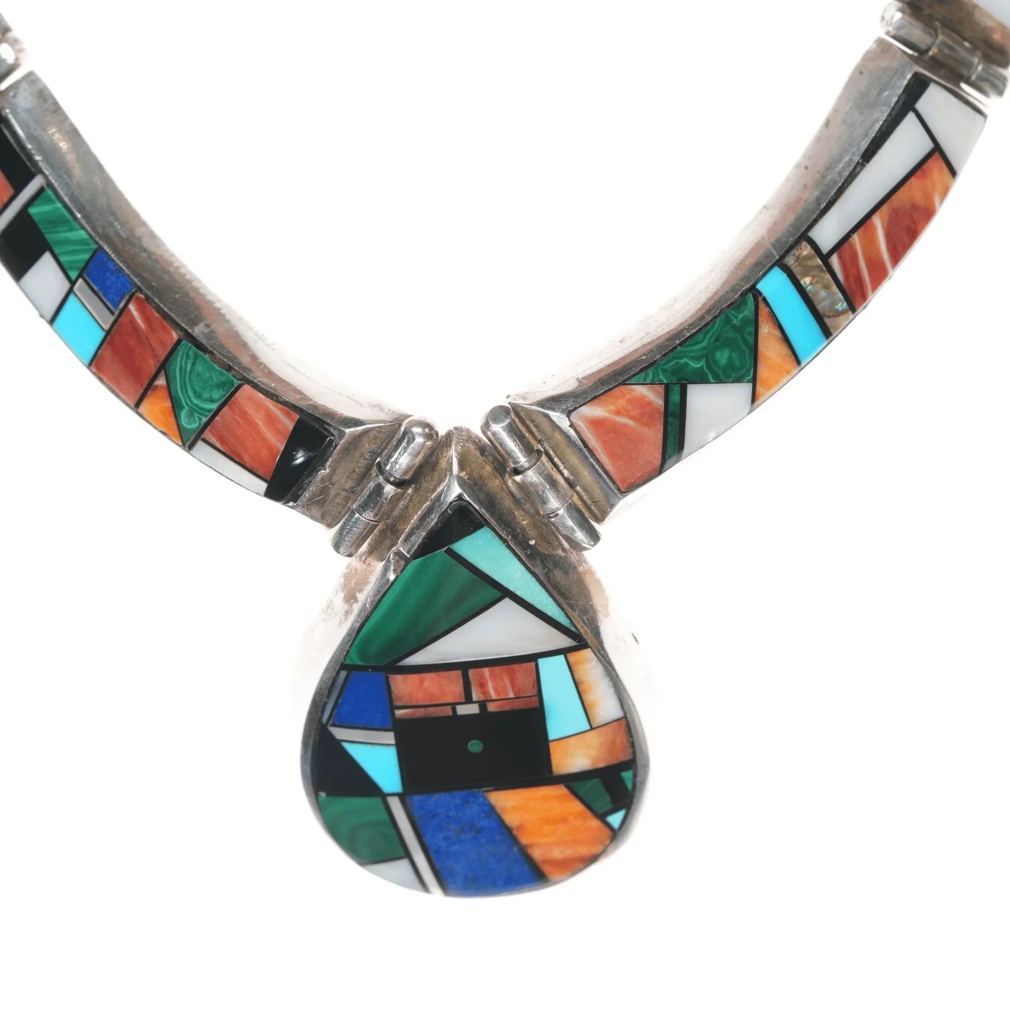 L/M Navajo sterling multi-stone intarsia inlay bib necklace