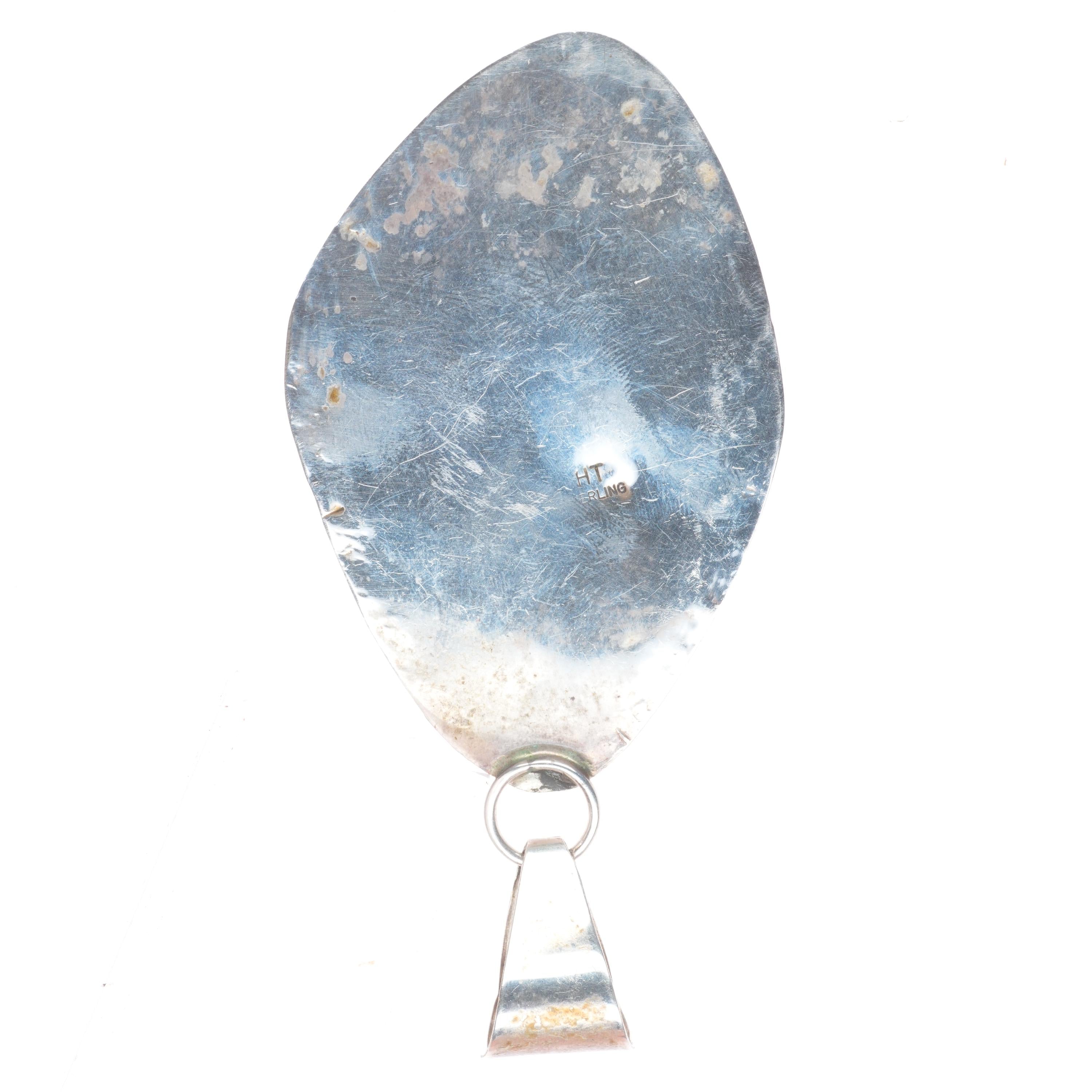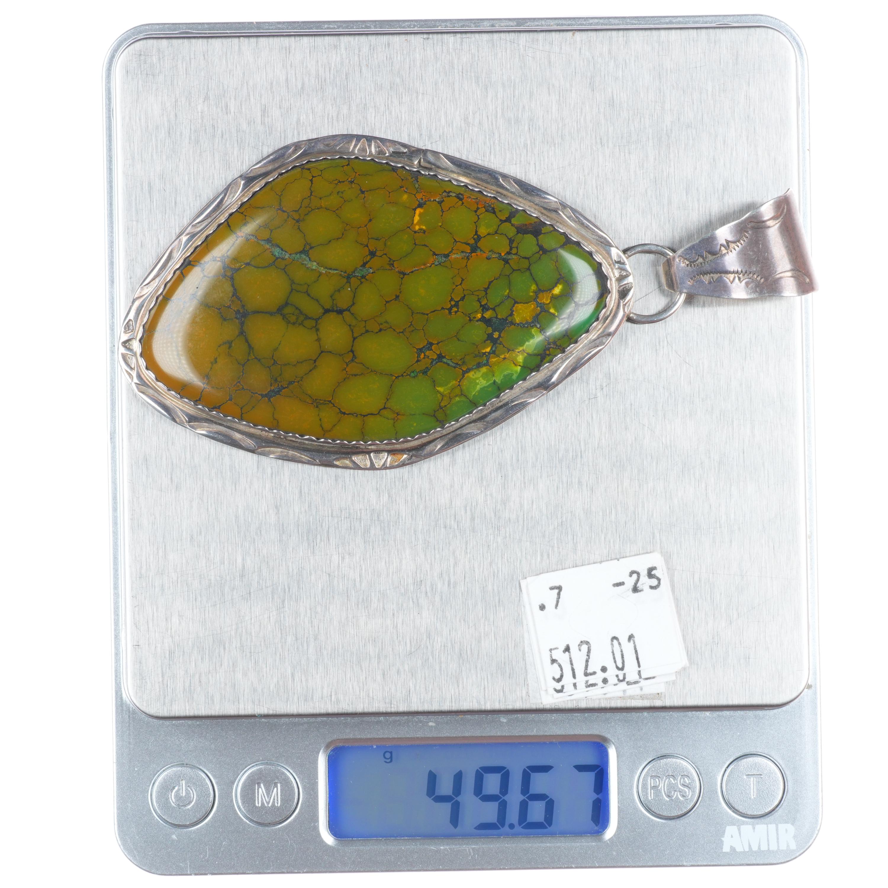Large Herbert Tsosie Navajo sterling silver green spiderweb turquoise pendant. Tested and guaranteed solid sterling silver with weight and measurements in pictures.