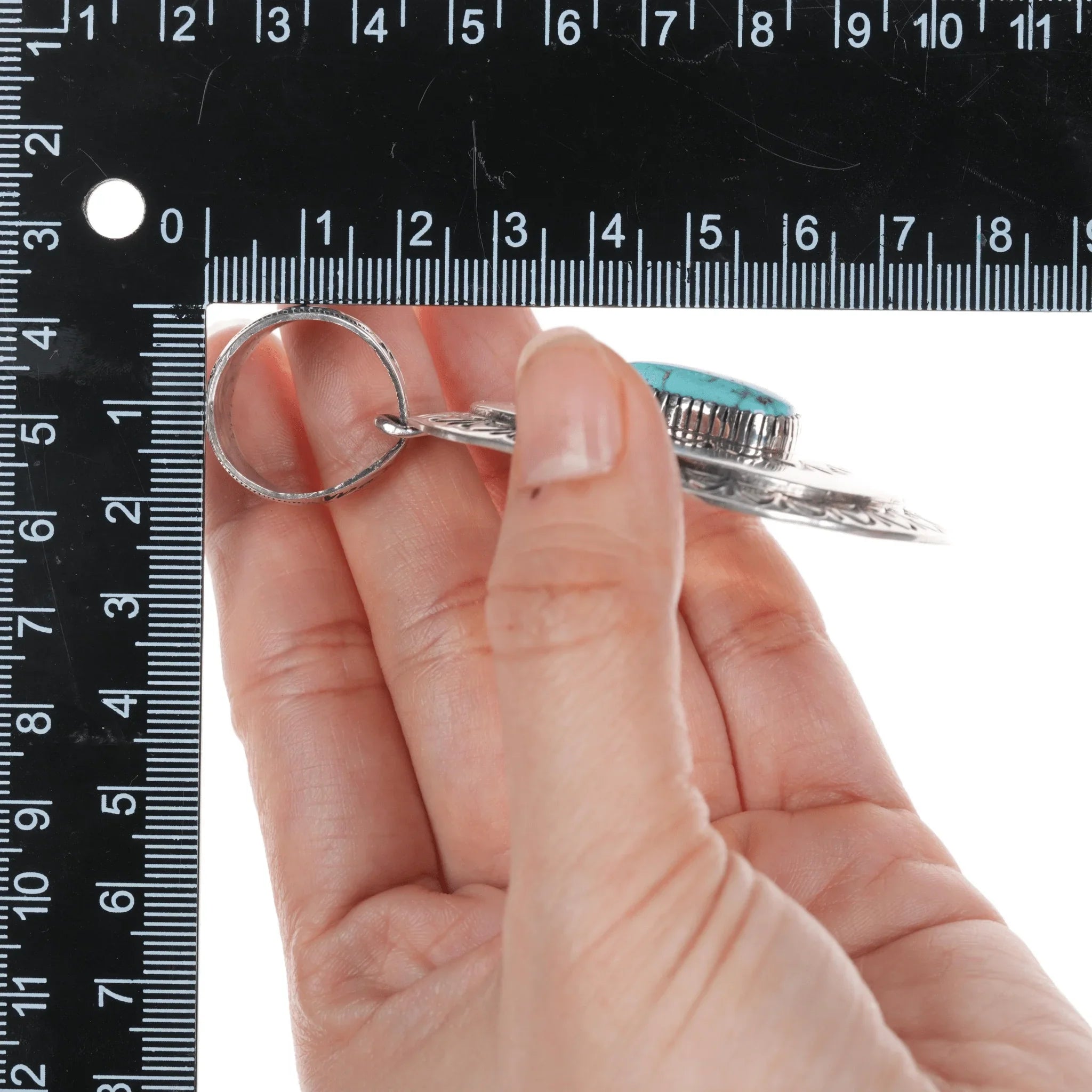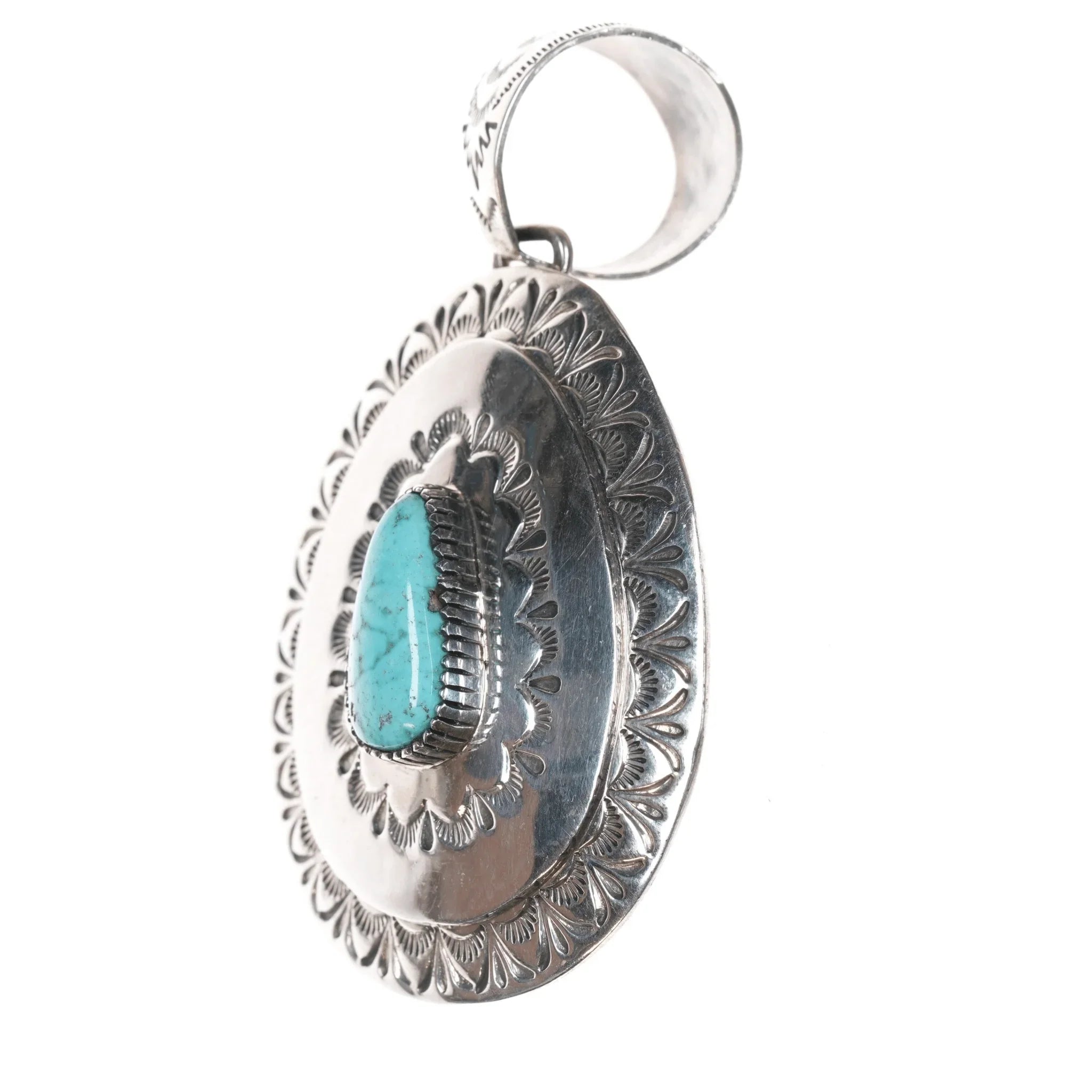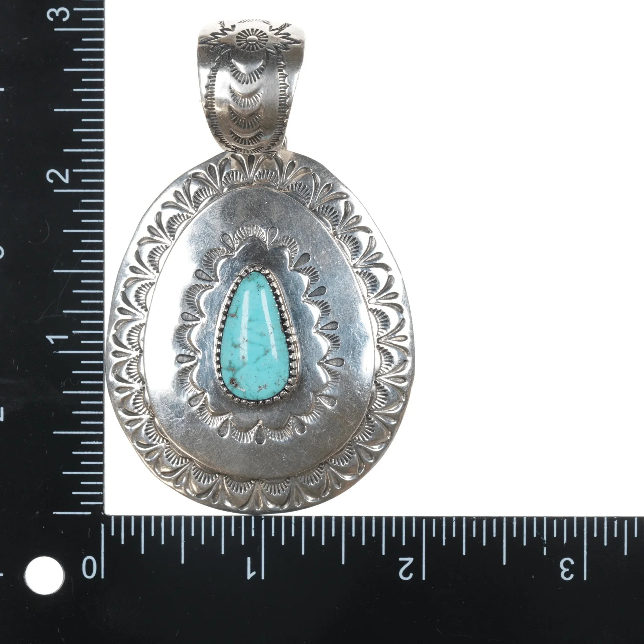 Larry Martinez Chavez Navajo Sterling and turquoise pendant. Nice sized pendant with no issues, measurements in pics.