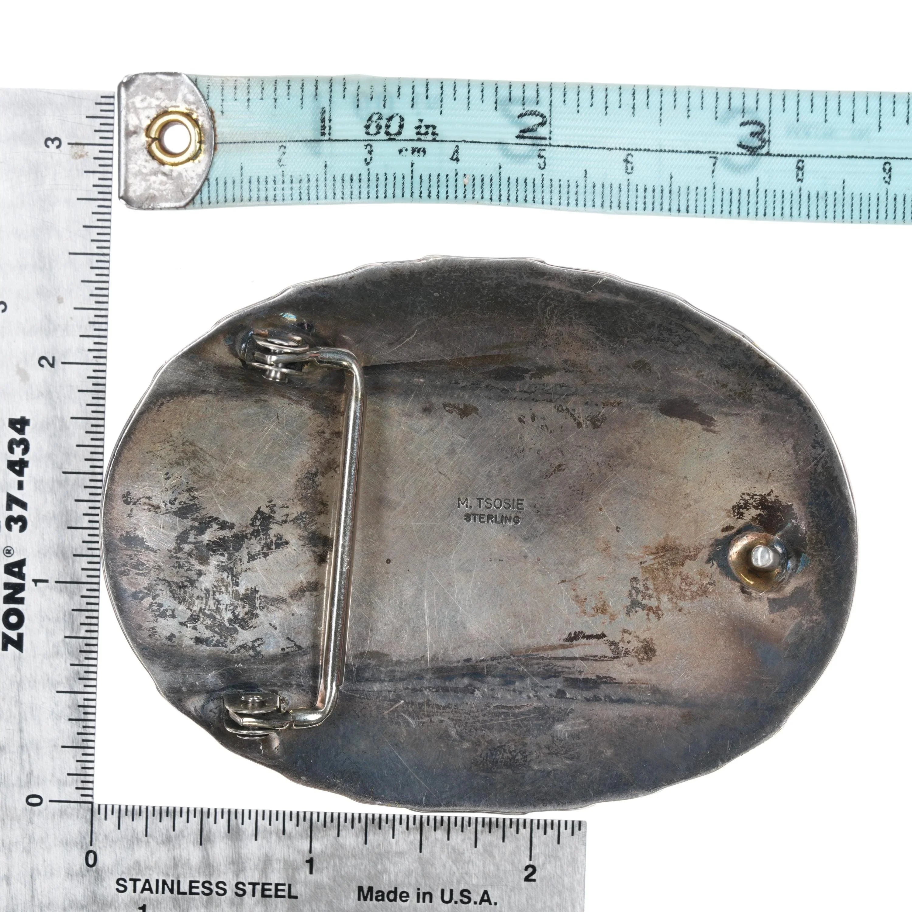 M Tsosie Navajo Sterling silver Kingman turquoise faux claw belt buckle