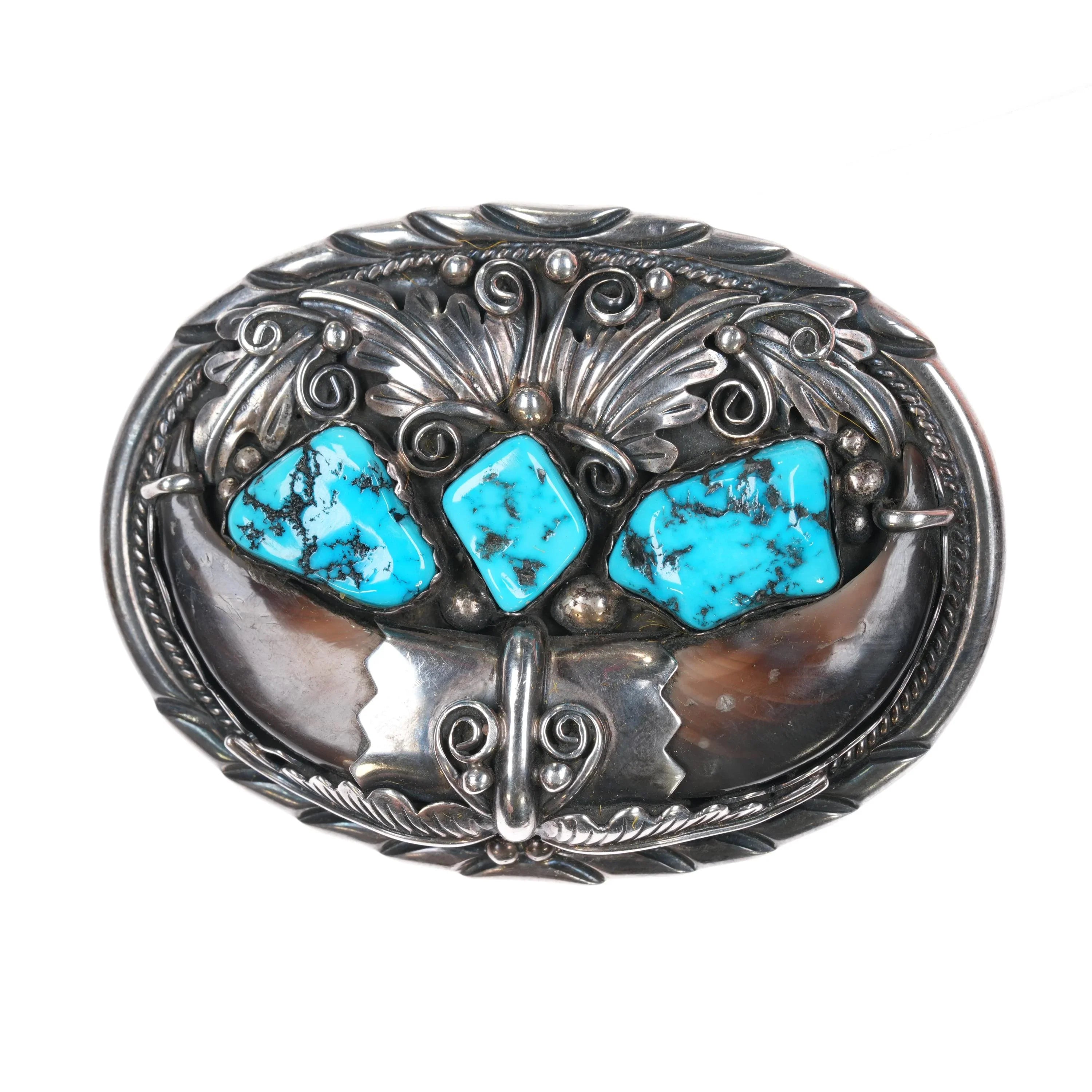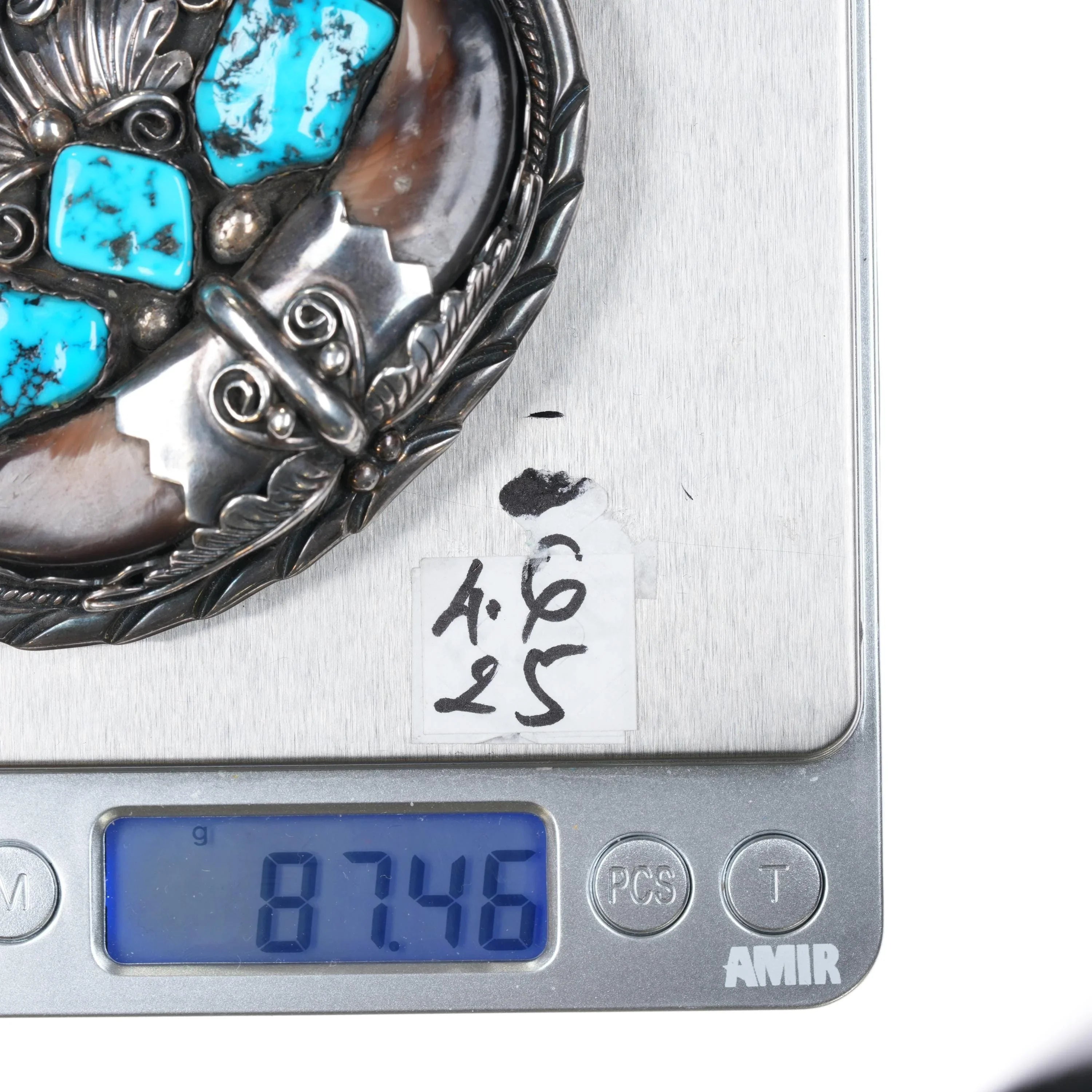 M Tsosie Navajo Sterling silver Kingman turquoise faux claw belt buckle. Solid sterling silver with weight and other measurements in the pictures. Fully functional vintage condition with minimal wear.