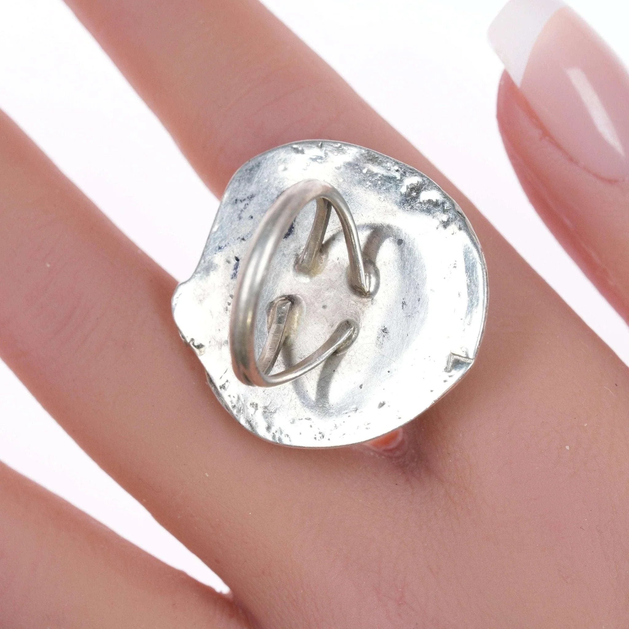 sz5.5 Anello vintage Navajo in argento e turchese, quadrante lungo 30 mm, 10,9 grammi.