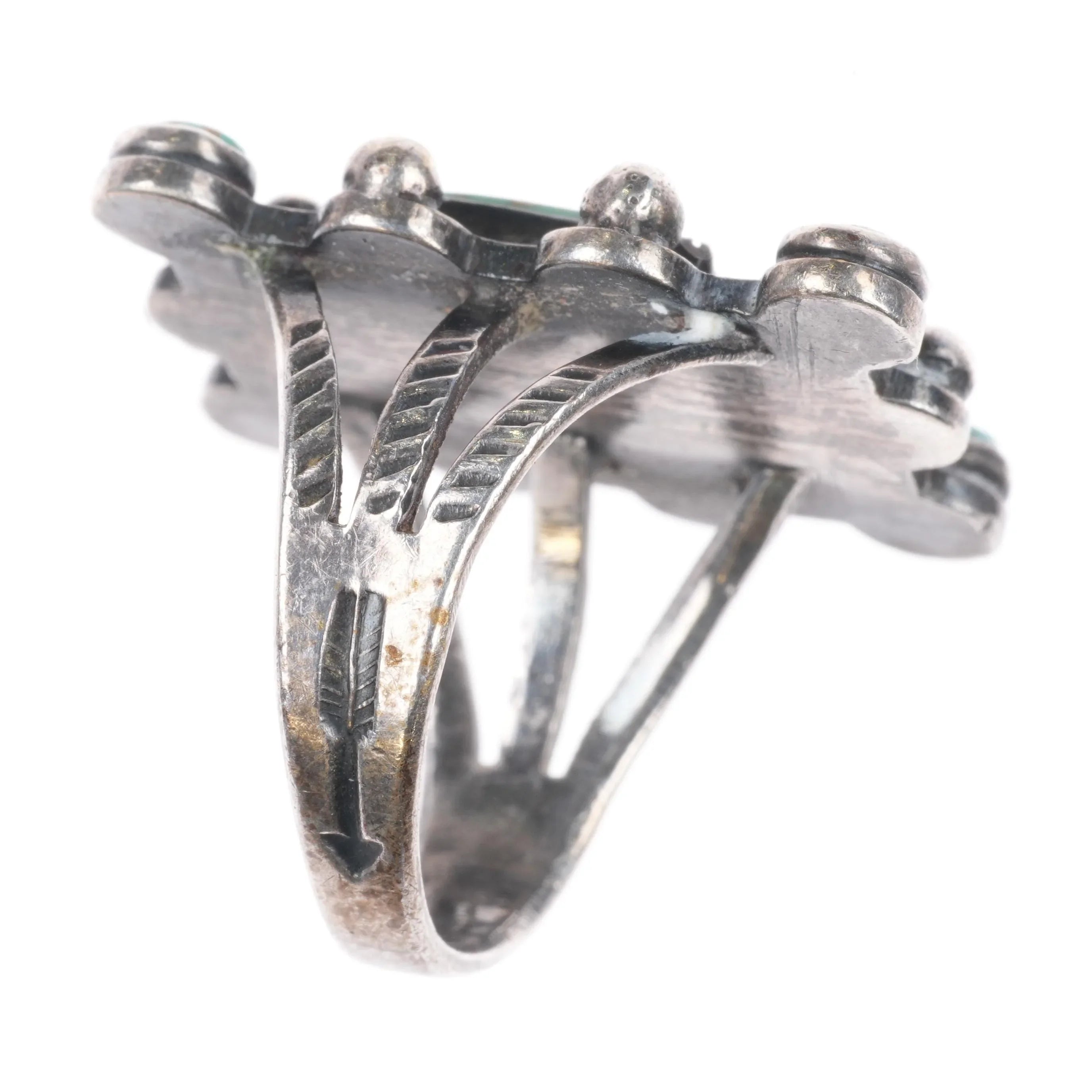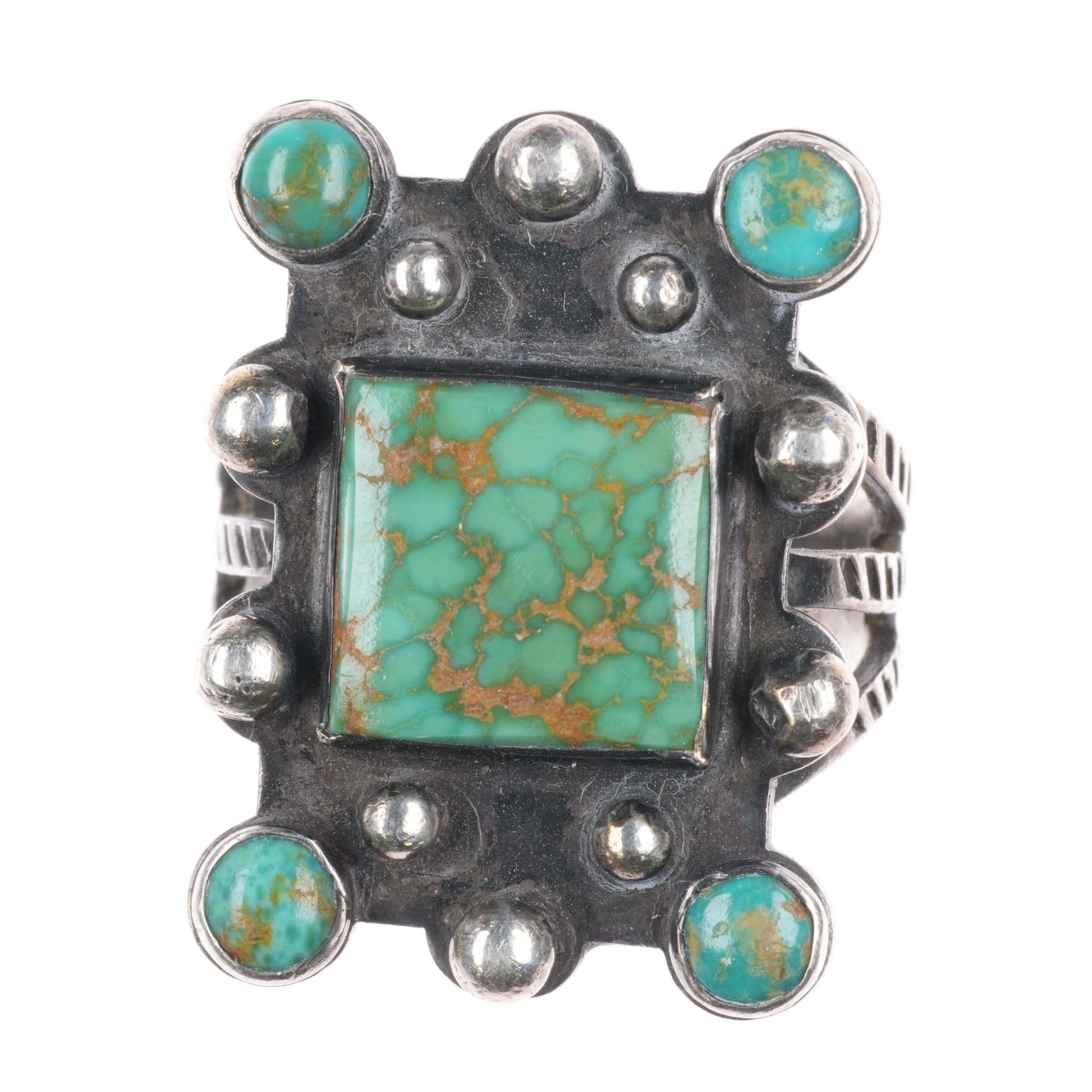 sz6.75 c1940's King's Manassa turquoise Navajo sterling silver snake eye ring