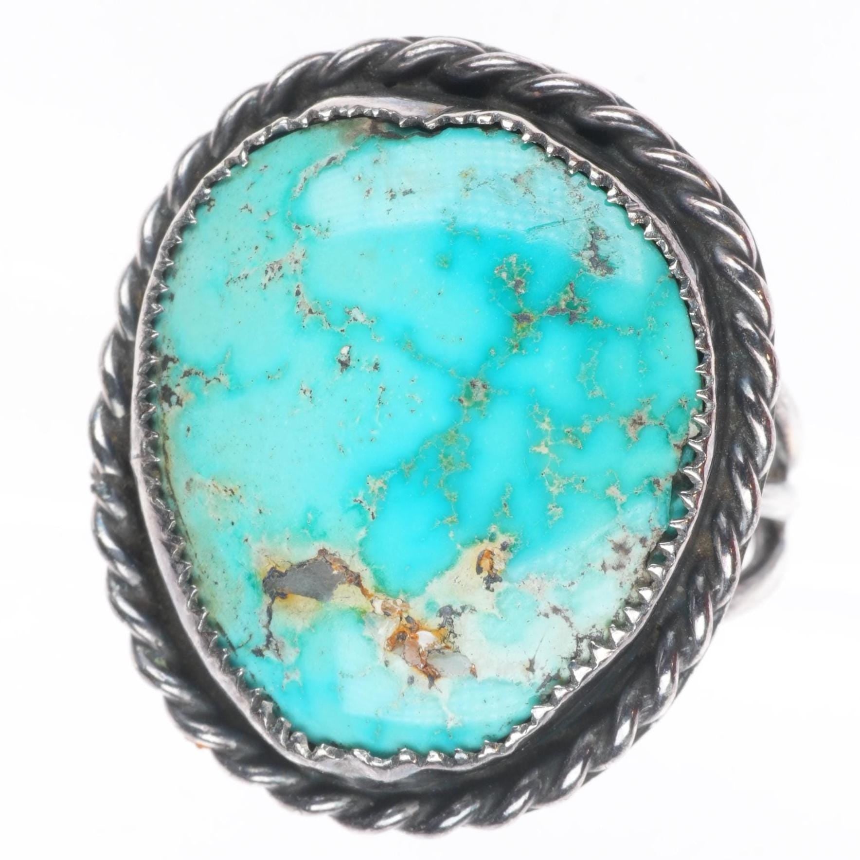 sz7.5 40's-50's Navajo sterling silver rope bezel ring with nice turquoise Condividi WhatsApp Facebook X Pinterest Messenger Email Forma del prodotto $245.00 escl. I.V.A. 1 in magazzino Quantità Aggiungi al carrello Questo articolo è un acquisto ricorrente o dilazionato. Continuando, acconsento all'informativa sulla cancellazione e autorizzo all'addebito del mio metodo di pagamento ai prezzi, alla frequenza e alle date elencati su questa pagina fino all'evasione del mio ordine o al mio annullamento, se consentito.