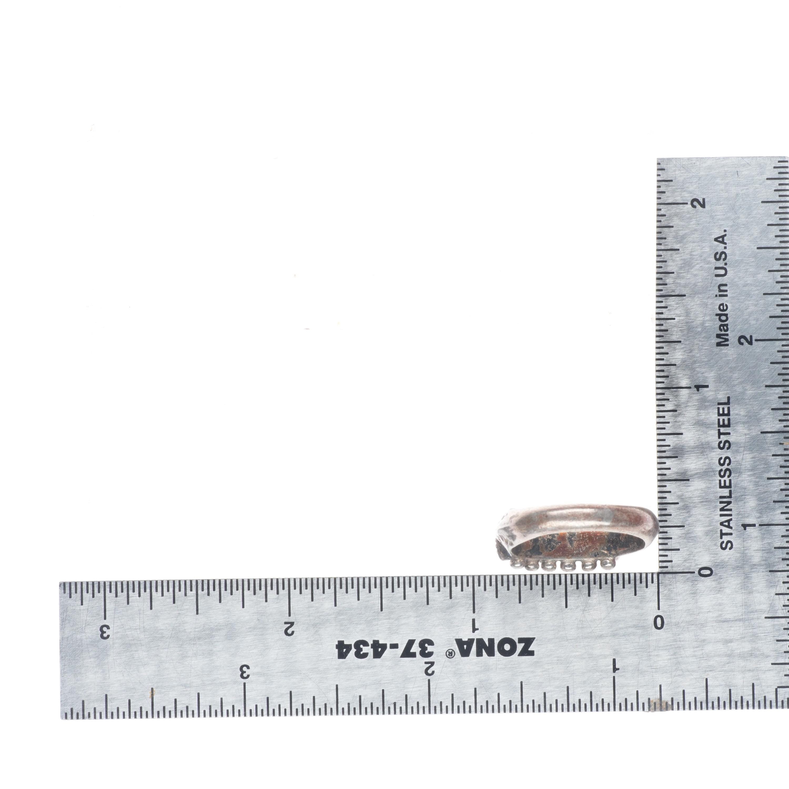 sz7.5 Vintage Janice Paloma Zuni sterling silver needlepoint turquoise stamped carinated ring. Tested and guaranteed solid sterling silver, circa third quarter of the 20th century. Some expected wear, weight and measurements in pictures.