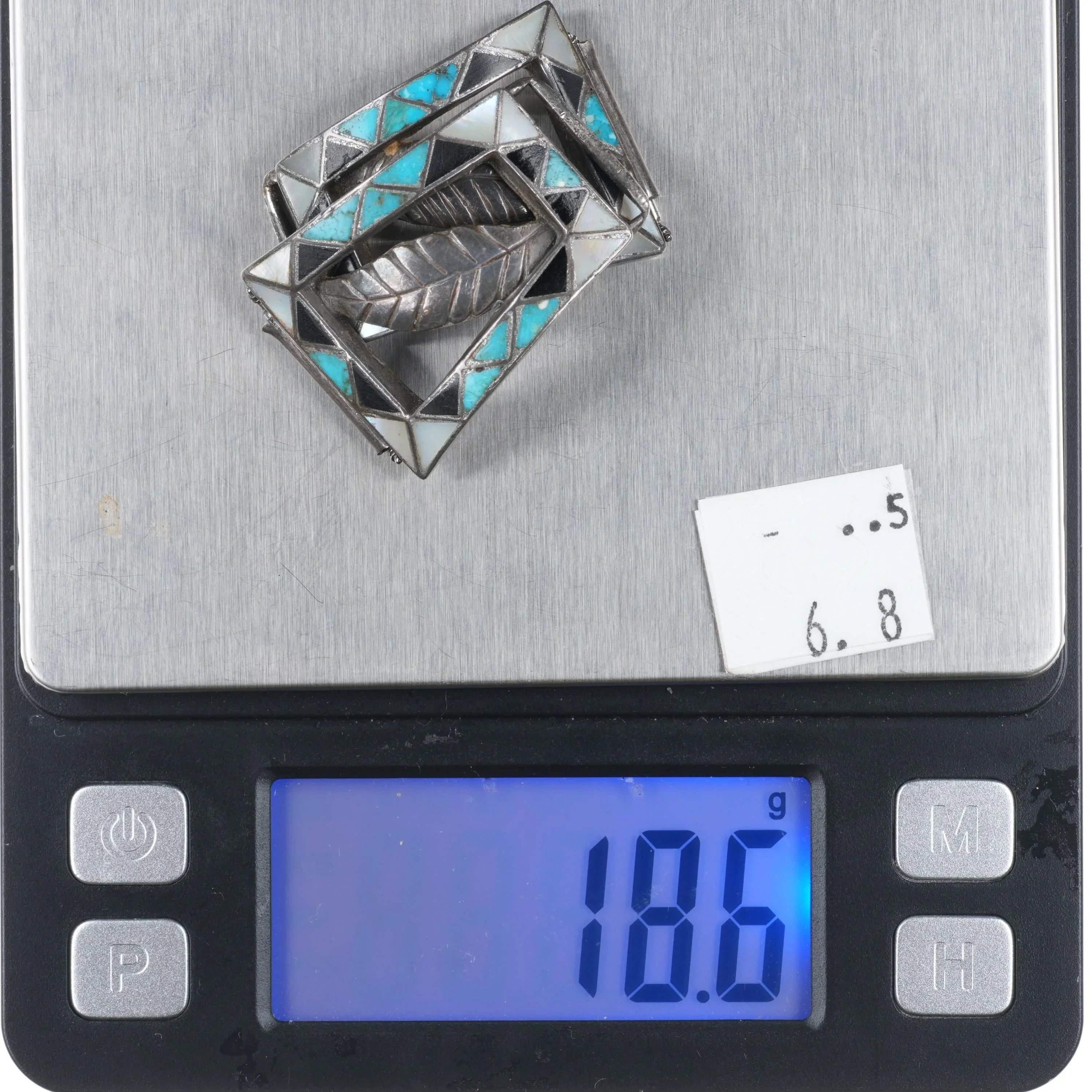 Unusual c1950's Zuni channel inlay turquoise/shell/jet sterling silver watch tip