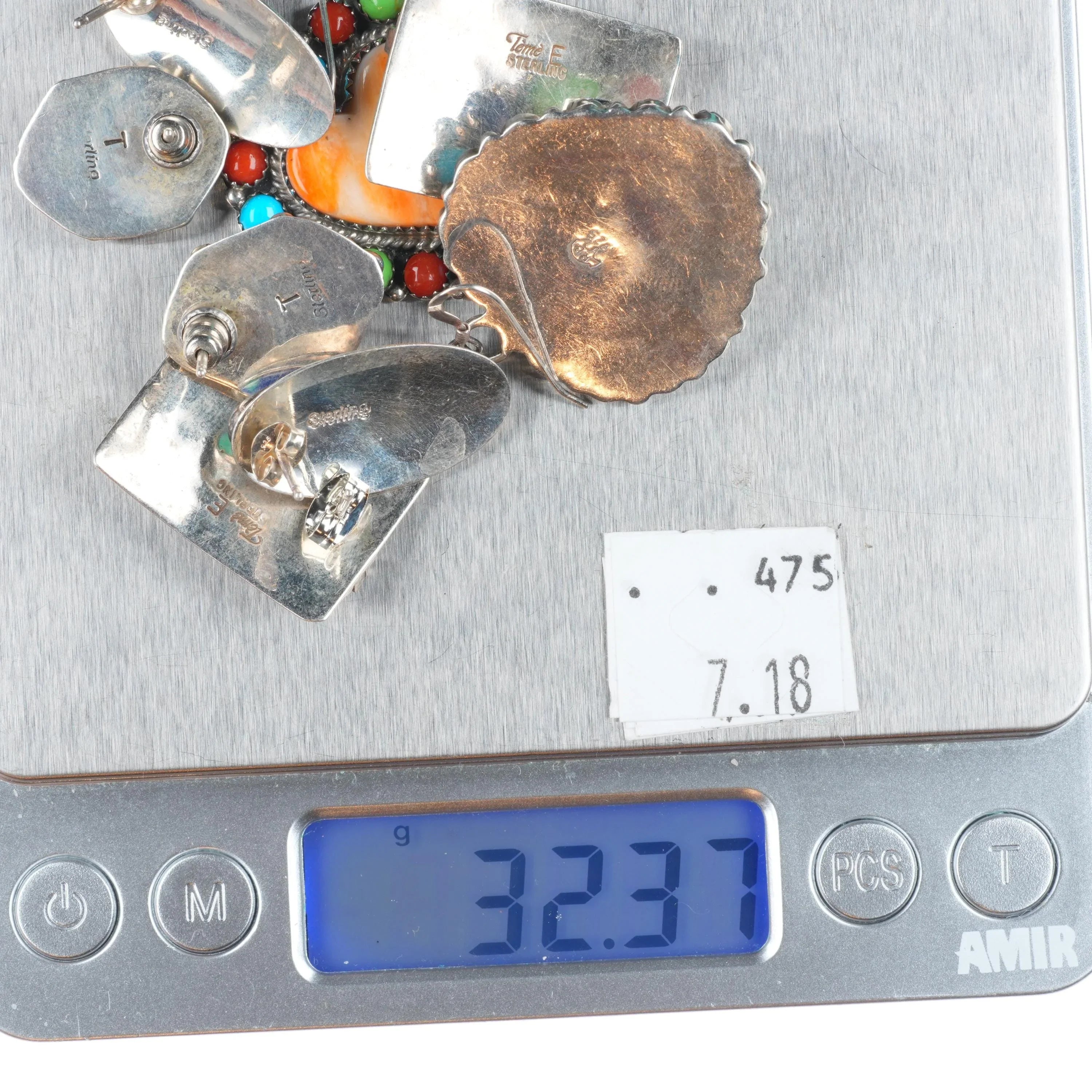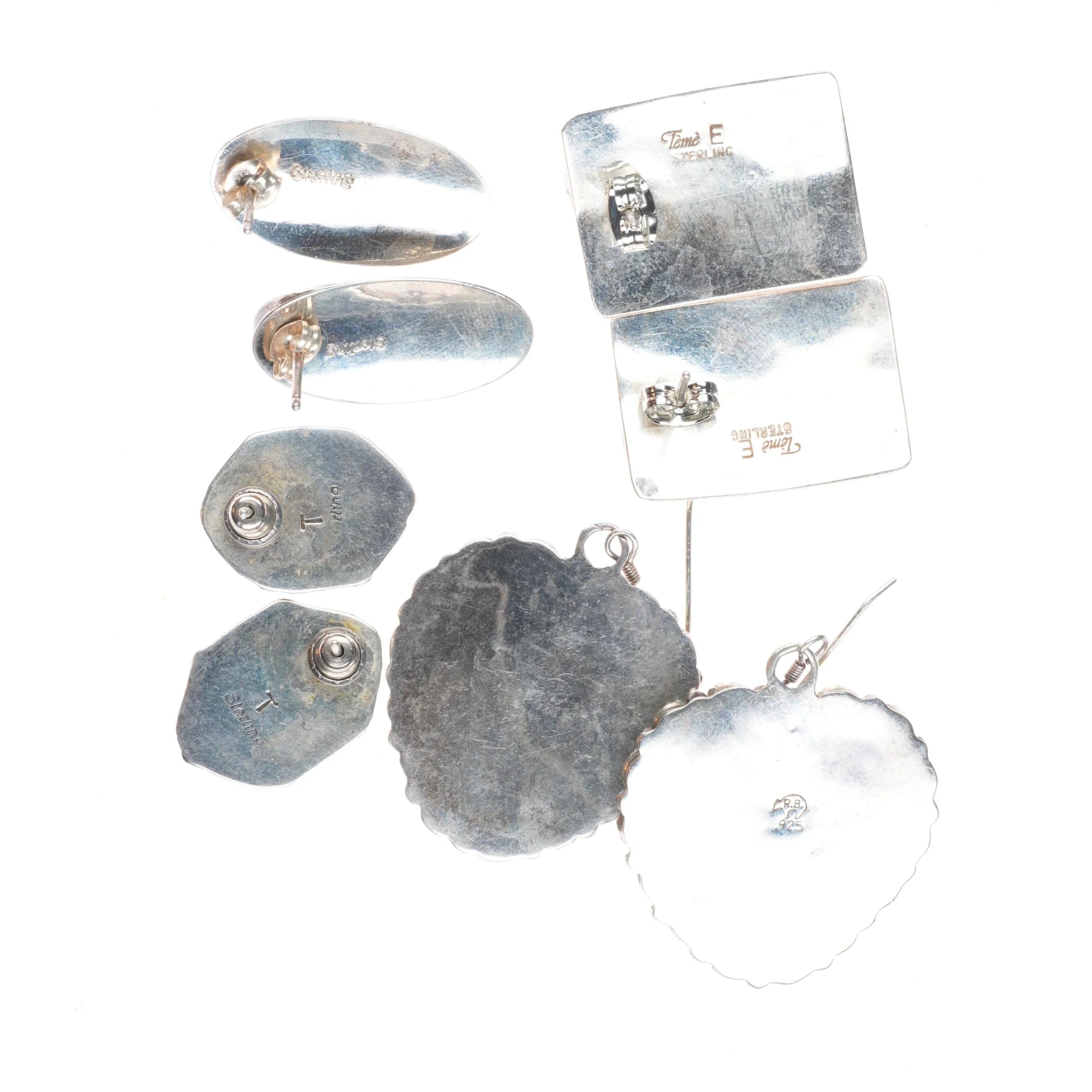 Vintage lot Navajo sterling silver earrings turquoise/spiny oyster, hearts, etc