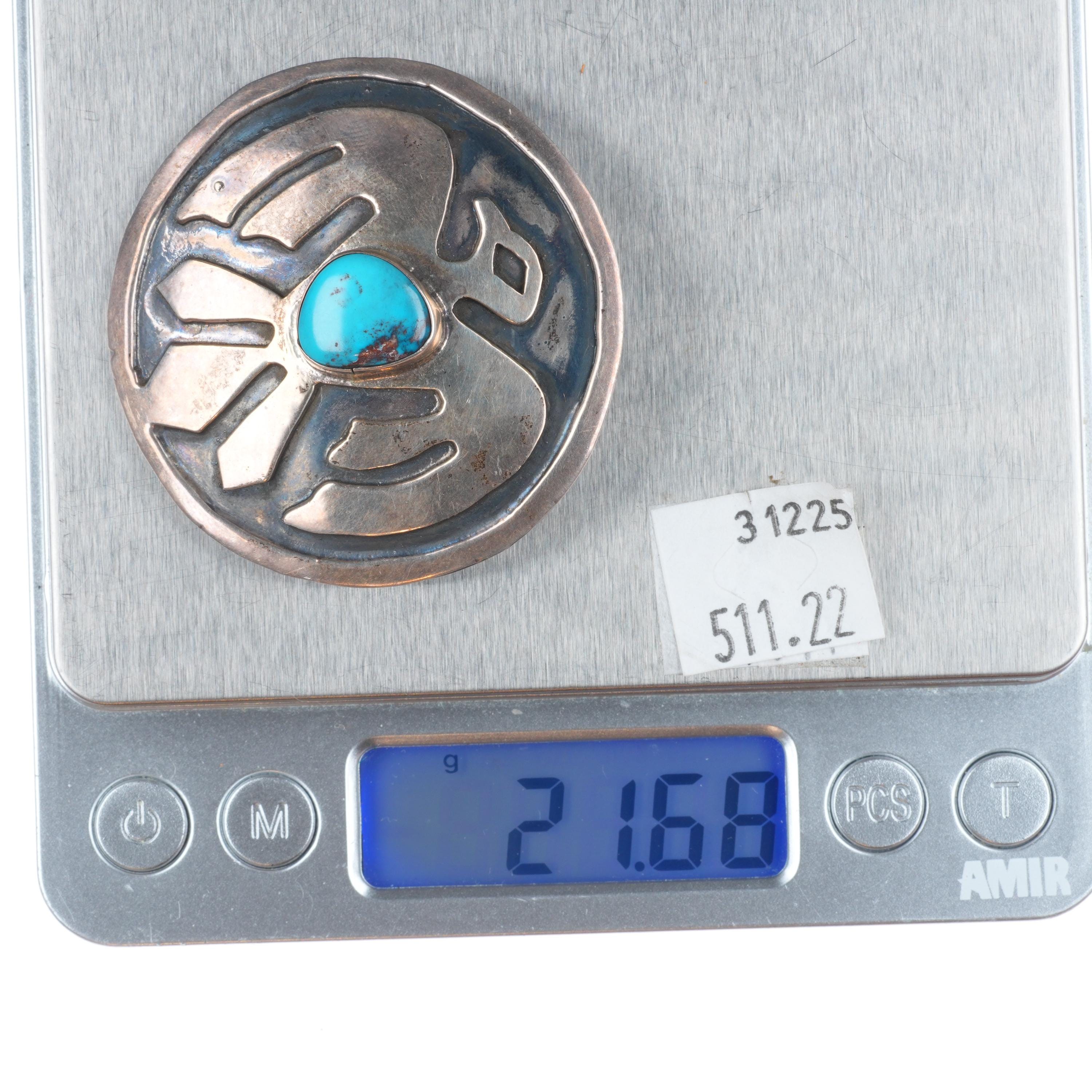 Vintage Navajo Bisbee turquoise Thunderbird overlay pendant/pin sterling silver