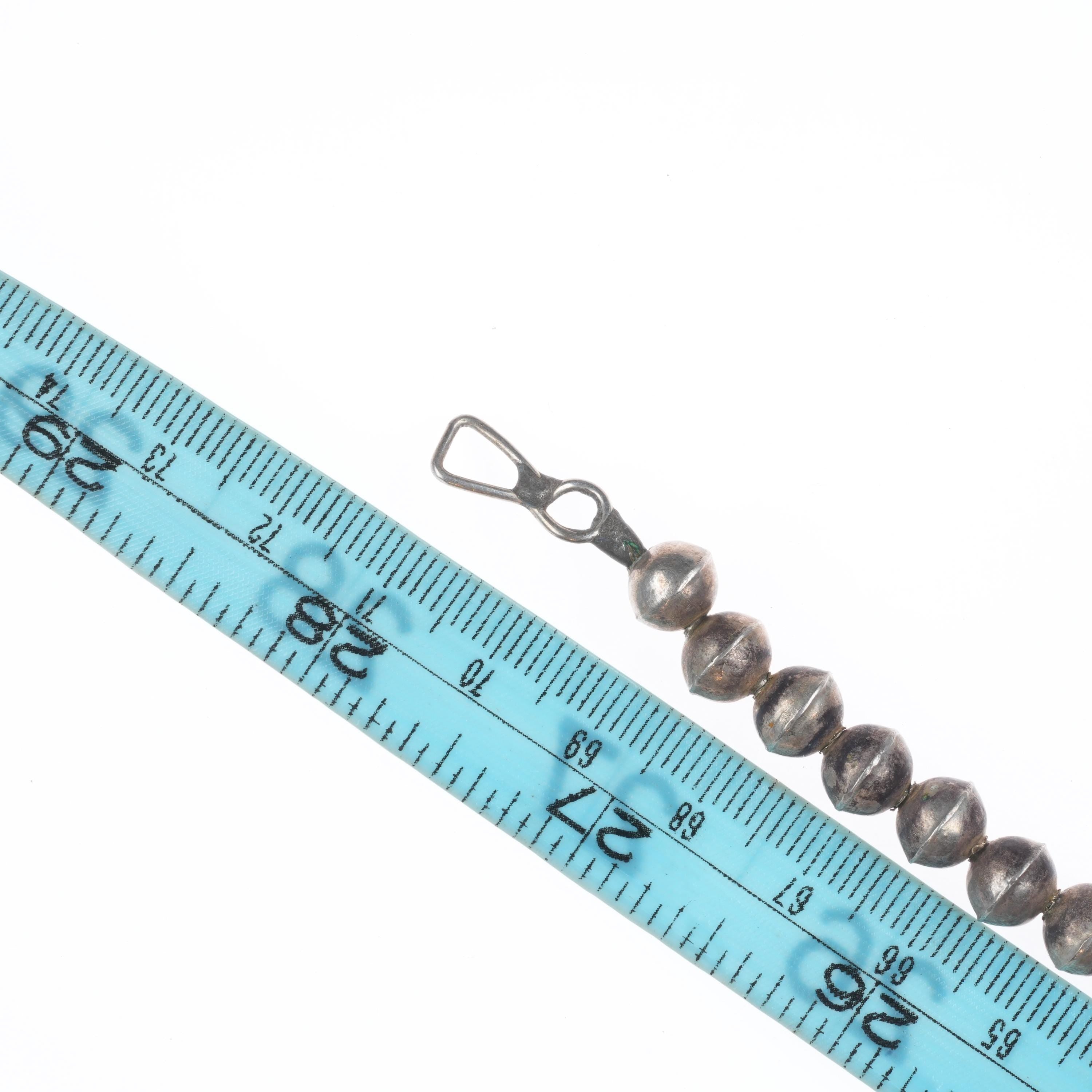 Vintage Navajo sterling silver handmade beads turquoise squash blossom necklace . Tested and guaranteed solid sterling silver with weight and measurements in pictures. No issues. 28" long, circa mid 20th century with no significant issues.