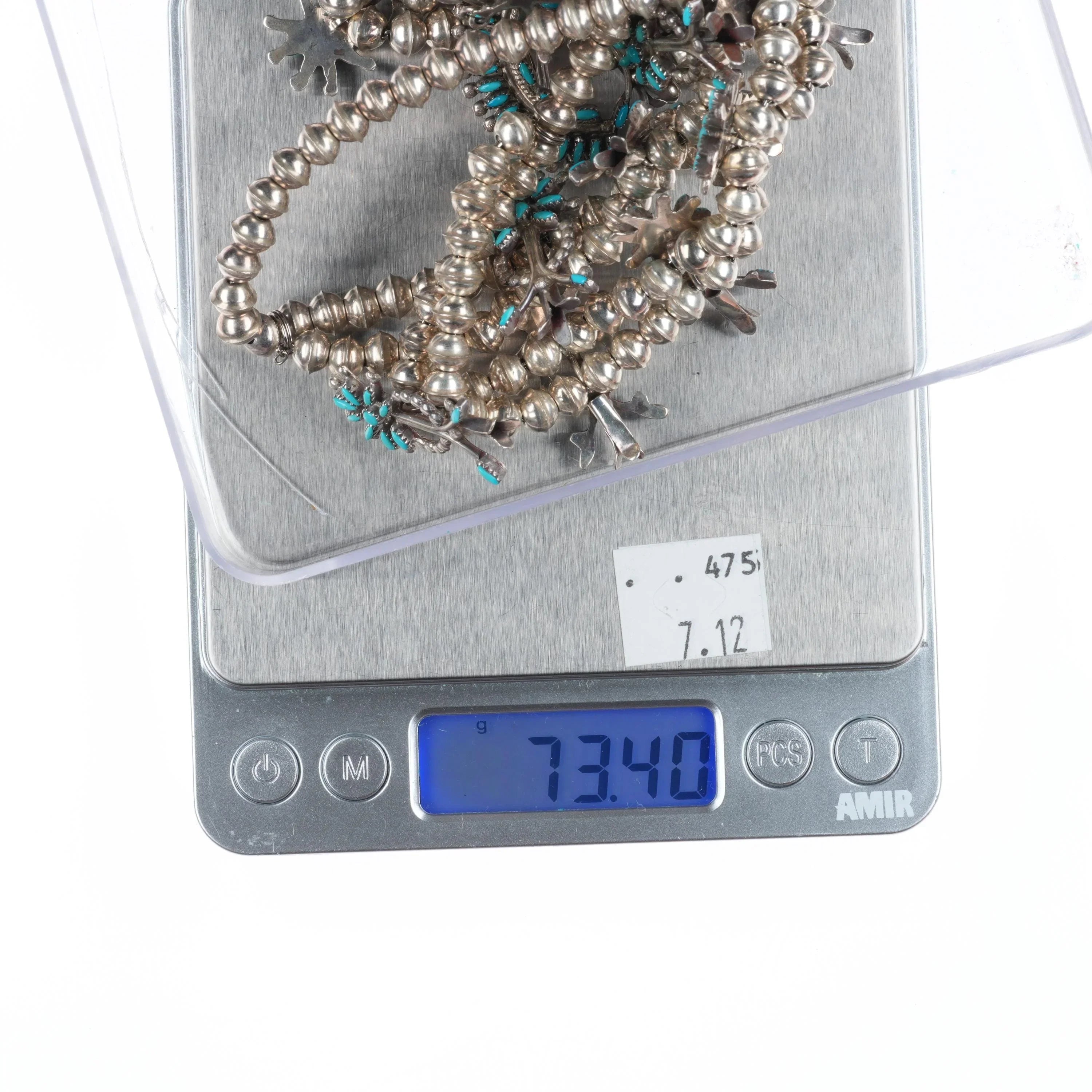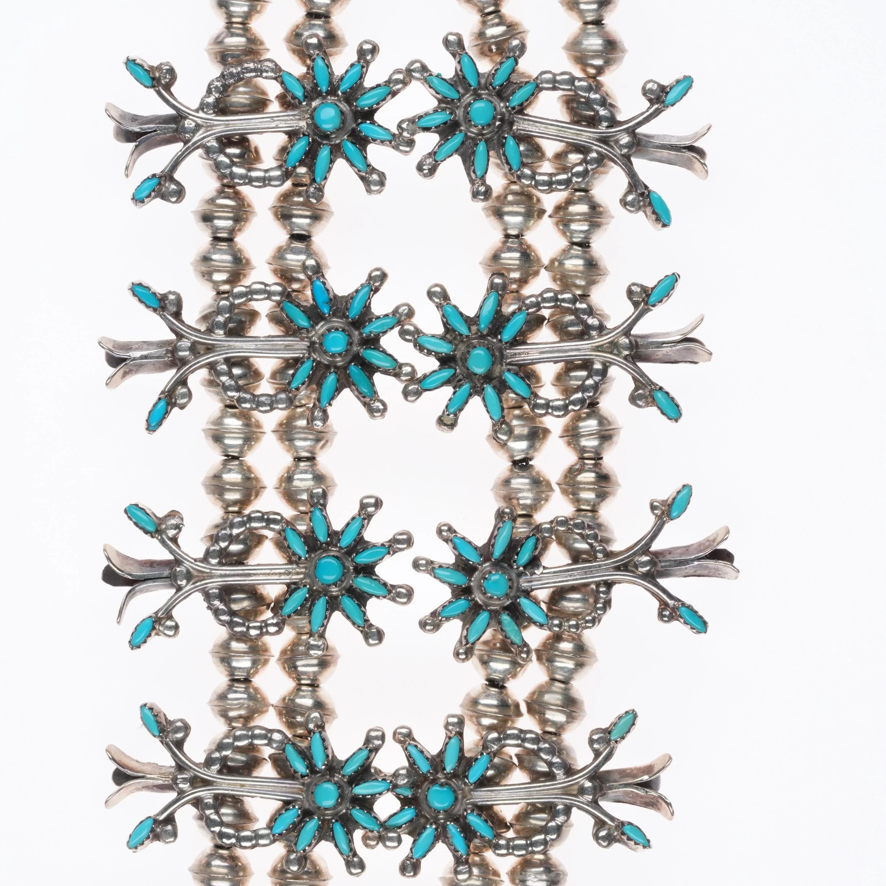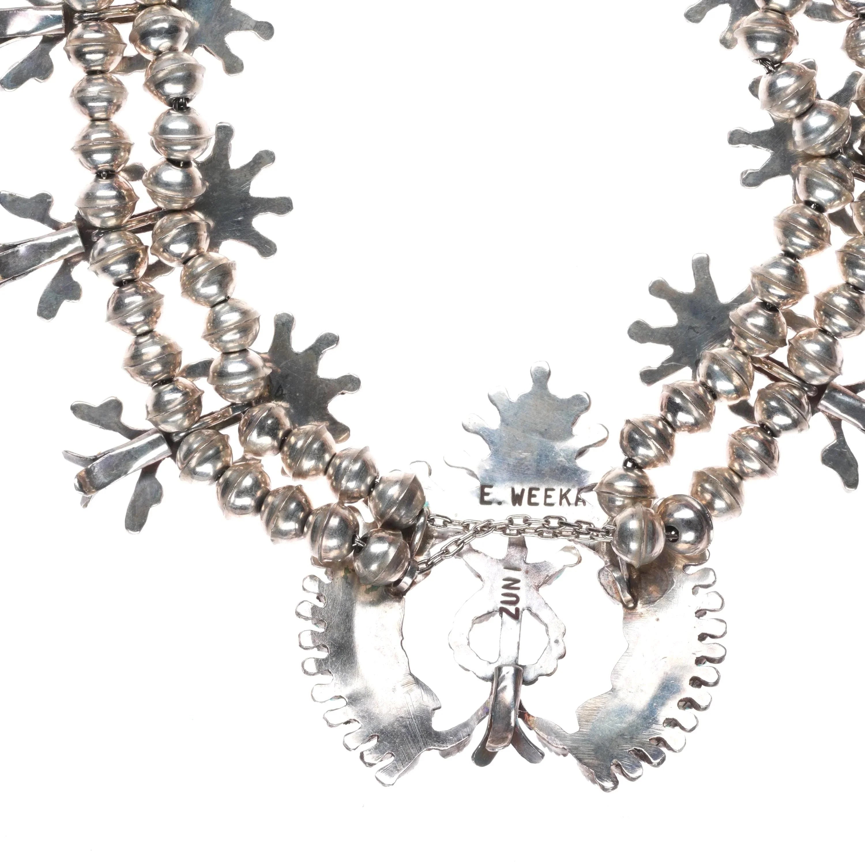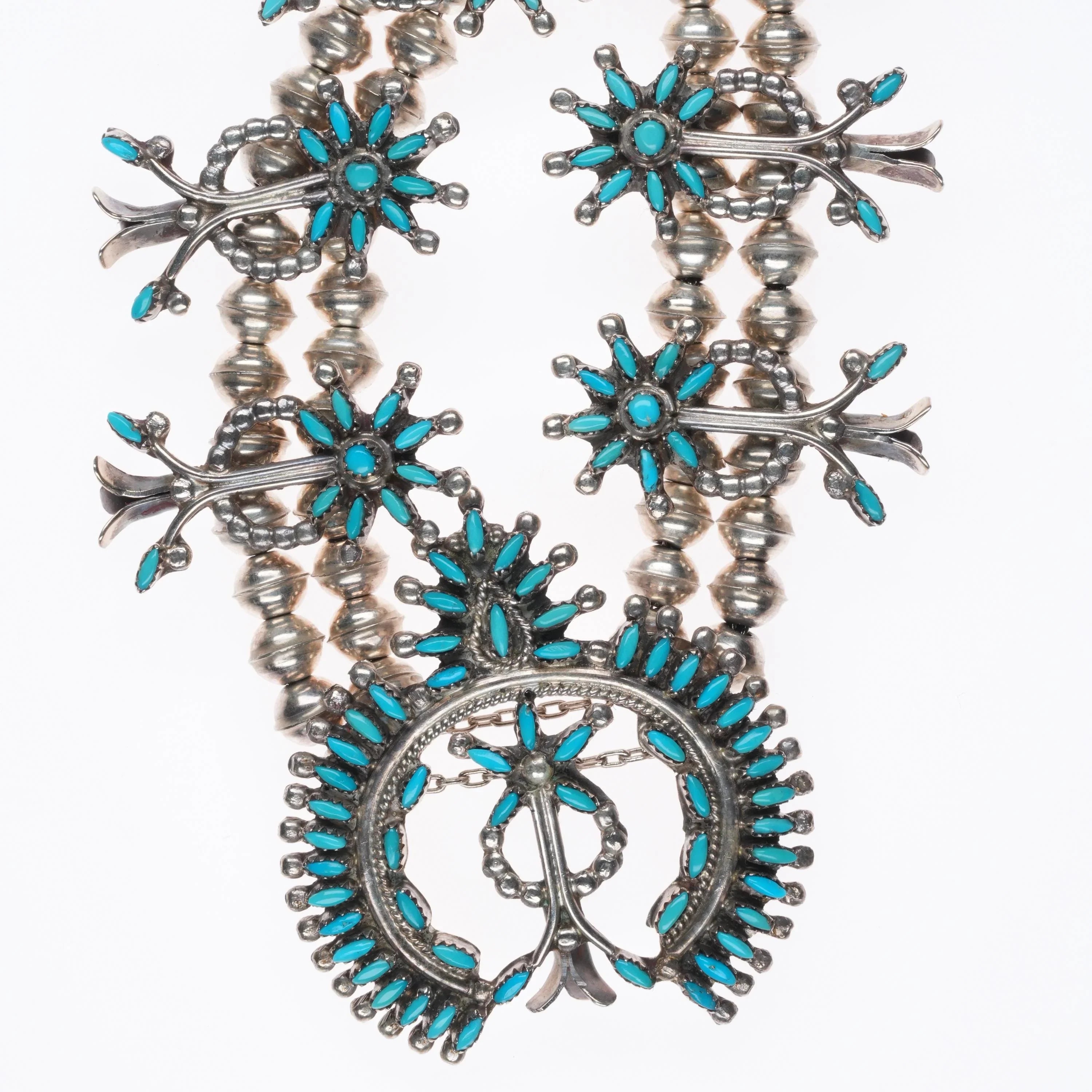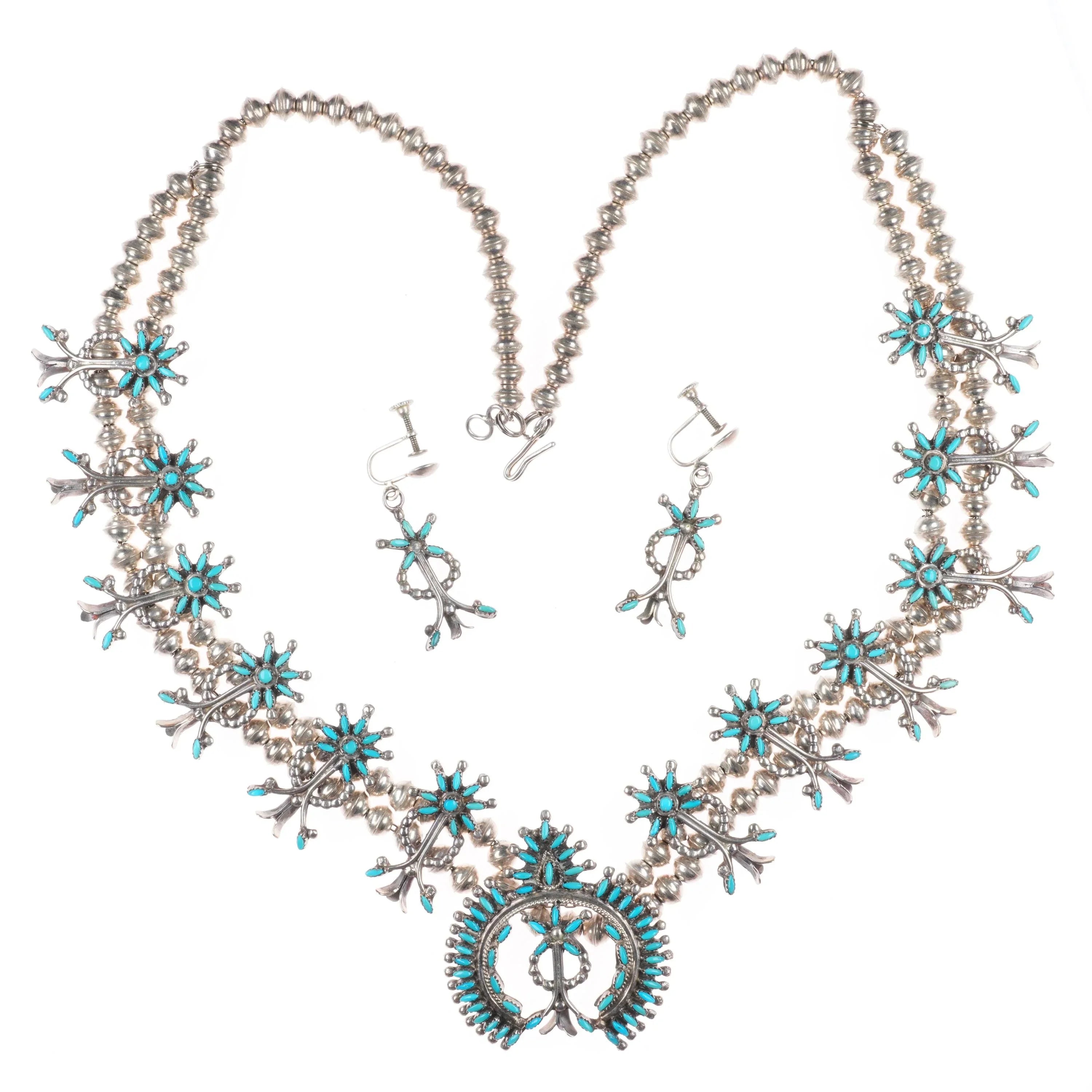 Weeka Zuni needlepoint turquoise squash blossom necklace/earring sterling silver