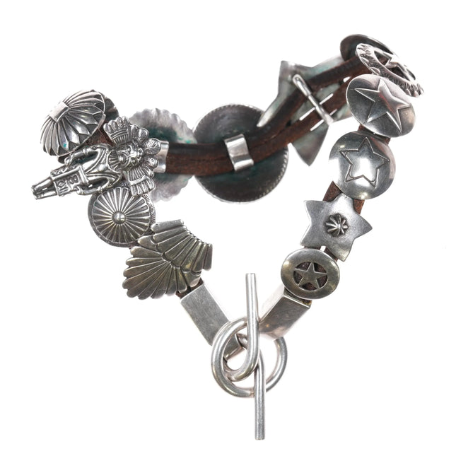1.5" 1992 Kokopelli Designs Sterling silver Horses Equestrian Ranger belt buckle. This is on a 1.5" belt, the center hole is 36" and two on each side, more could be added, belt is high quality and in good condition and it is free with the very heavy solid sterling silver, Buckle, keeper, and tip that I am selling. Weights and measurements are in the pictures. This company was in Business in the 1990‘s, the modern day equivalent of this type of quality would cost a small fortune.