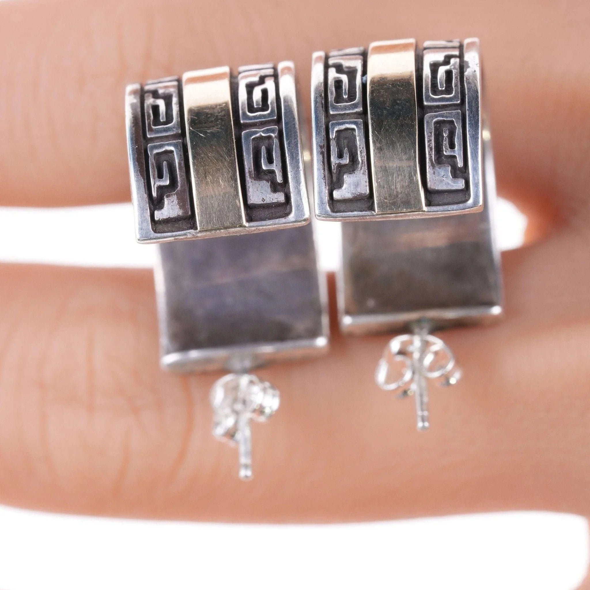 Calvin Begay 初期作品 14K ゴールド & スターリング シルバー 幾何学模様のオーバーレイ イヤリング 高さ 1 インチ x 幅 13 mm x 12.7 グラム、問題ありません。