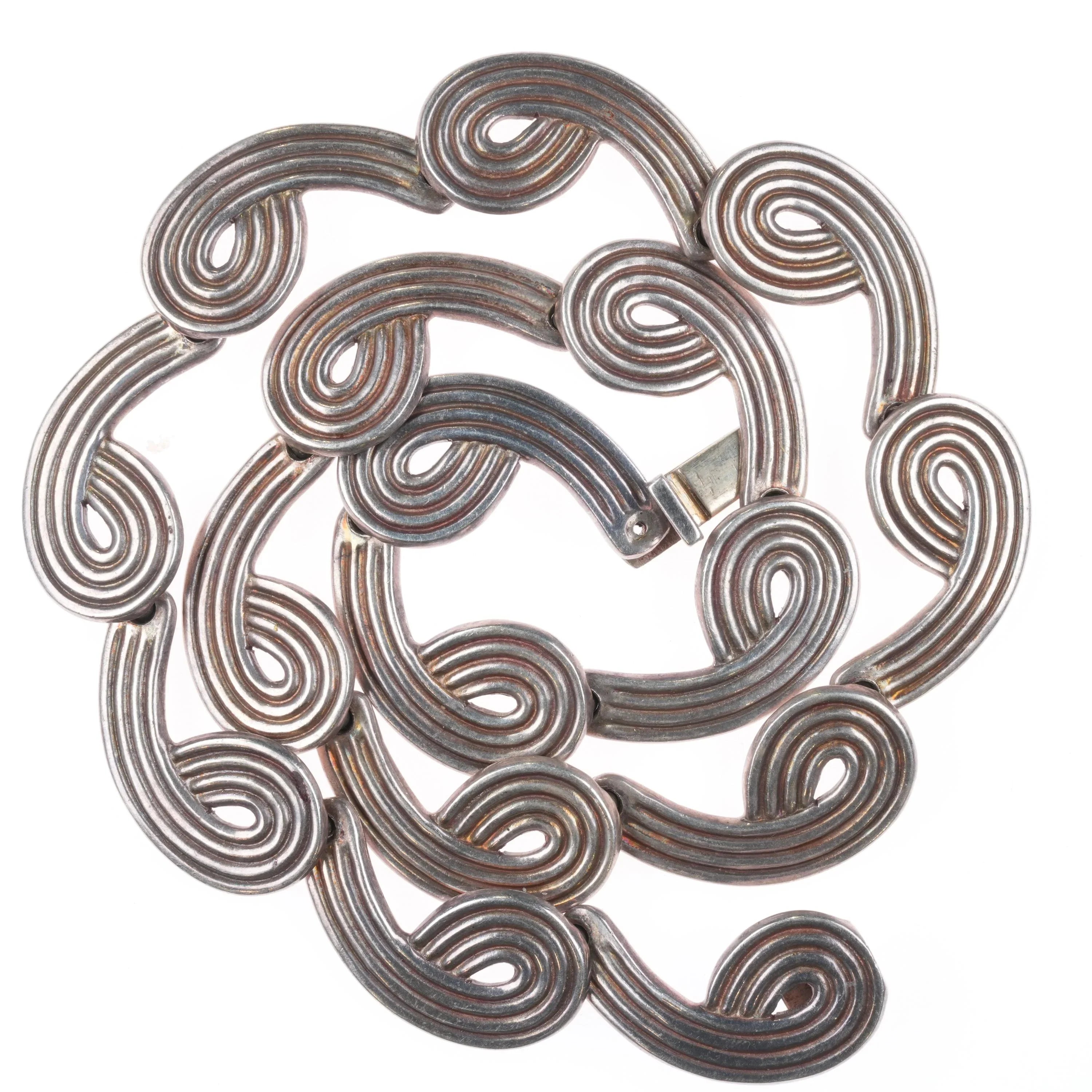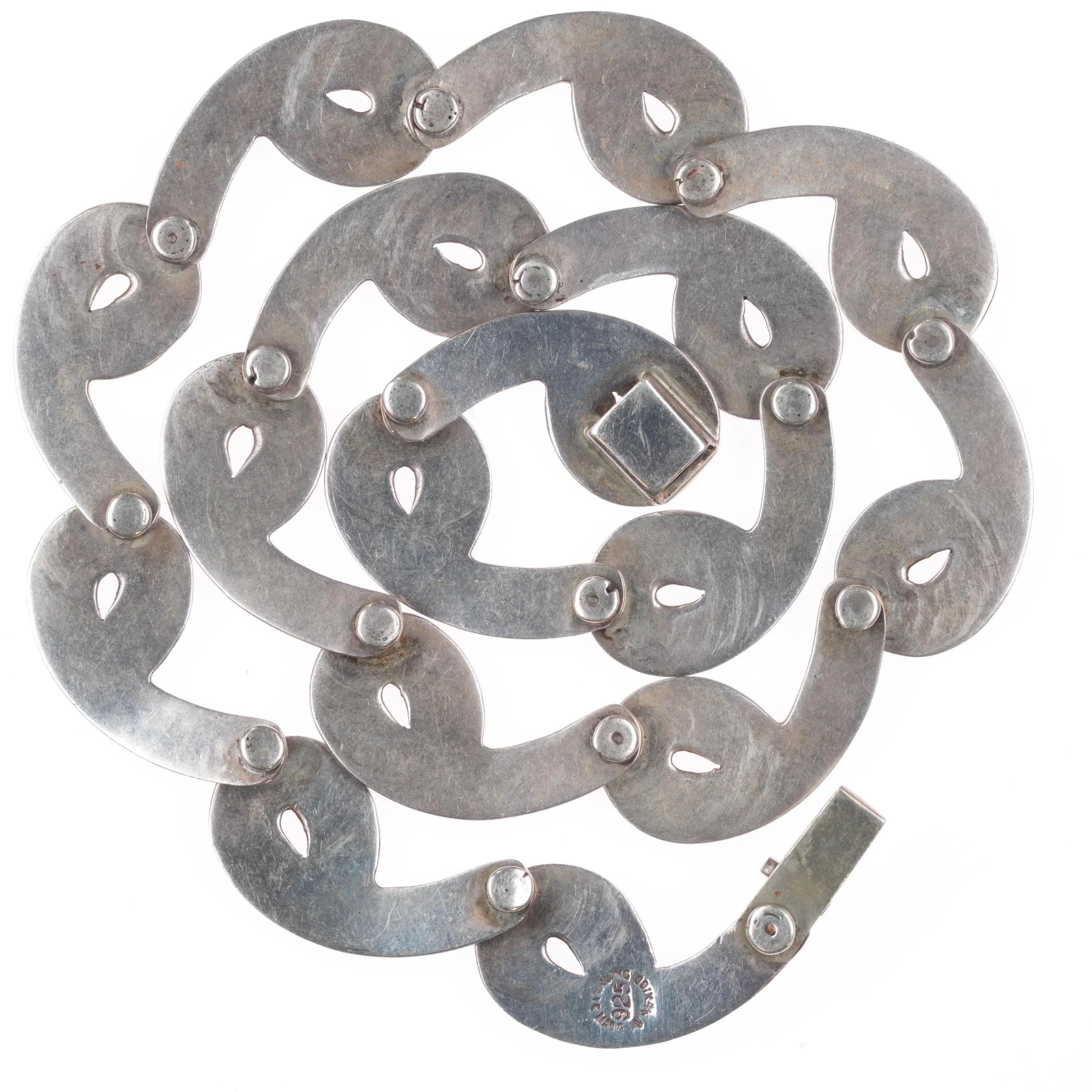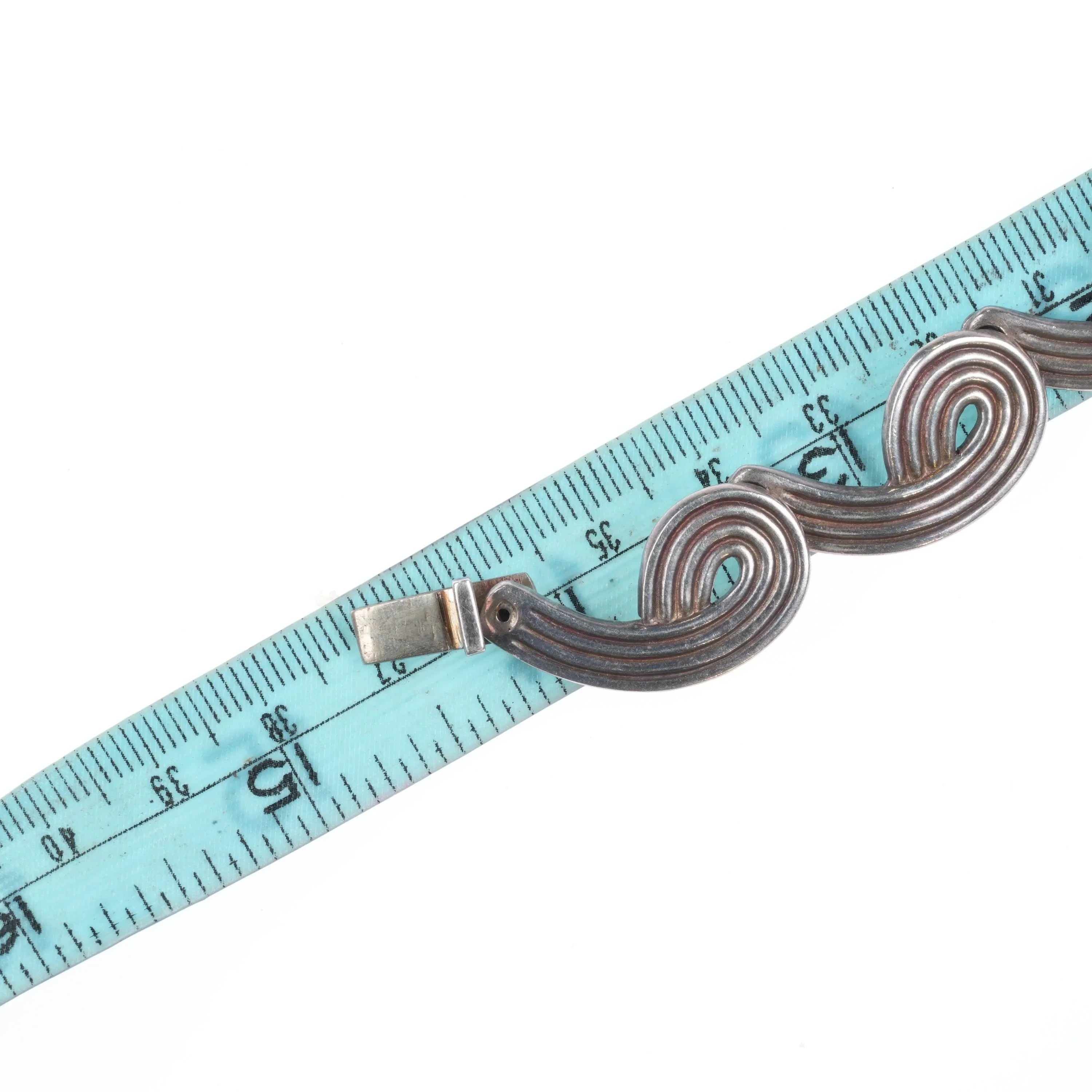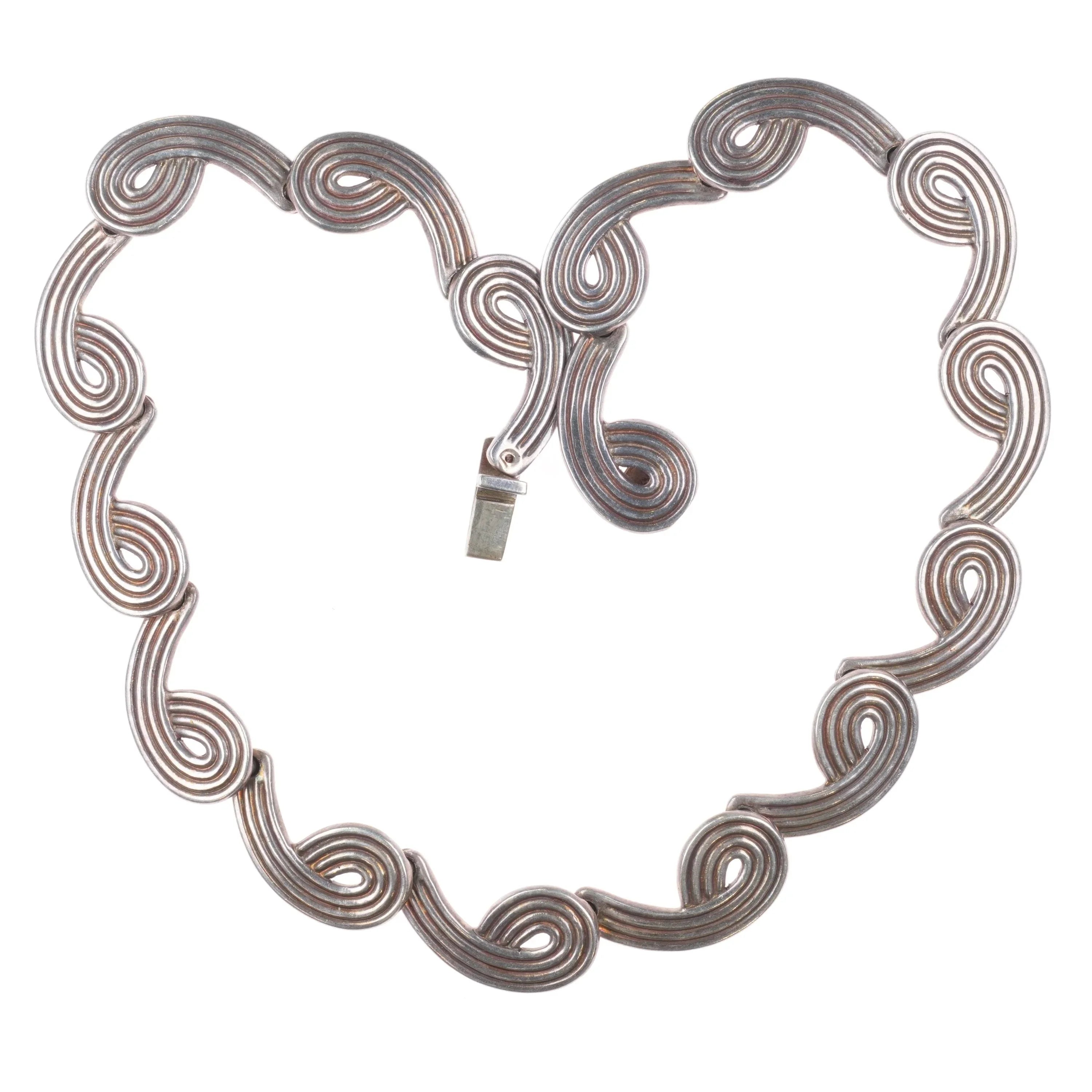 14" Vintage Mid Century Modernist Mexican sterling choker necklace 15mm-16mm wide. Solid sterling silver tested and guaranteed with weight and measurements in the pictures. No issues, circa third quarter of the 20th century.