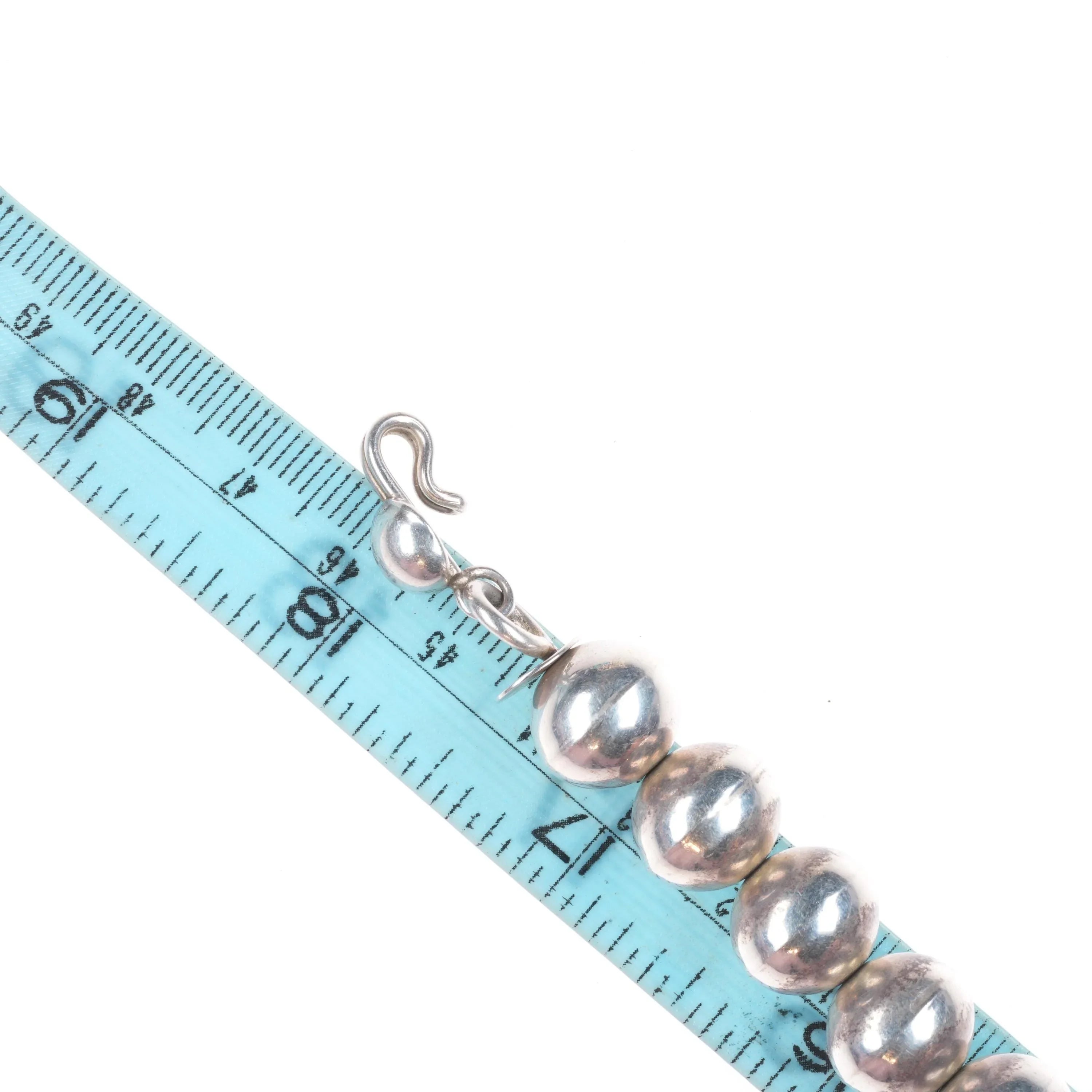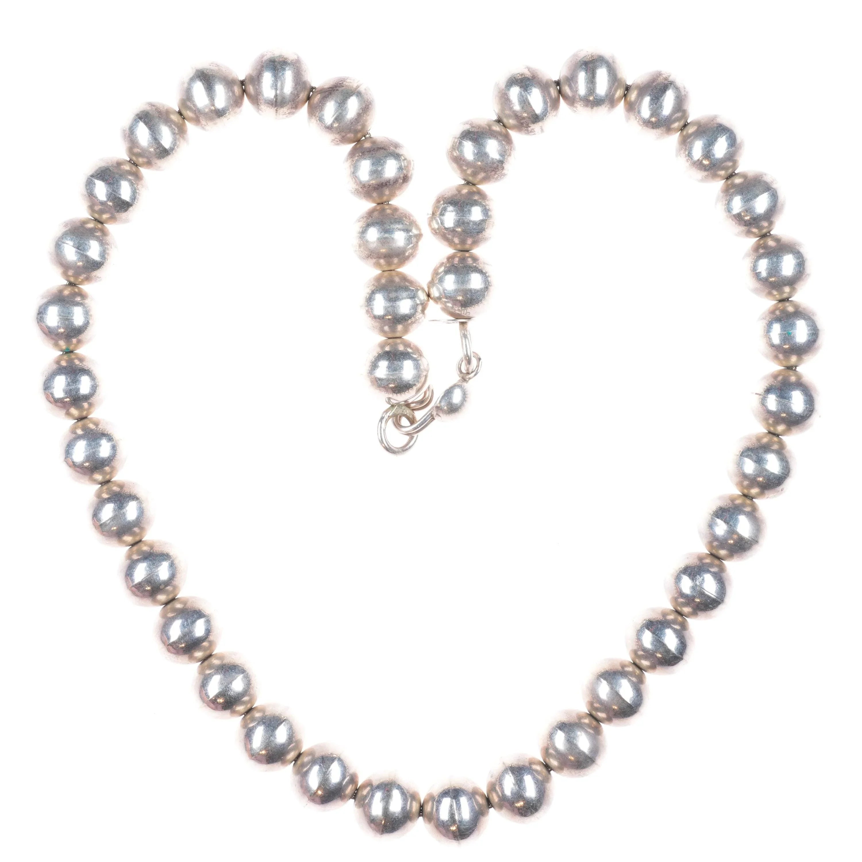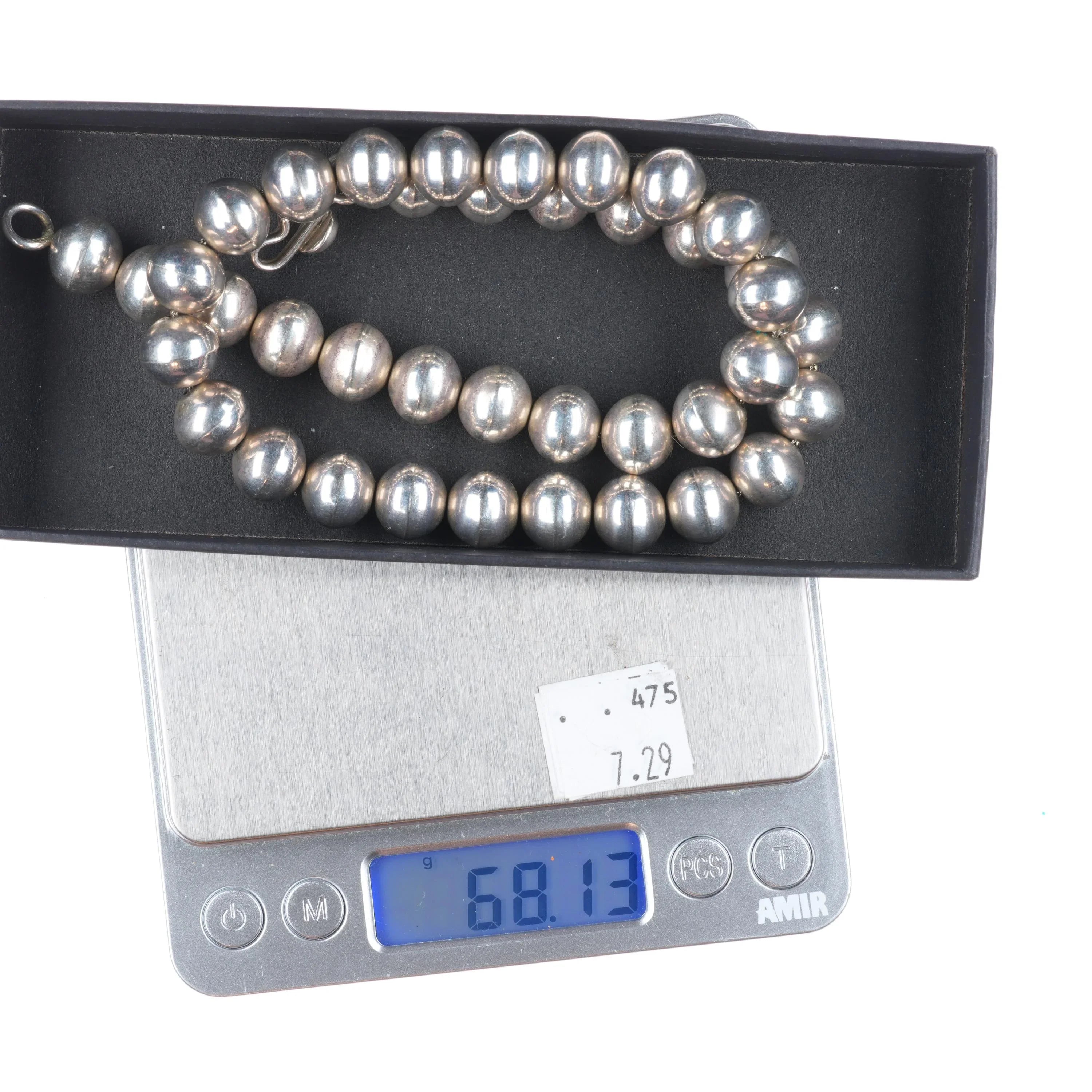 18.25" Arnold Maloney Navajo pearls beaded sterling silver necklace. Solid sterling silver tested and guaranteed with weight and measurements in the pictures. No issues, circa last quarter of the 20th century. Handmade beads, signed on tag.