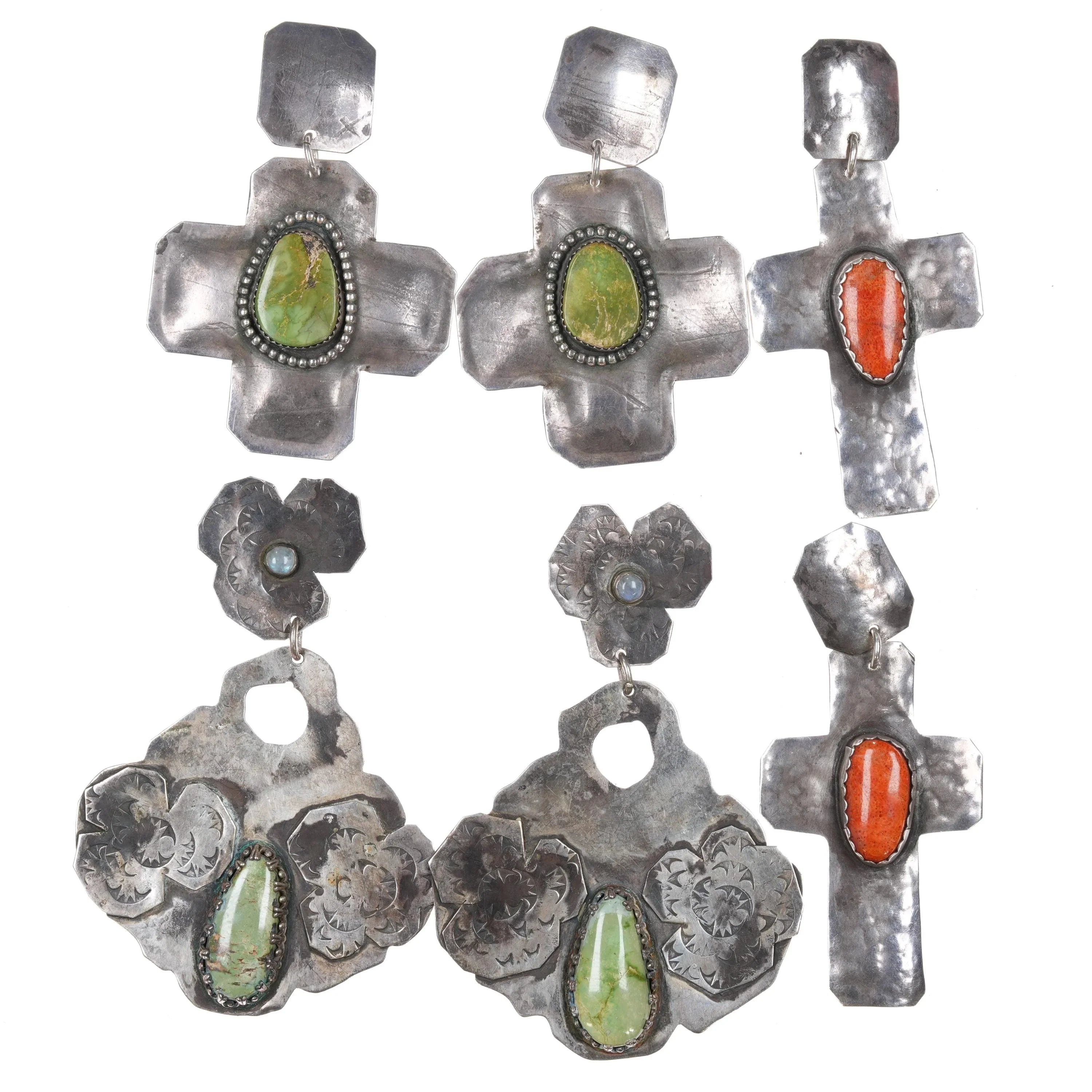 1990‘s Santa Fe Artisan gemset crosses sterling silver earrings collection. High end, really nice with no issues. Selling all shown, one pair likely cost what I‘m asking for the lot originally.