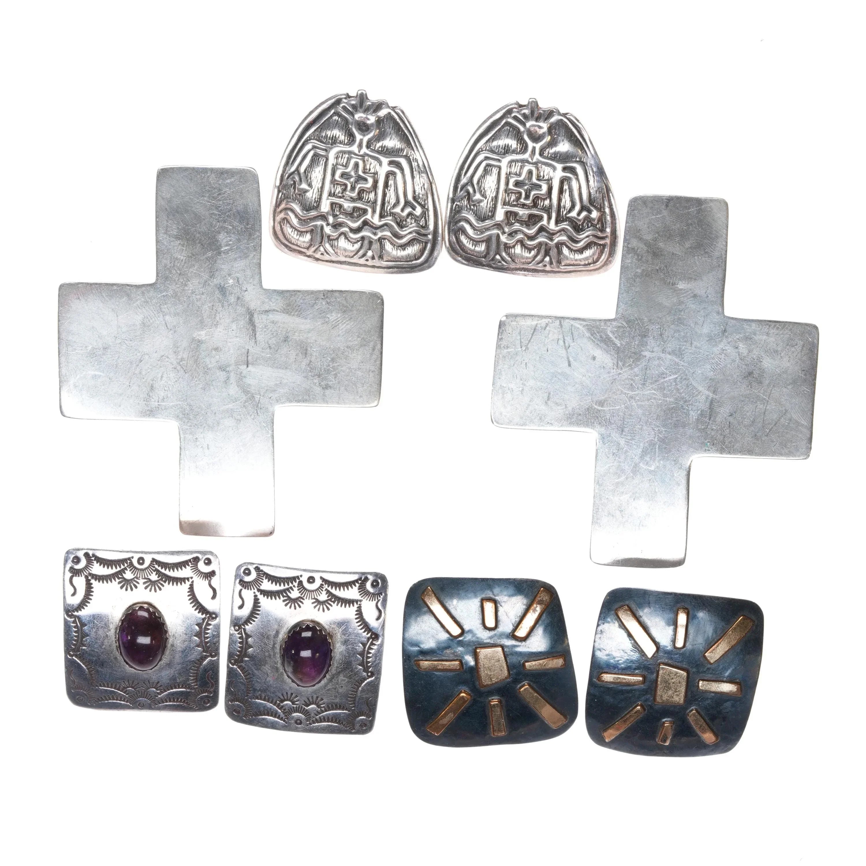1990‘s Santa Fe Artisan cross/gemset sterling silver earrings collection. High end, really nice with no issues. Selling all shown, one pair likely cost what I‘m asking for the lot originally.