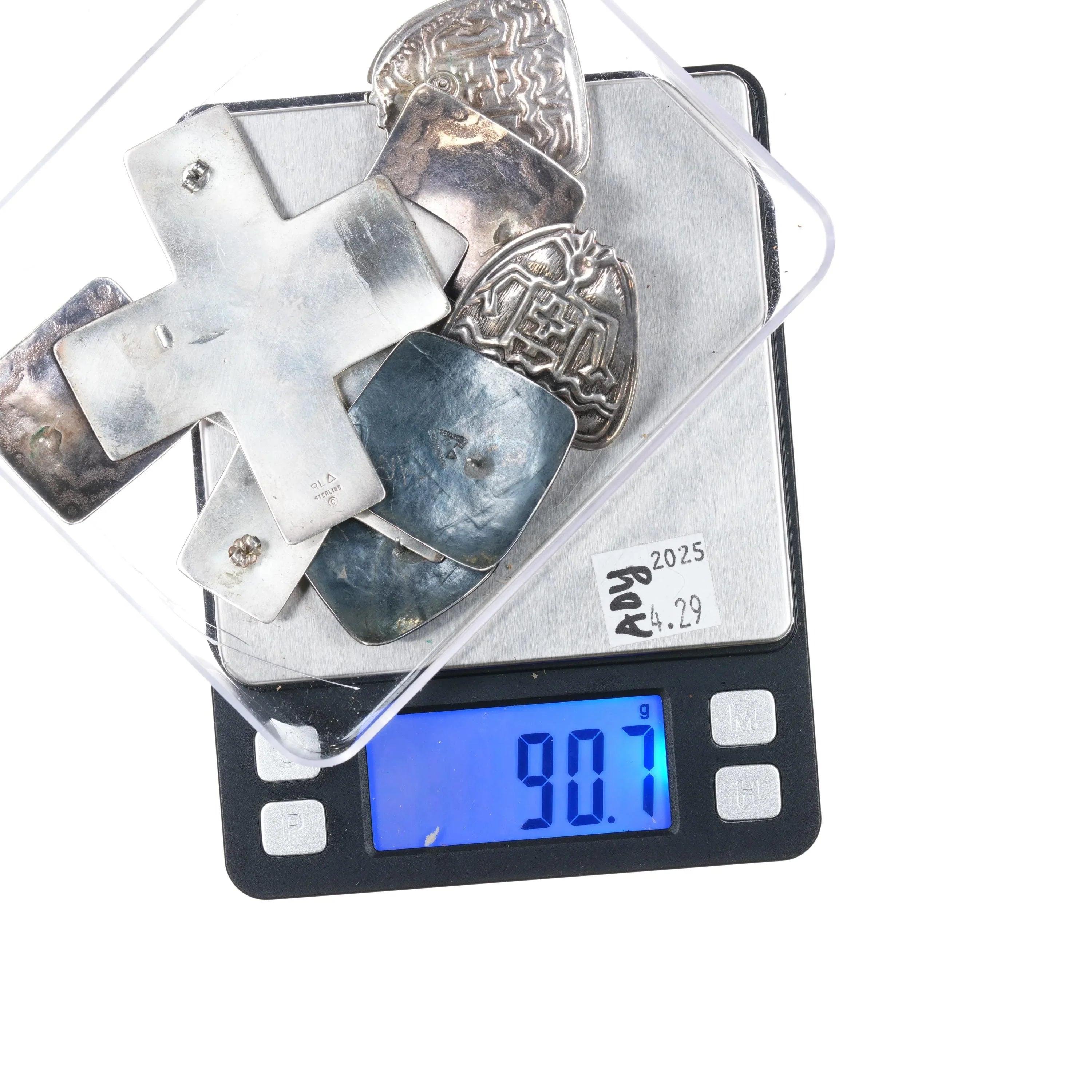 Weight and measurements in pics, all solid sterling. NO issues. Very high quality pieces from an extremely high quality collection put together in the 90‘s. I didn‘t have time to try to idenify much of it as there just is no time, but the pieces I did recognize were all from very high end mostly Santa Fe, New Mexico artists. It was all collected on trips to Santa Fe in the 90‘s.