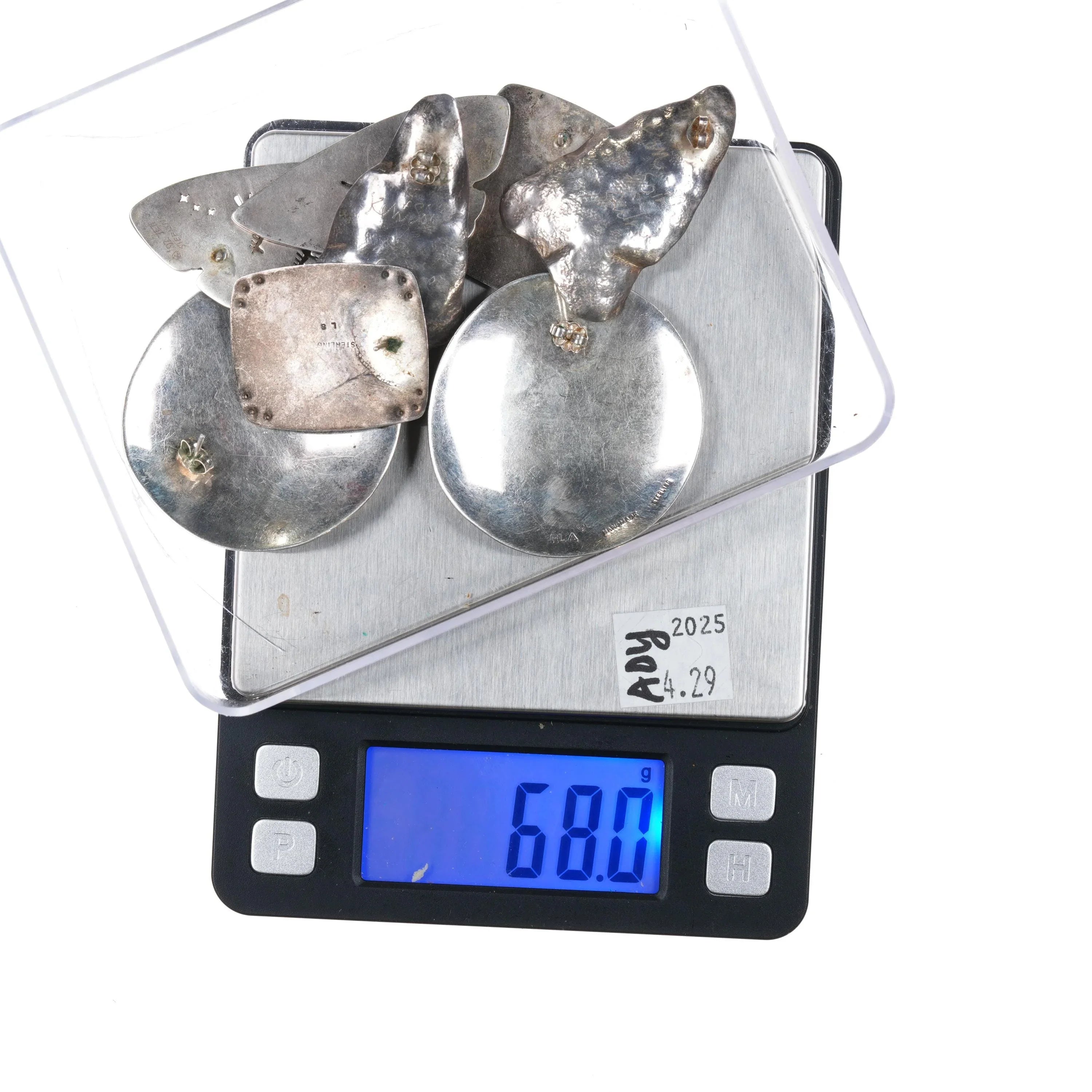 1990‘s Santa Fe Artisan Multi Abstract sterling silver earrings collection. High end, really nice with no issues. Selling all shown, one pair likely cost what I‘m asking for the lot originally.