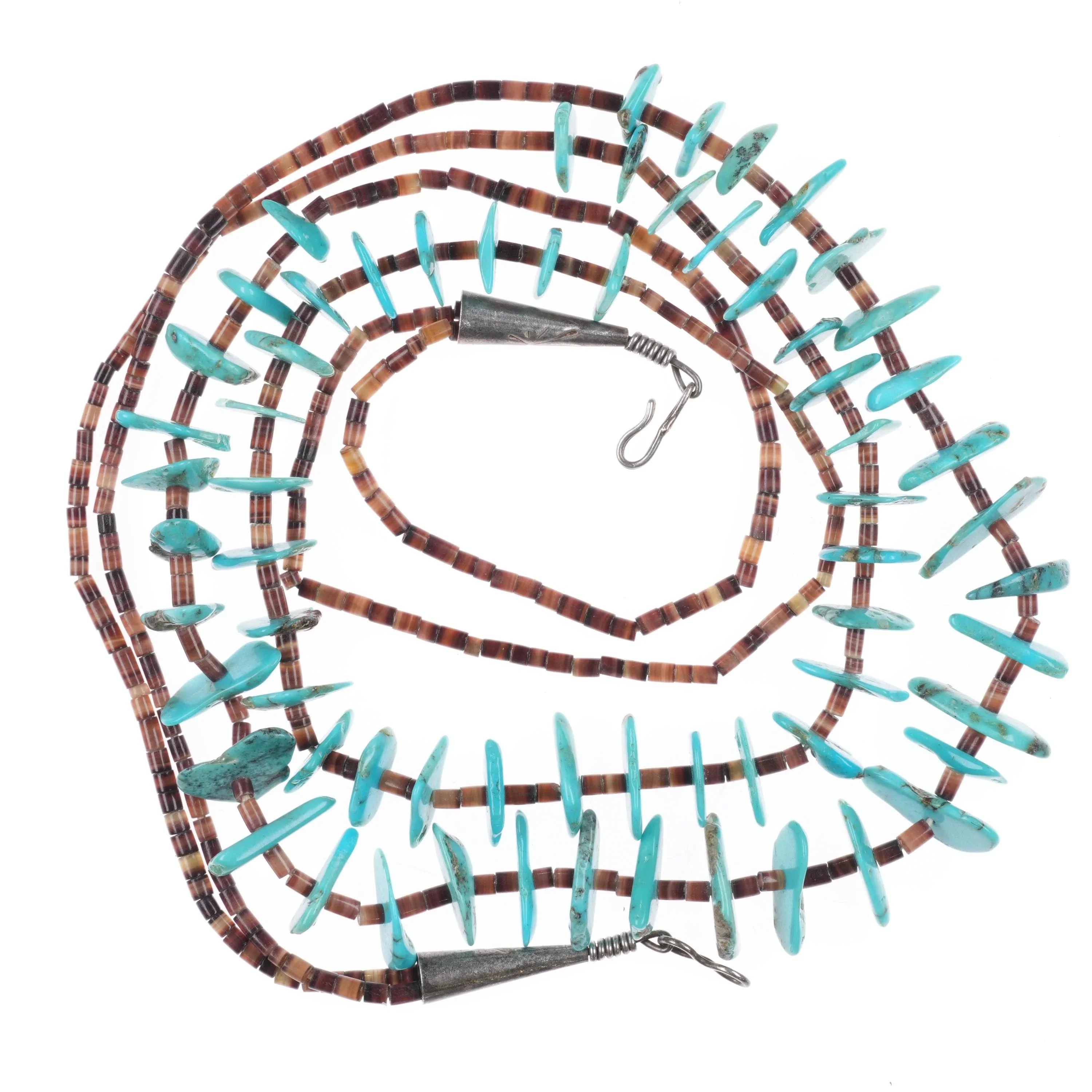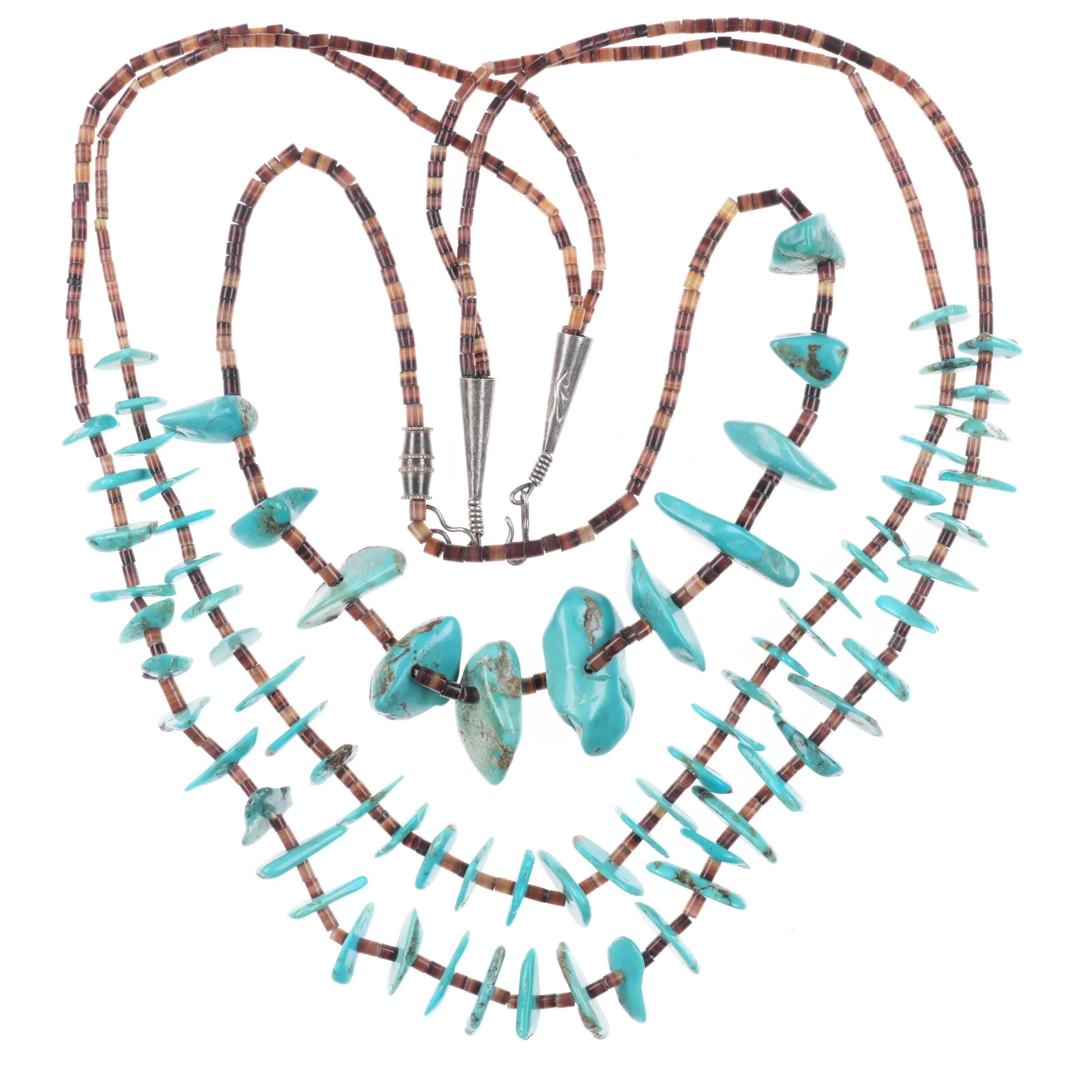2 Vintage Santo Domingo sterling silver mounted shell/turquoise heishi necklaces