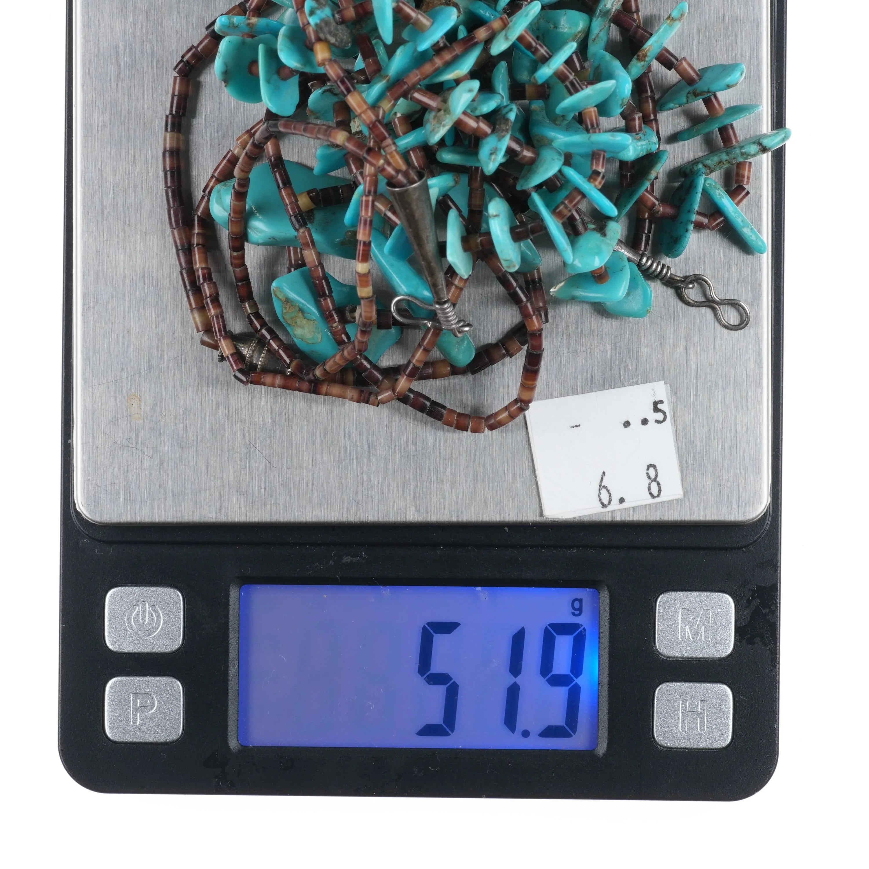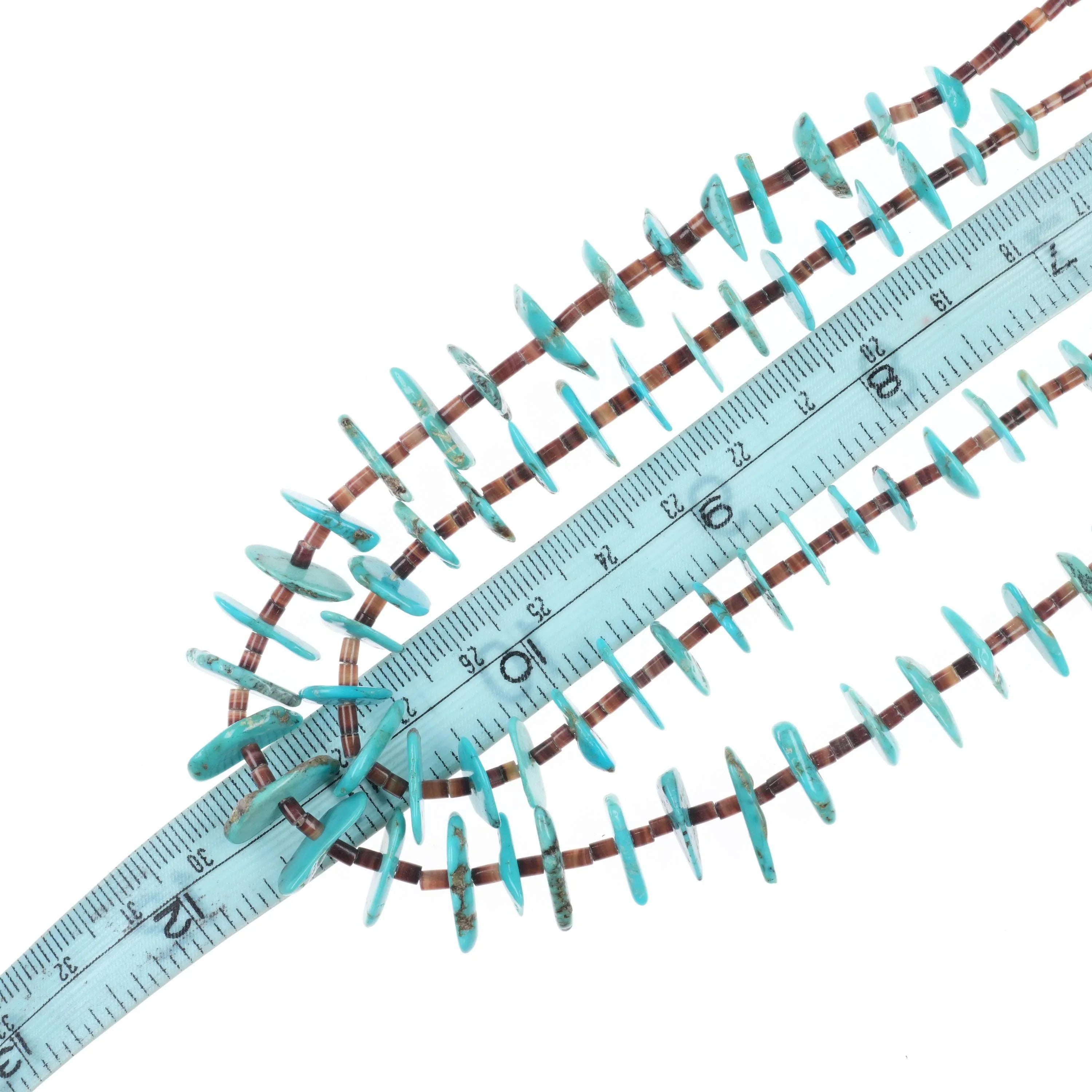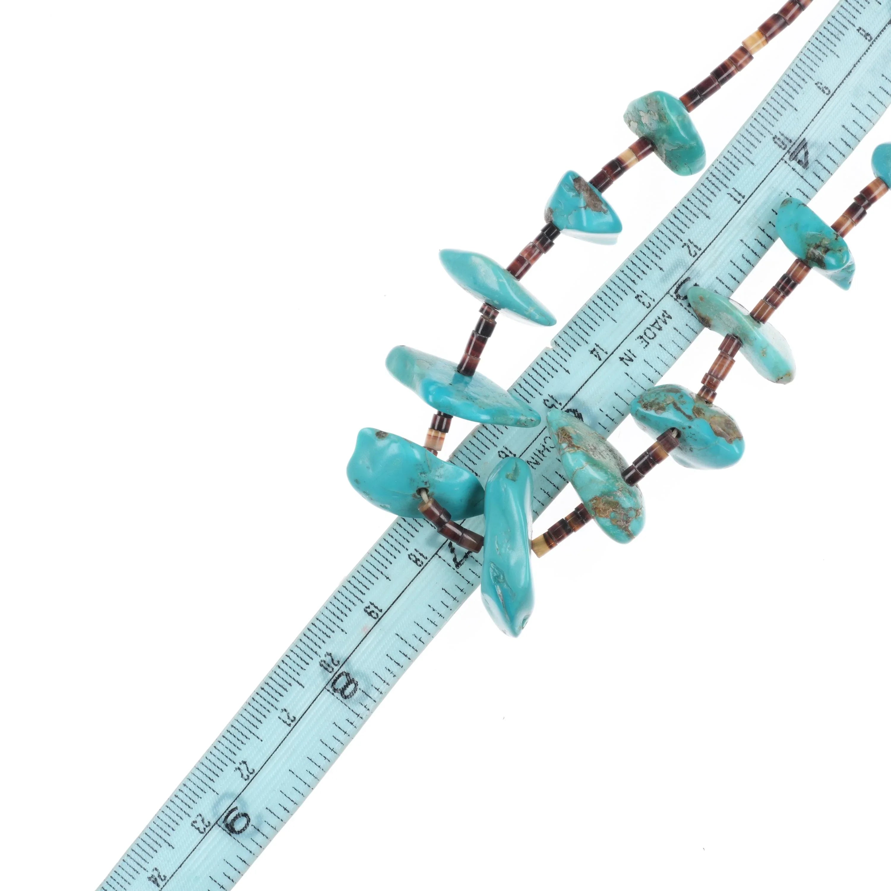 2 Vintage Santo Domingo sterling silver mounted shell/turquoise heishi necklaces with weight and measurements in pictures. No damage or issues, beads and clasp Tested and Guaranteed solid sterling silver. Necklaces are 14" and 22" long. No detectable damage.