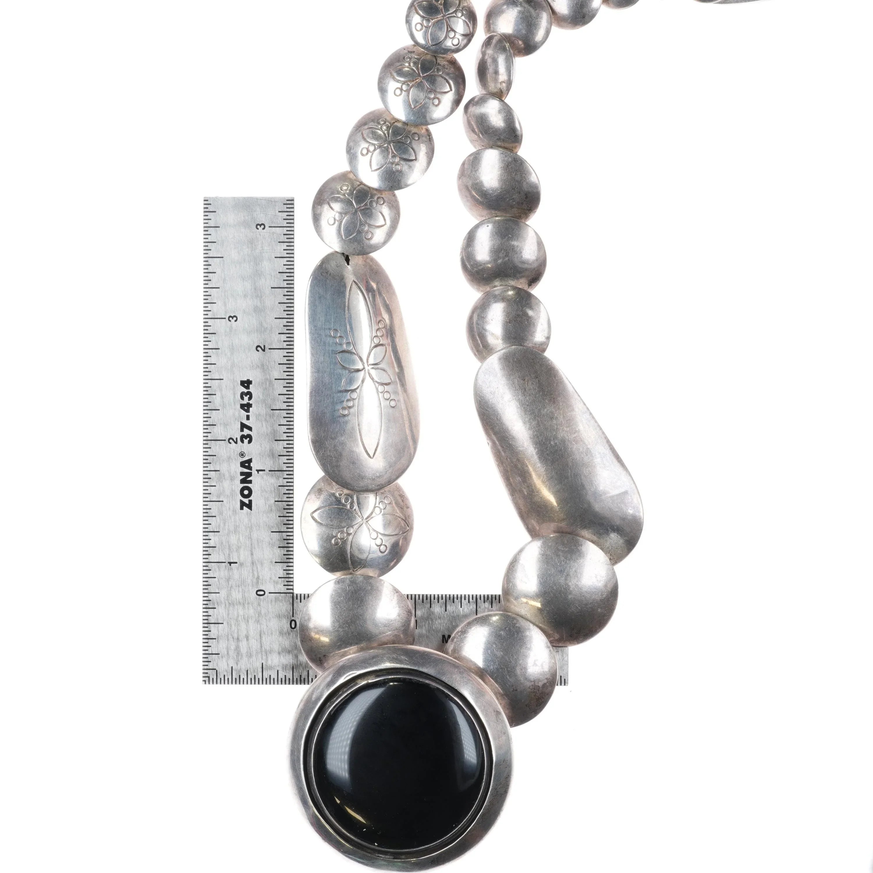 20" Mark Jimenez Apache reversible Onyx pillow bead necklace sterling silver