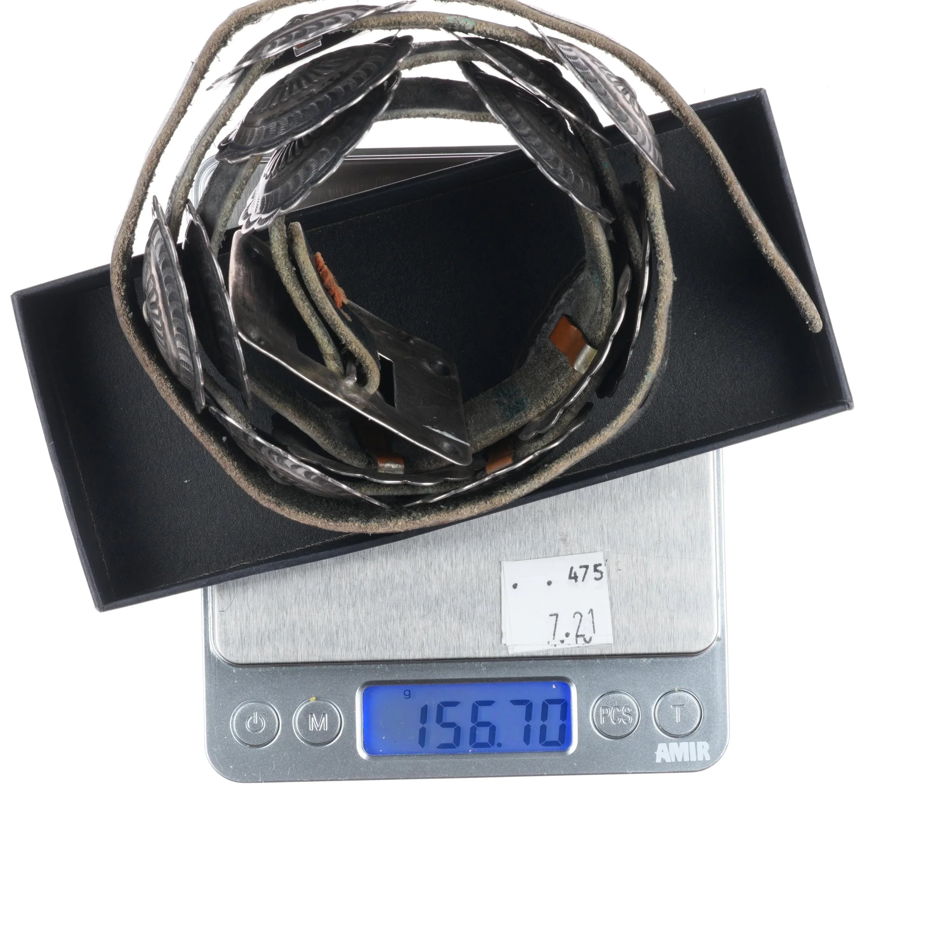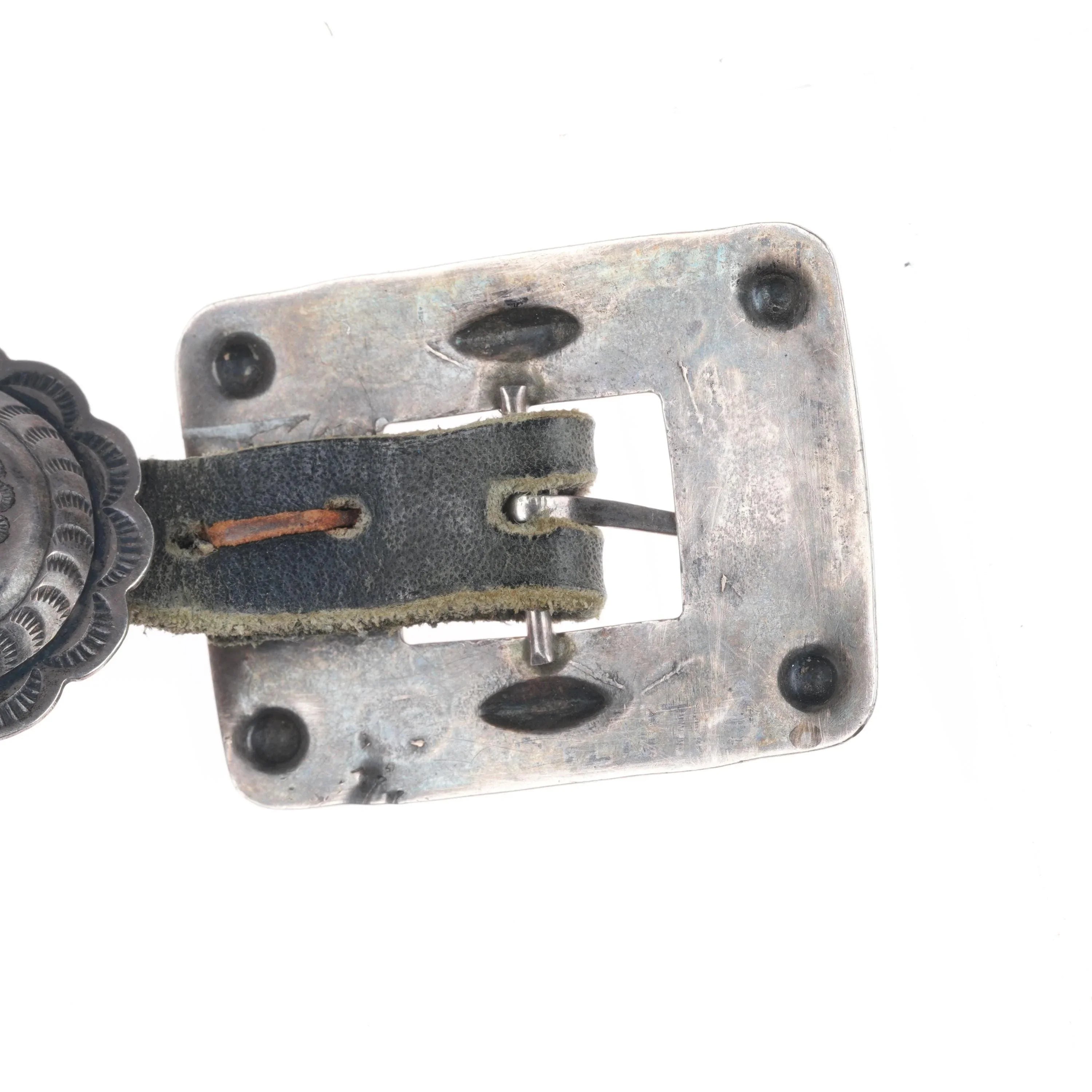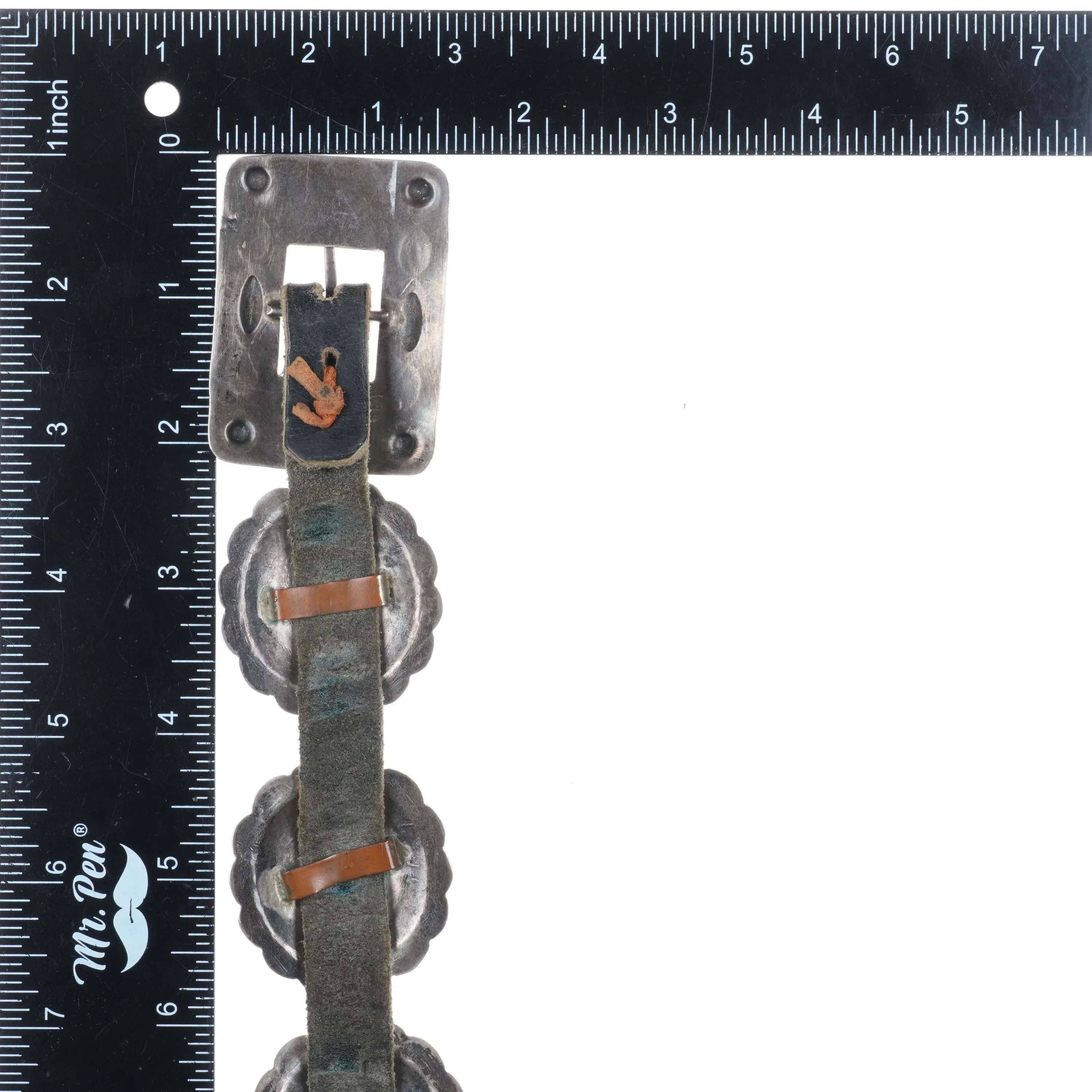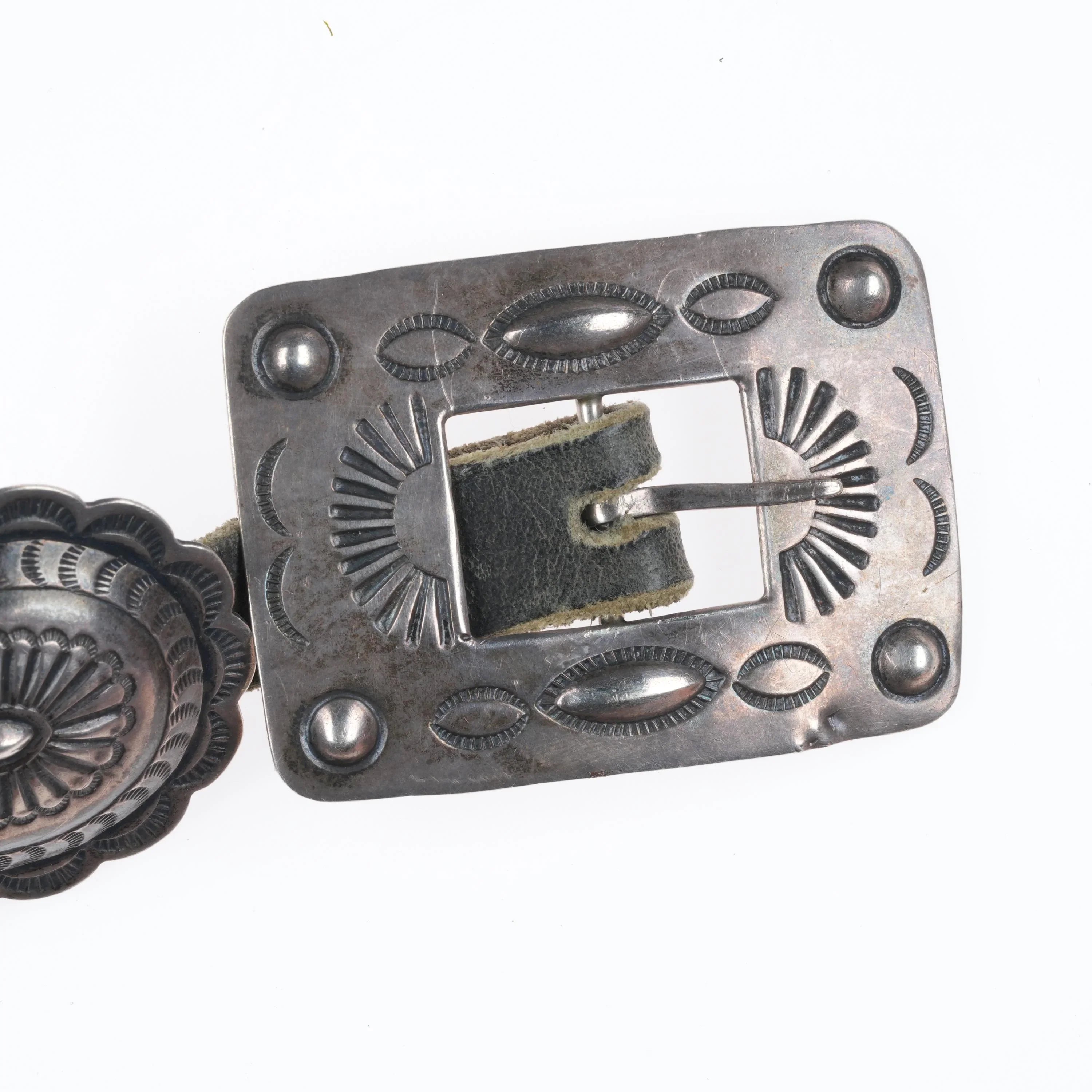 39" 40‘s-50‘s Vintage Navajo hand stamped sterling silver concho belt. Tested and guaranteed solid sterling silver with weight and measurements in pictures. Fully functional with no issues. All items will likely have some expected wear, the older they are the more wear they should have. Very clean condition 39" maximum wearable length, you would need to add a hole. I can add holes before shipping upon request. Circa mid 20th century, unmarked. 13 conchos and one buckle.