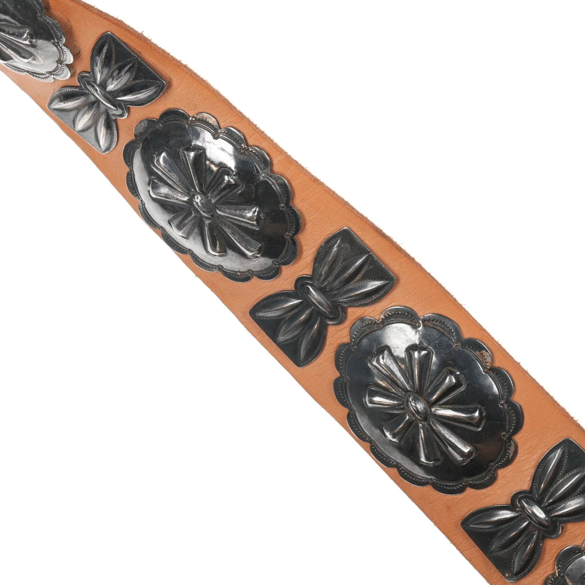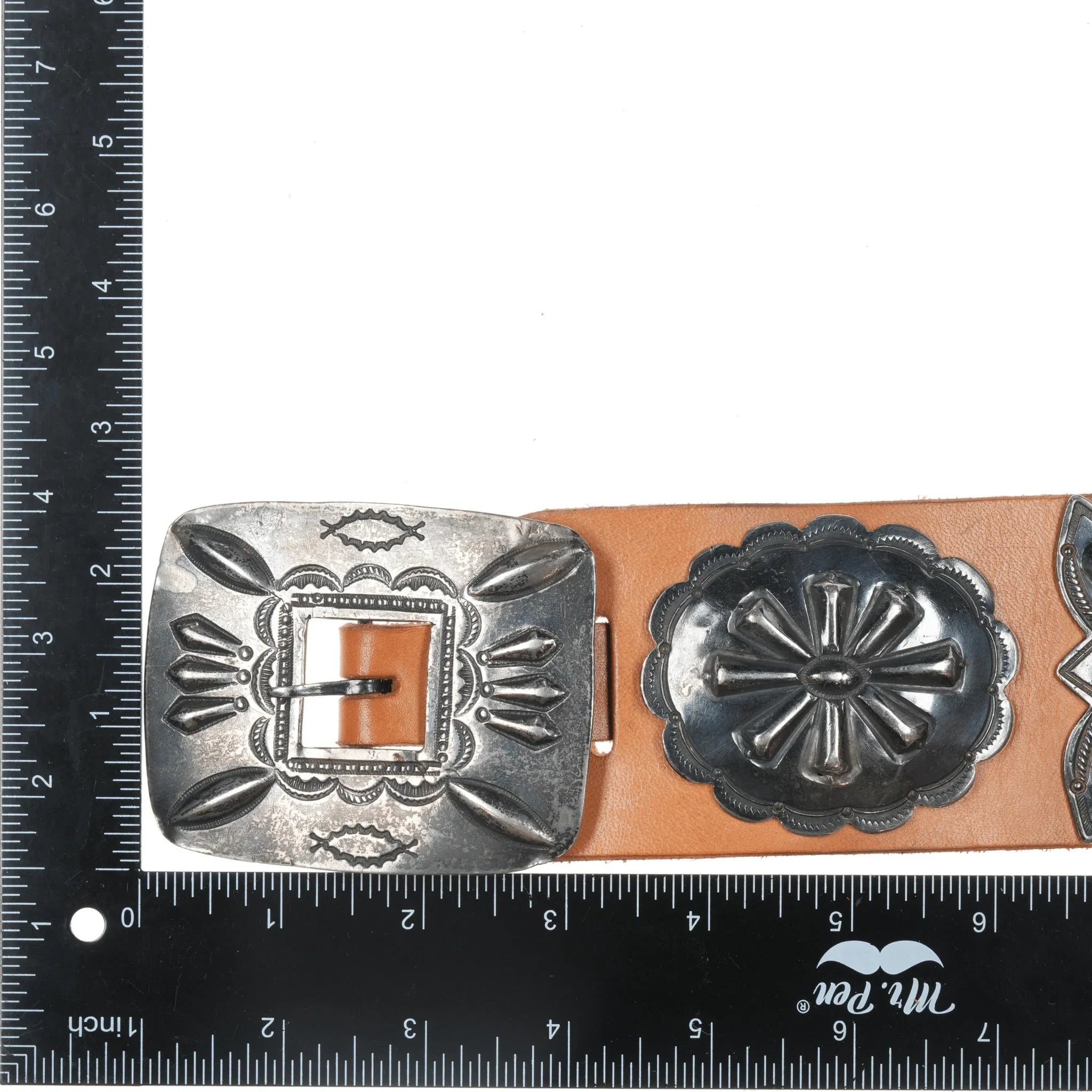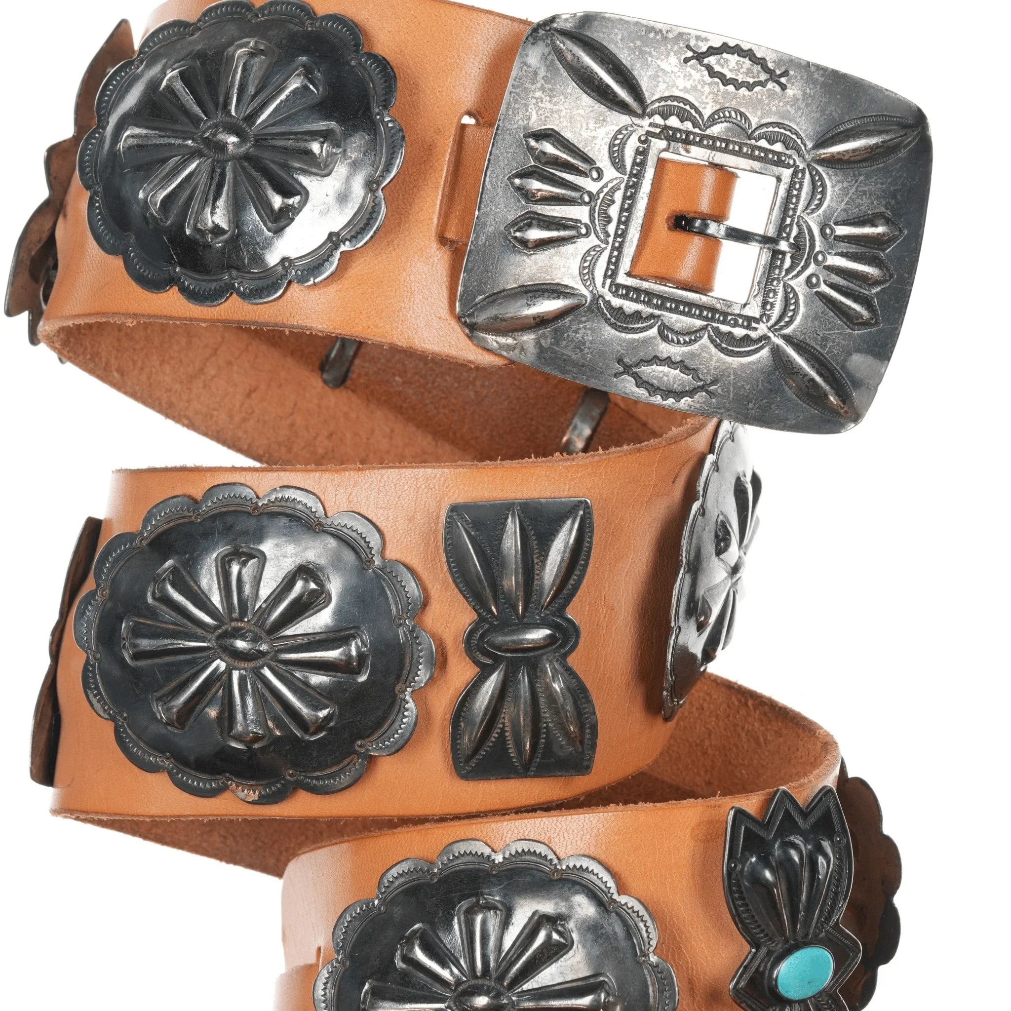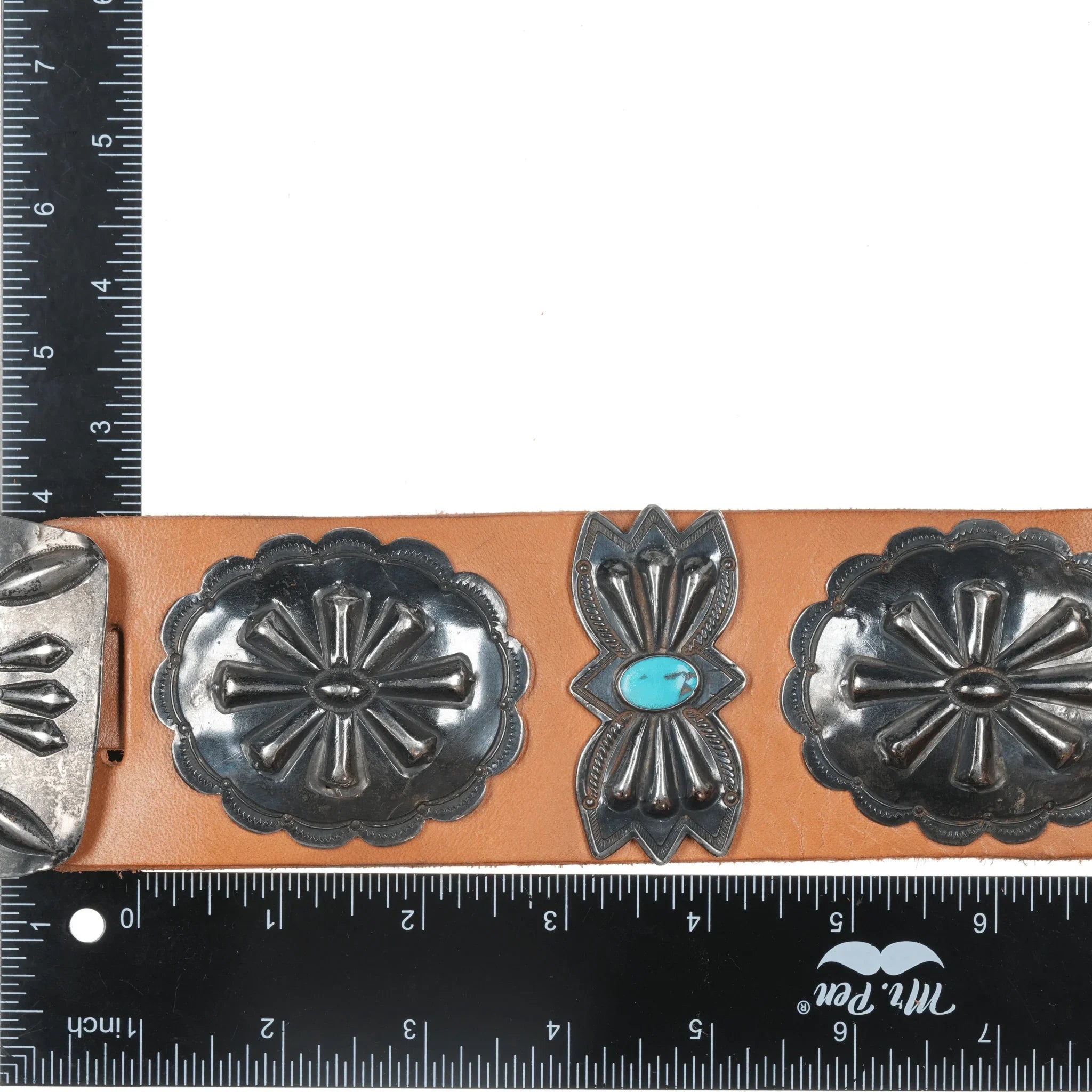 40's-50's Navajo Silver butterfly concho belt. 6 Butterfly Conchos, 2 different from the other 4 with turquoise, 7 Conchos, 1 Buckle. Measurements in pics. 37.5" long 456 grams.
