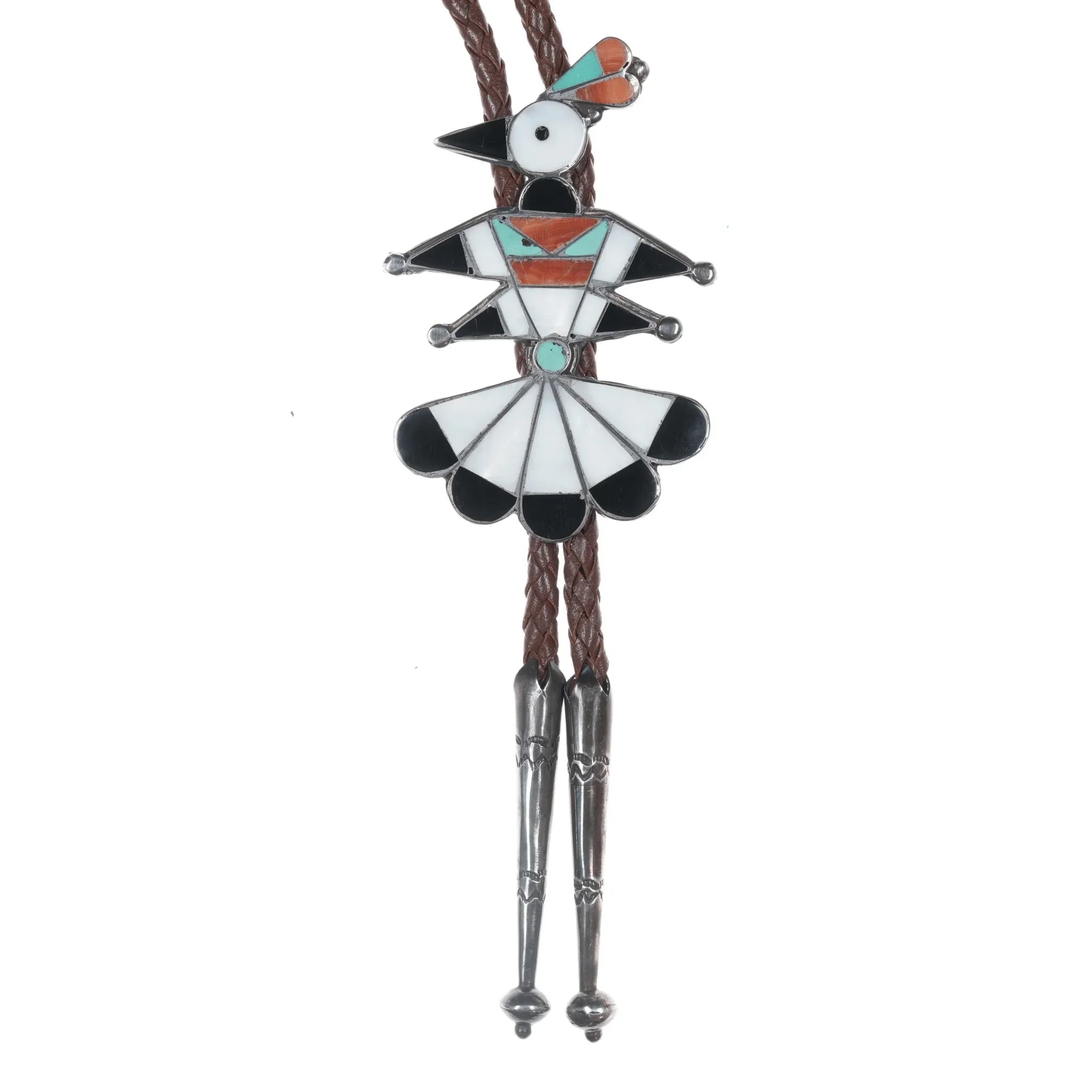 40's-50's Zuni silver channel inlay bird bolo tie with handmade tips, 41" long with no issues, measurements in pics.