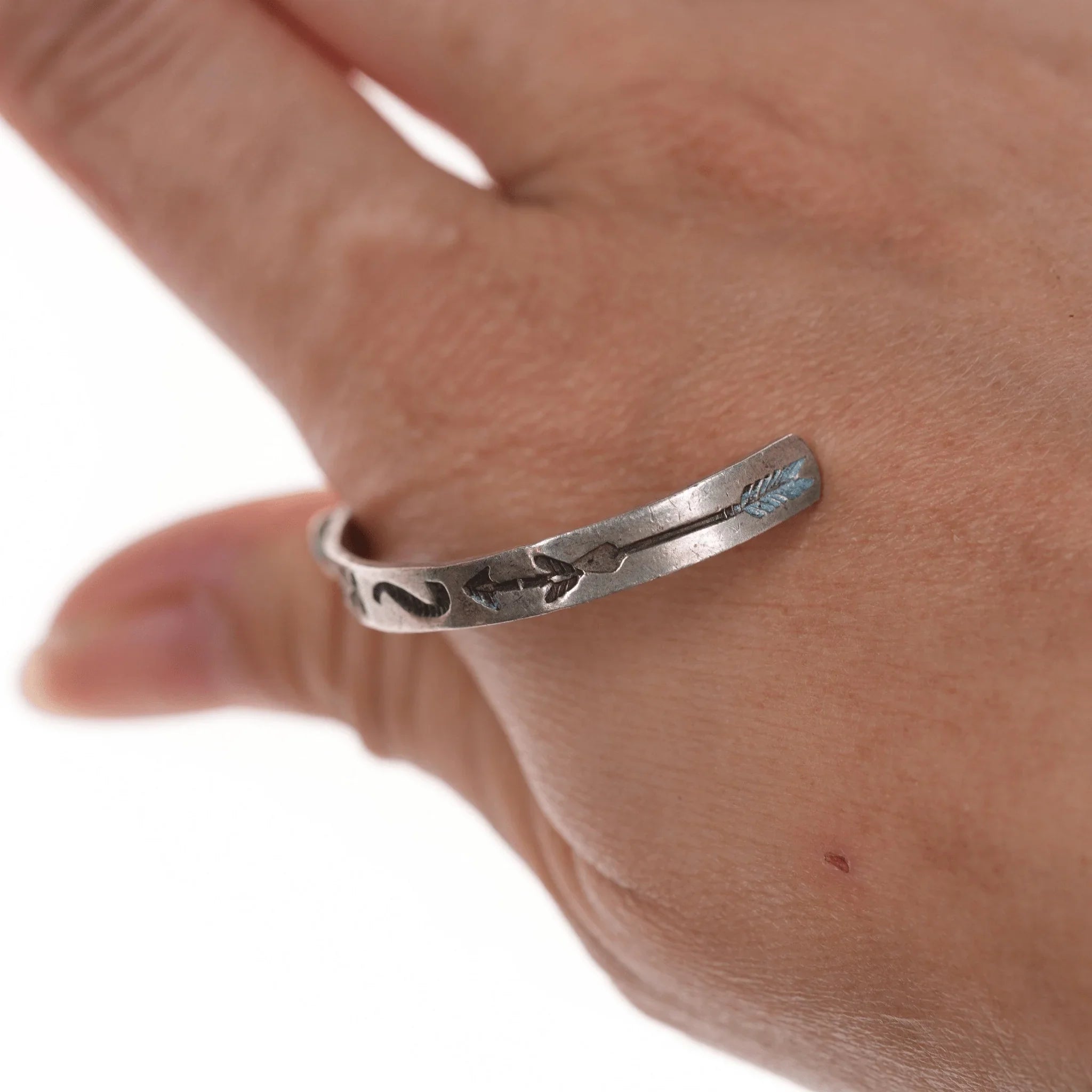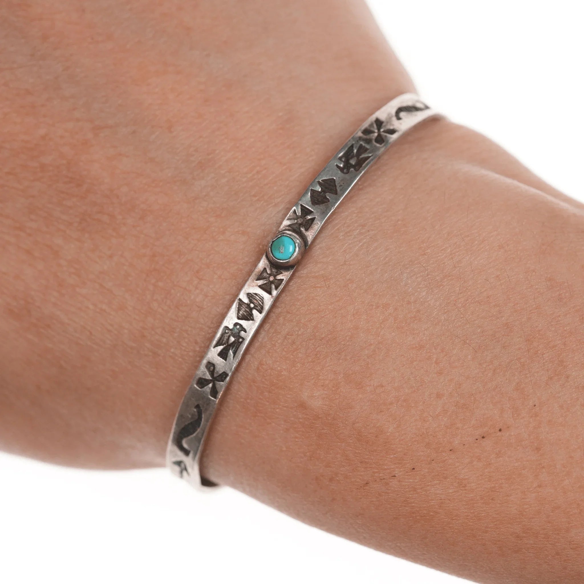 5.25" 30's-40's Navajo curio slim cuff bracelet with turquoise