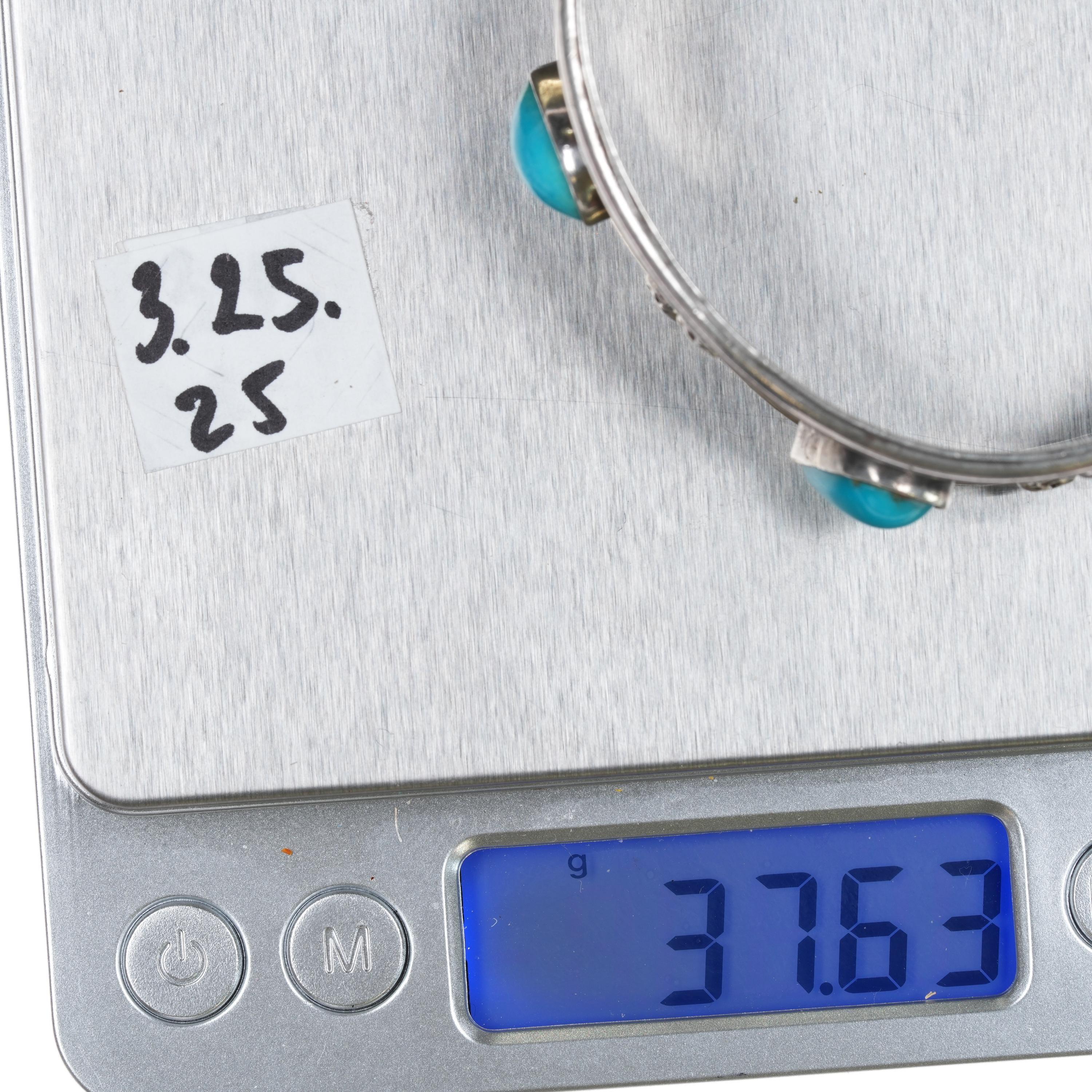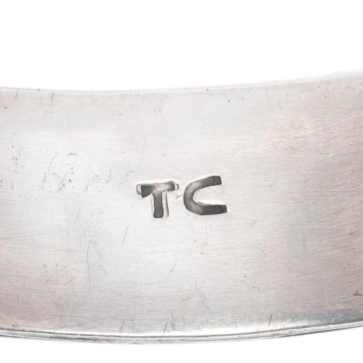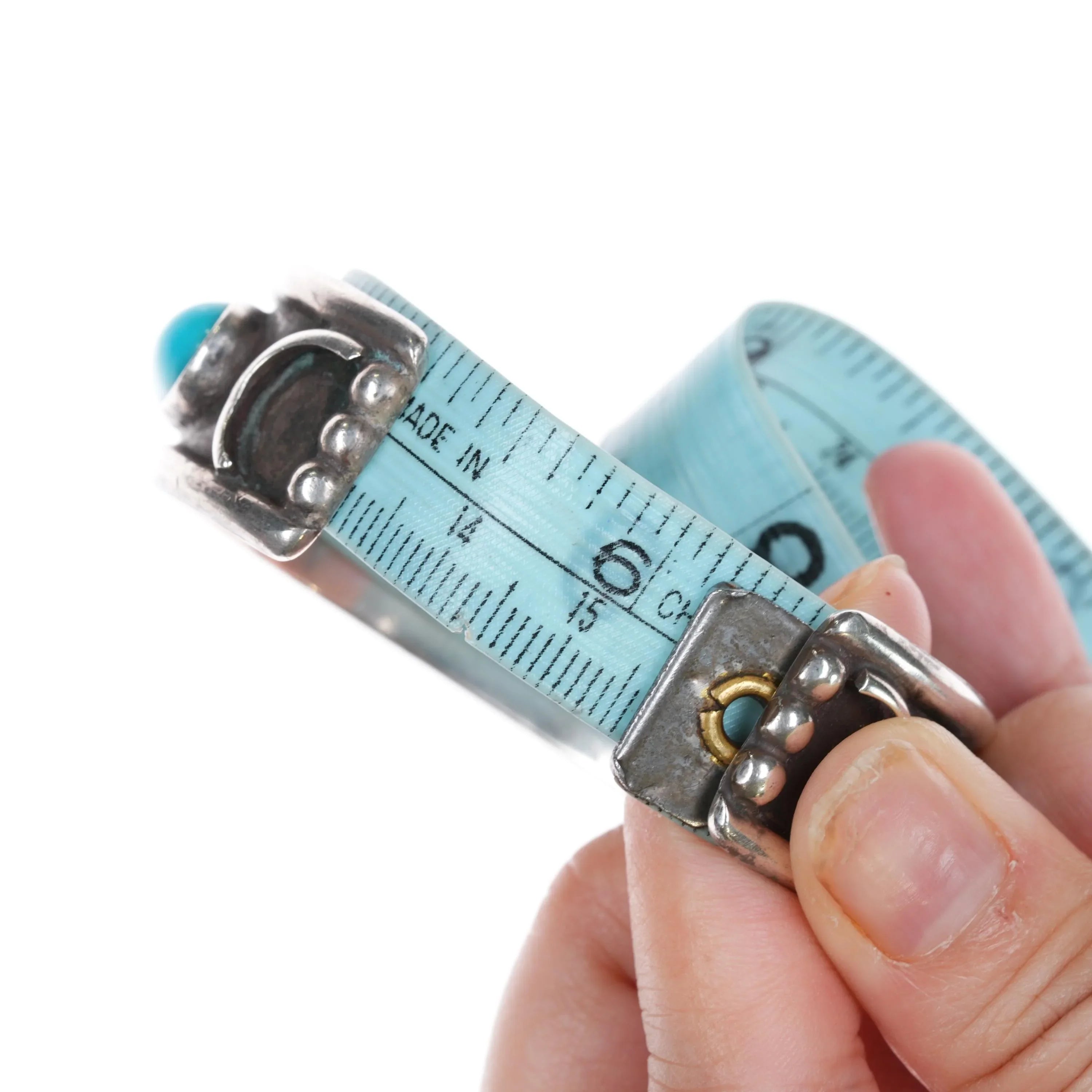 6 1/8" c1970‘s TC Navajo silver/turquoise modernist cuff bracelet. No issues, solid sterling, weight and measurements in pictures. Marked as shown in pictures.