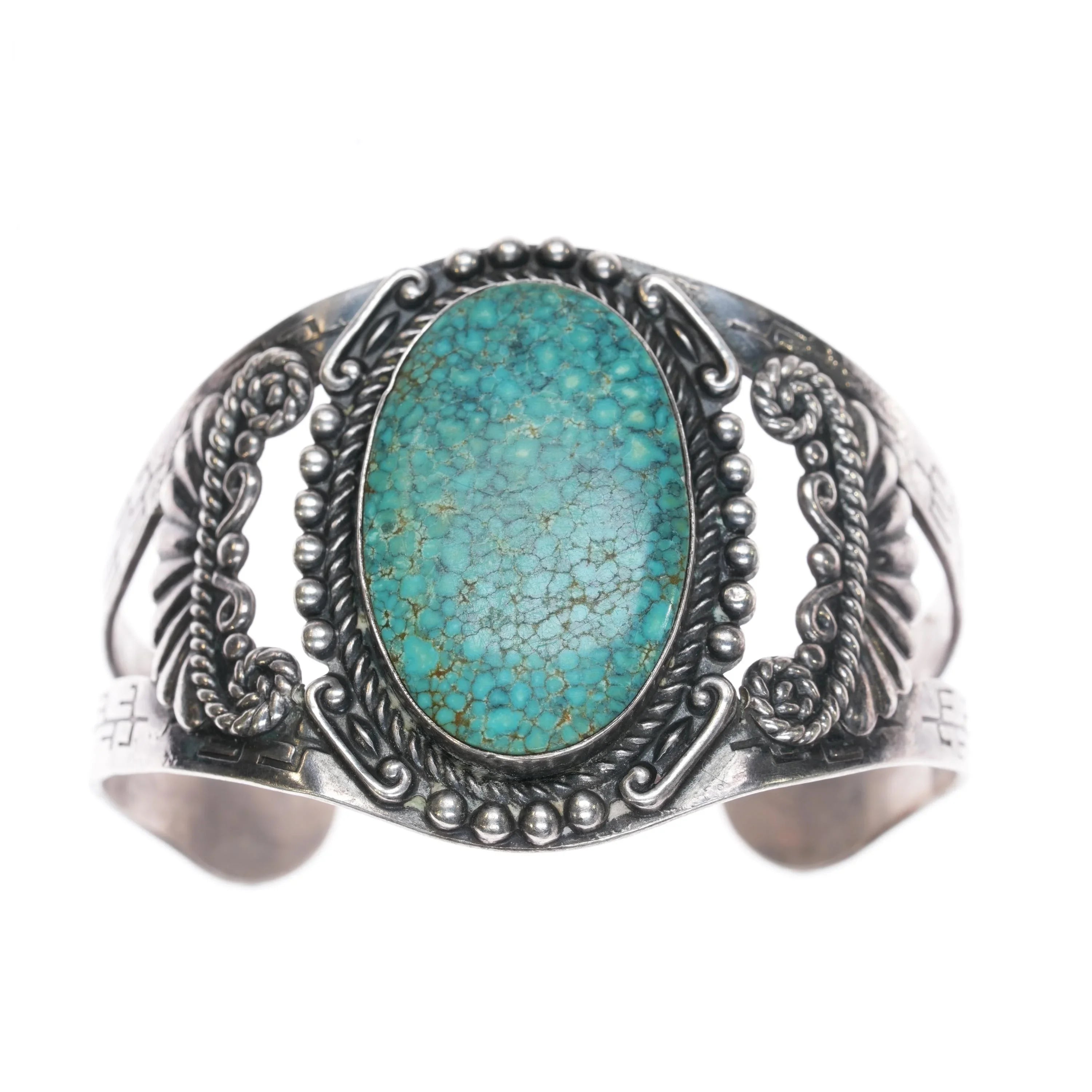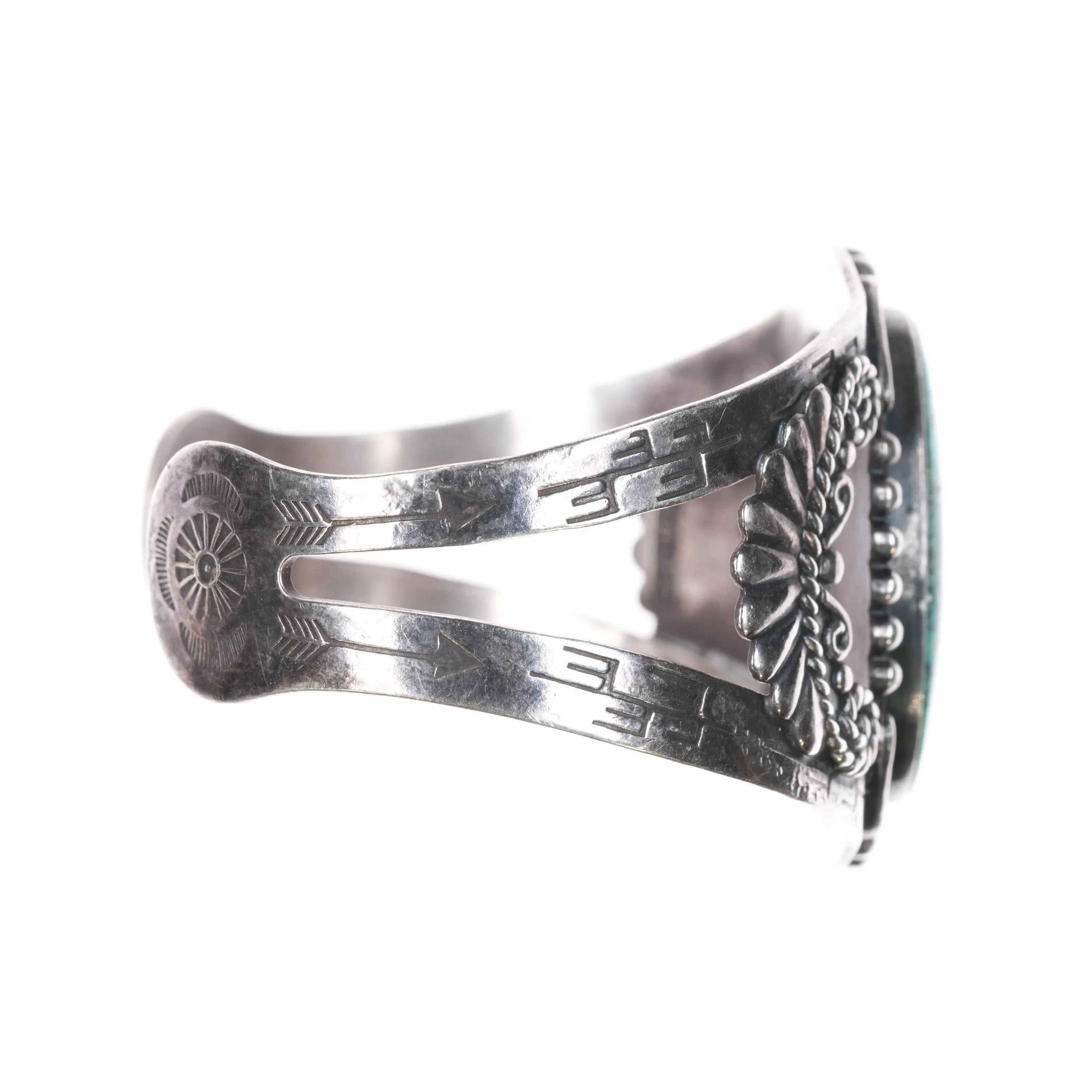 6.375" c1950 Maisels sterling High grade spiderweb turquoise #8? cuff bracelet