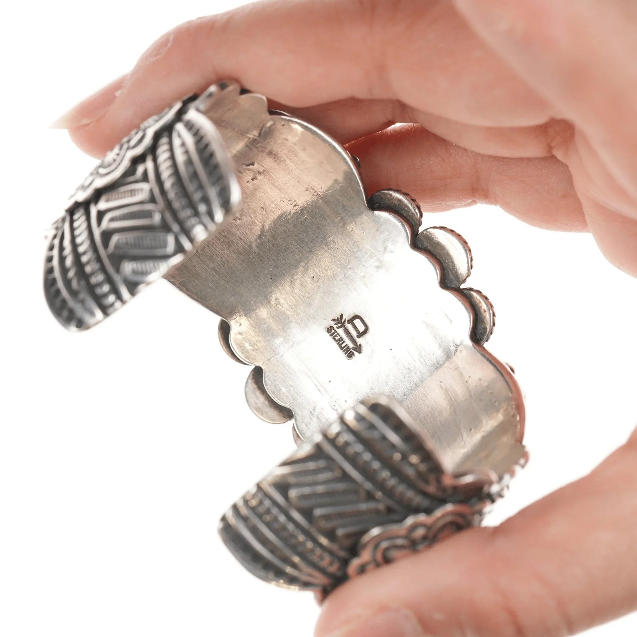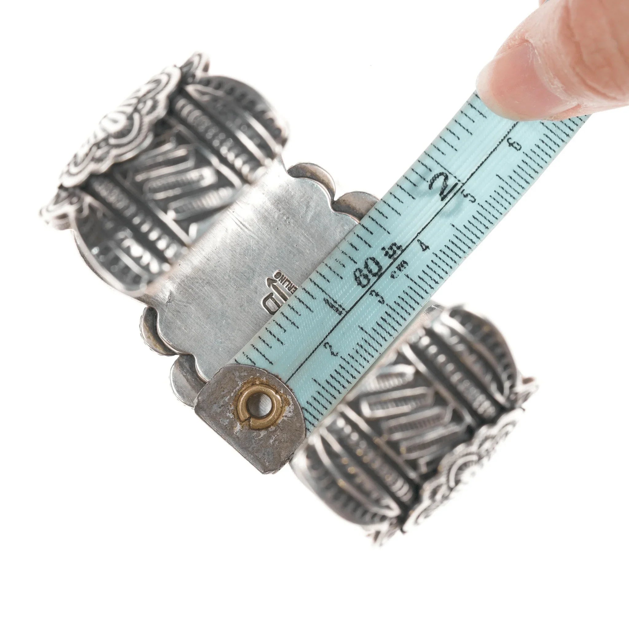 Navajo Darryl Becenti was born in '57 & was raised in the Native American Jewelry capitol town of Gallup,NM & was not only a highly skilled jeweler,but a Navajo Sand Painter as well.He was influenced by his brother in laws,David (Sunshine) & Leroy Reeves & was among a group of modern day traditional Gallup area Navajo silversmiths that all well known in the industry when it comes to Navajo jewelry..Their use of working with super heavy gauge sterling that's made with a repousse technique,stamp work or both.Darryl came from an era where using THE highest quality turquoise was important,so you are always guaranteed always having "Natural-Non Treated turquoise in any of his pieces.He wouldn't have dared used some of the turquoise that's being sold out there that can actually be a joke sometimes! Darryl's work is found on a International level & was one of the most sought after artists & even more so now.