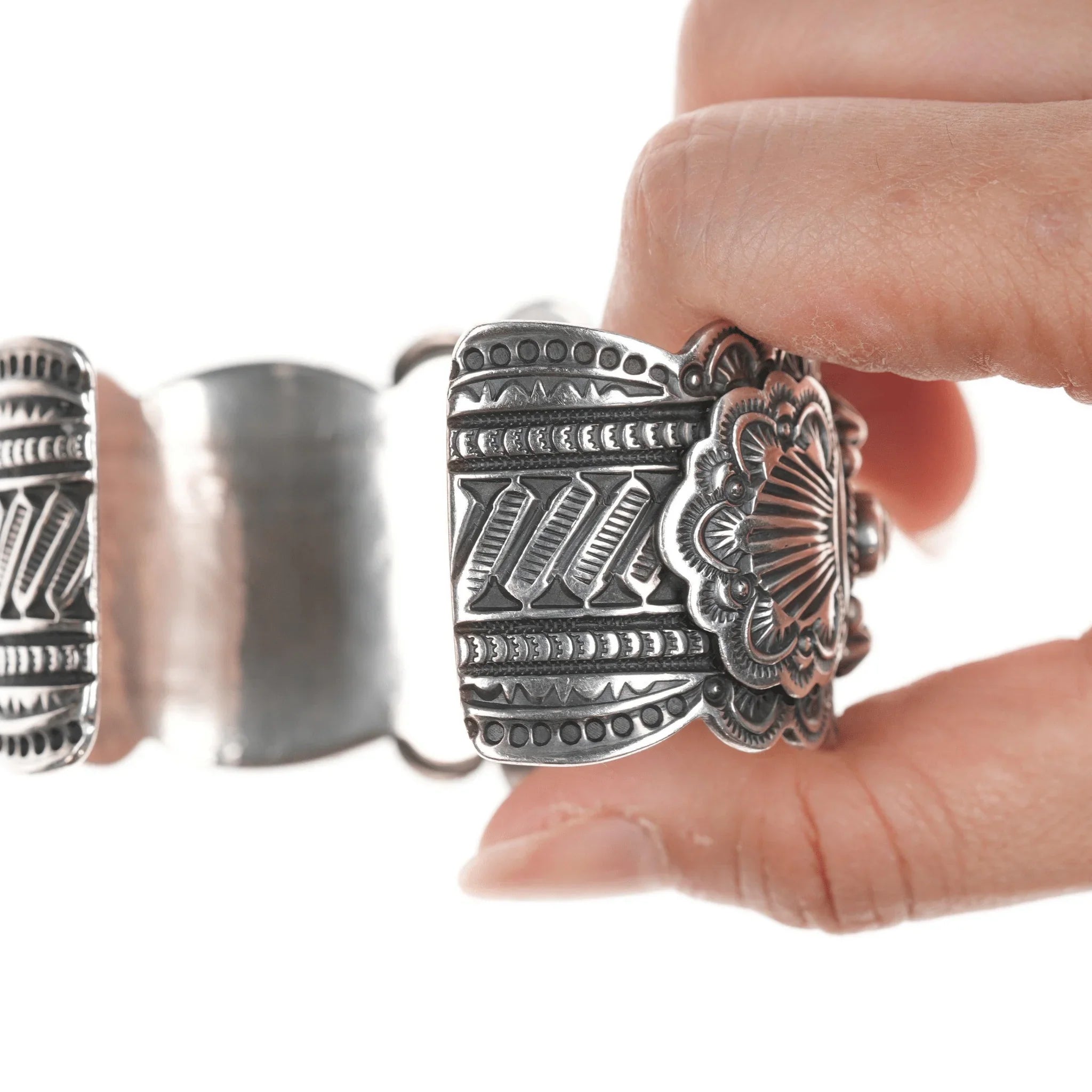 Marked or unmarked as shown in pics, weight and other measurements in pics. Sorry but my jewelry is stored in a secure location and cannot be accessed for more pictures,<br>videos, or measurements until sold. If you look at pictures/description your<br>question should be answered. Thank you so much for your time and consideration!<br><br>All precious metals are tested and guaranteed. A Native American jewelry piece referred to as "silver" or "ingot" is guaranteed to be at least 90% silver. Bracelets are photographed on a 6" women's wrist.