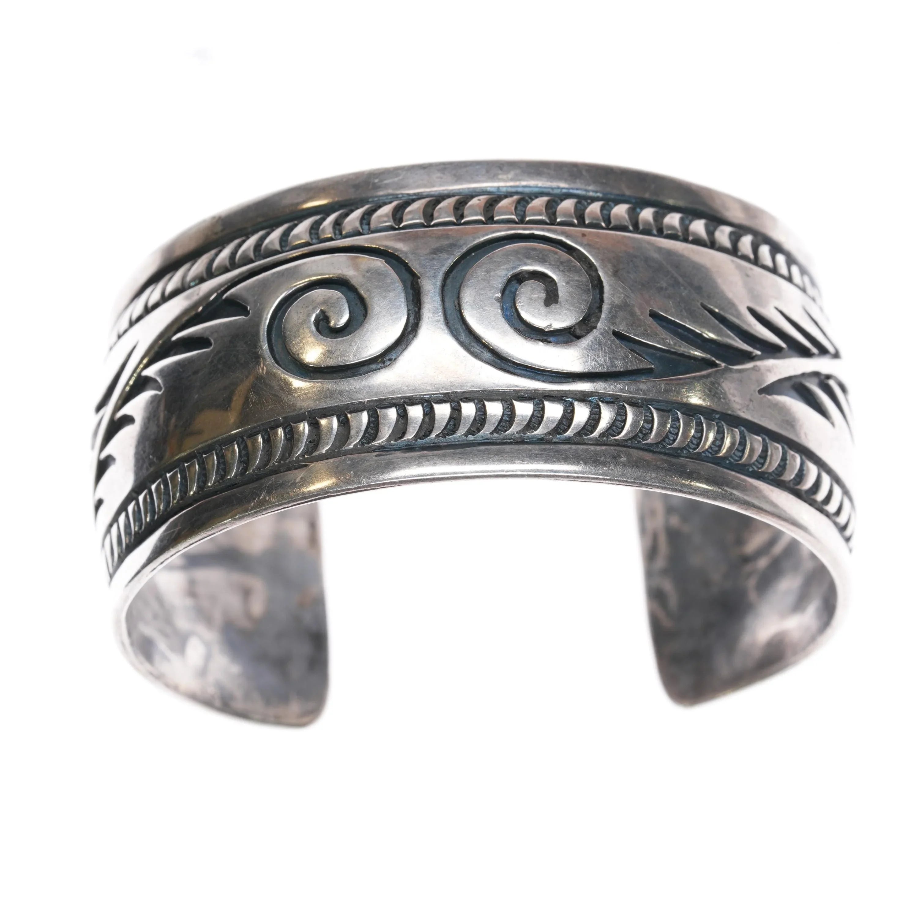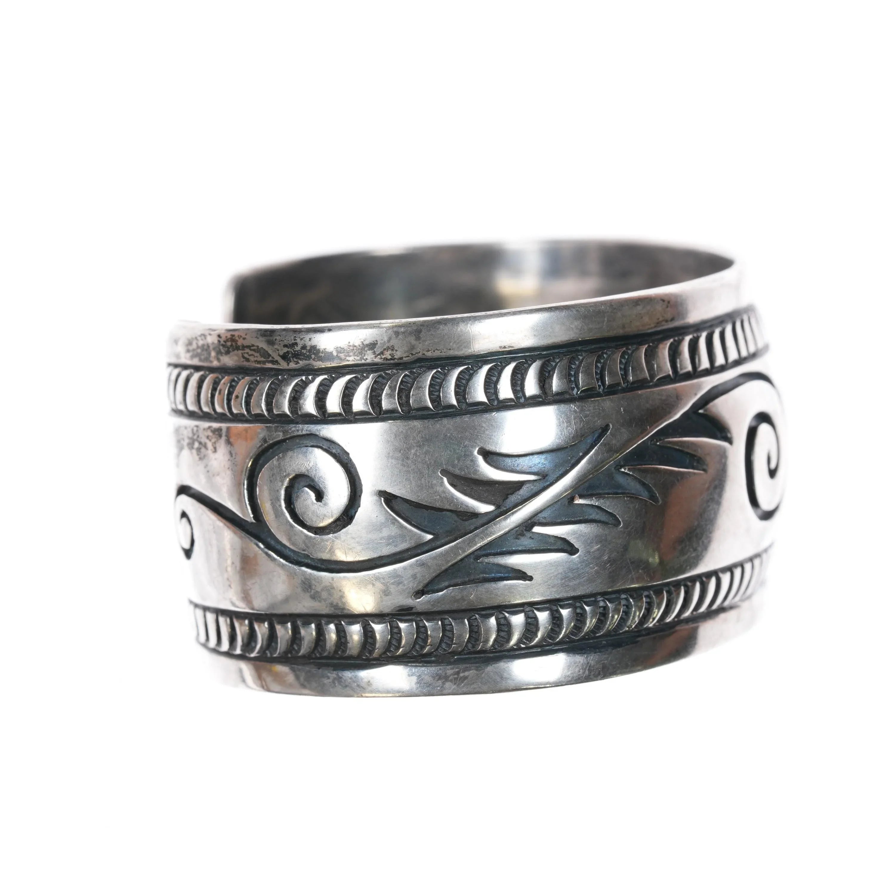6.5" Vintage Navajo Sterling silver Heavily stamped overlay cuff bracelet