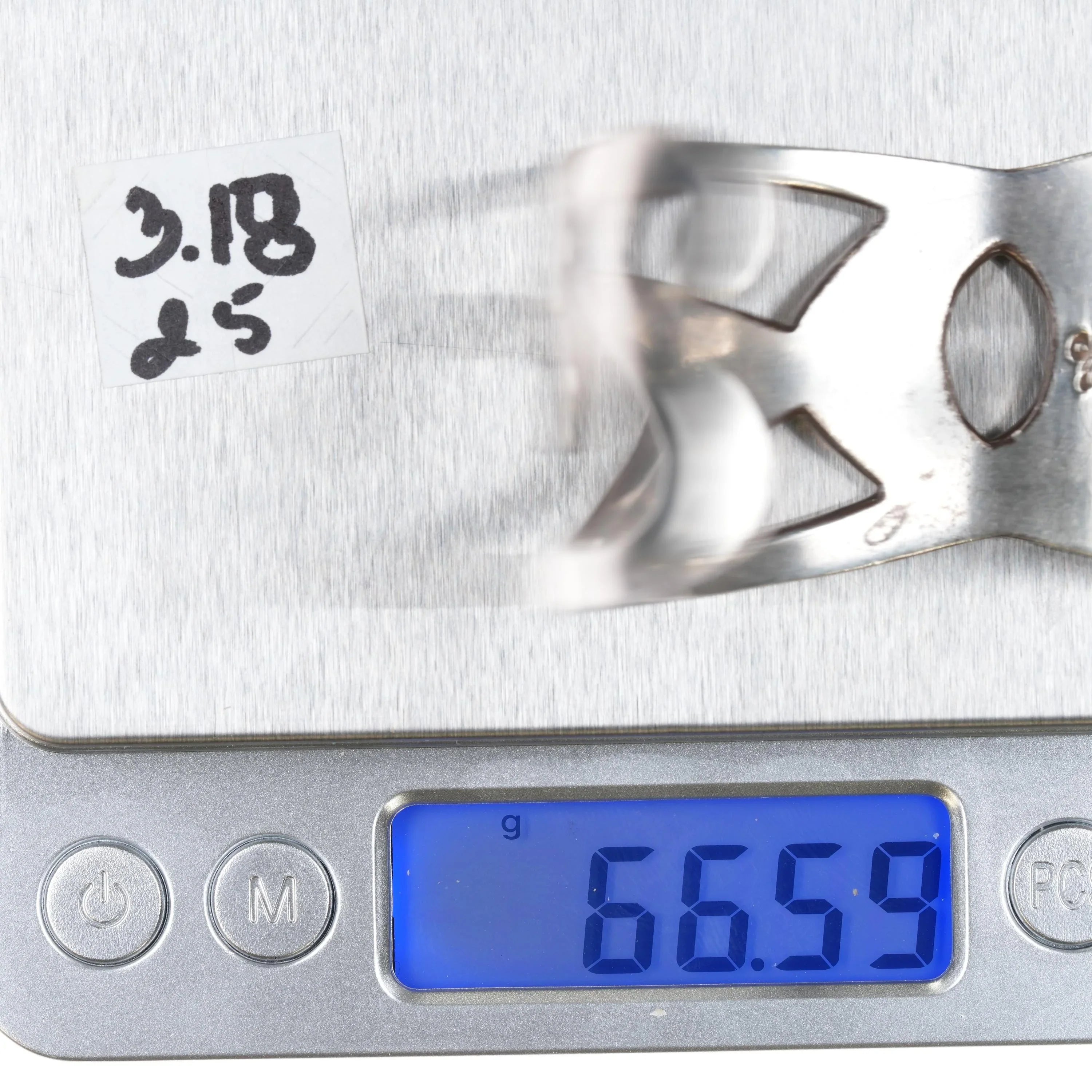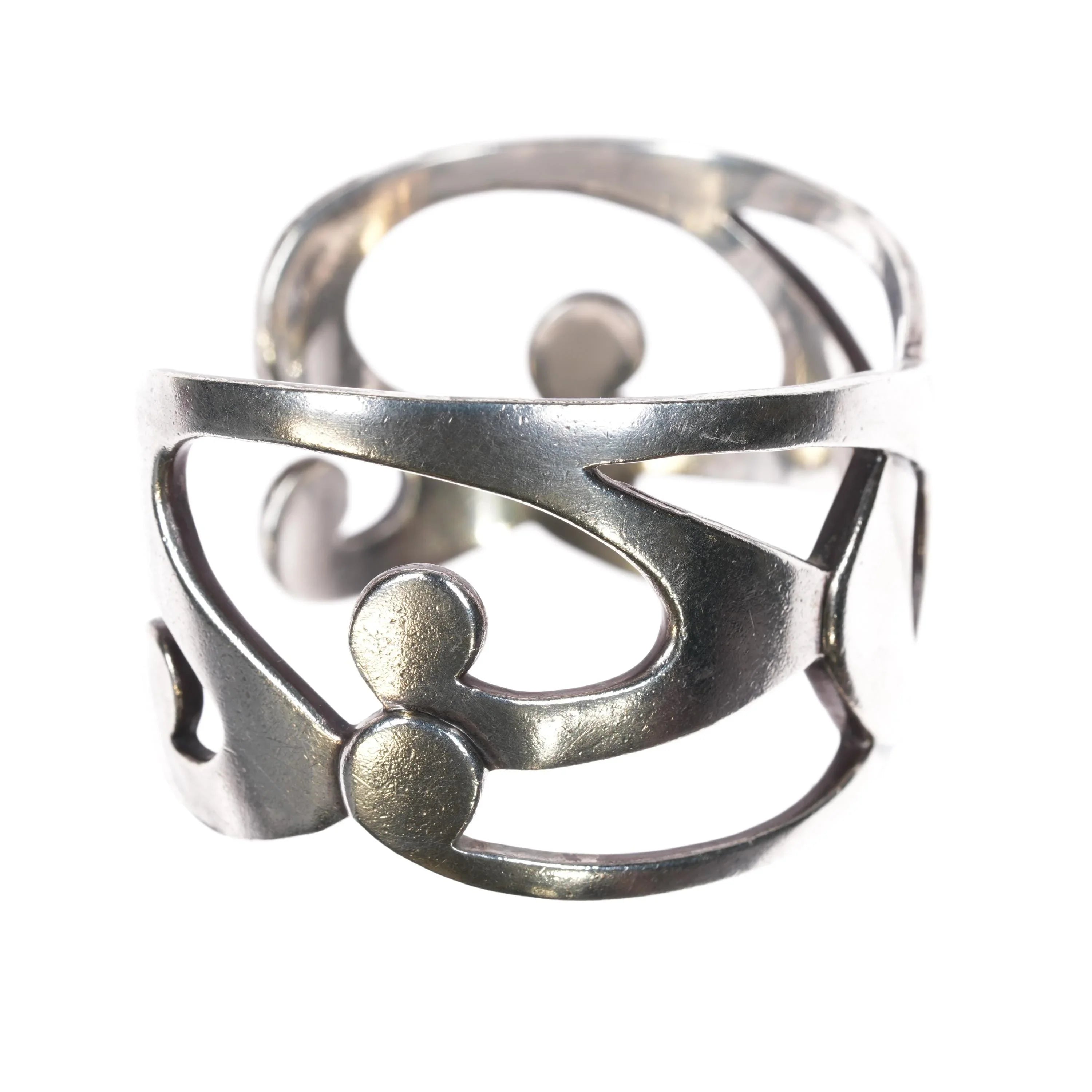 6.5" WM Modernist sterling cuff bracelet. Solid sterling silver guaranteed, weight and measurement in pics. No damage, some expected wear that could easily be buffed out if considered a distraction.