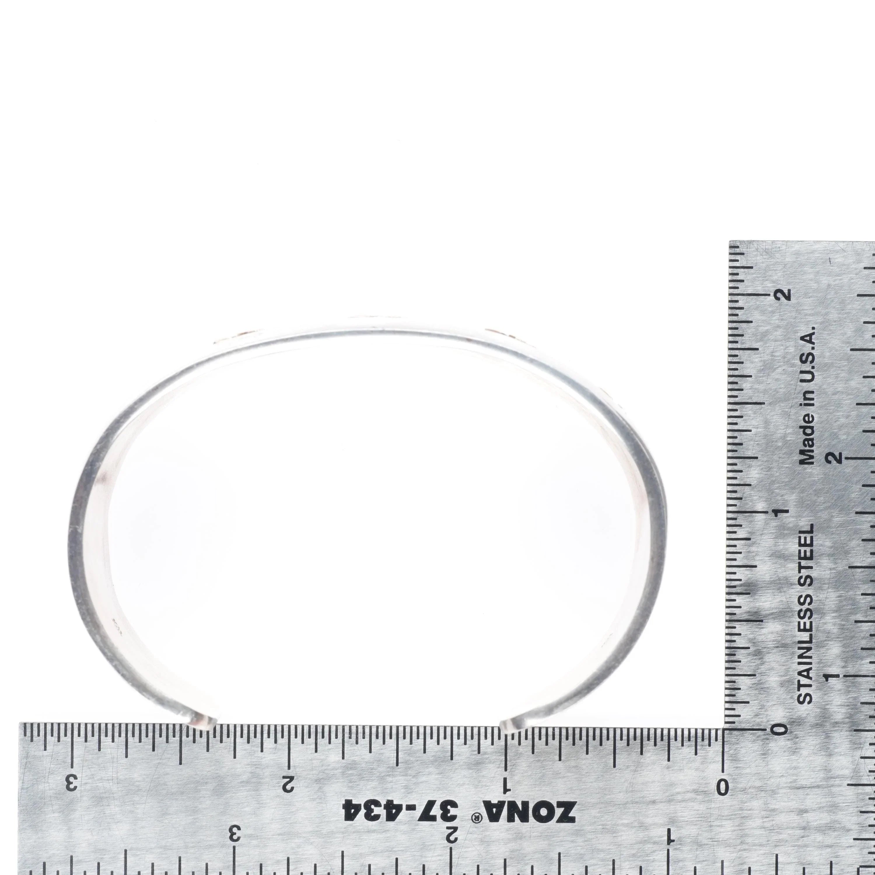 Bennetts jewelry exudes a level of intricate detail not seen in other Hopi overlay jewelry. He created his jewelry by overlaying multiple layers of silver and finished with delicate oxidation and intricate hand texturing. This interesting contrast in the textures of his silverwork is what really makes his work stand out. Bennett specialized in the Kachina designs, including dance scenes with kivas and pueblos in the background.