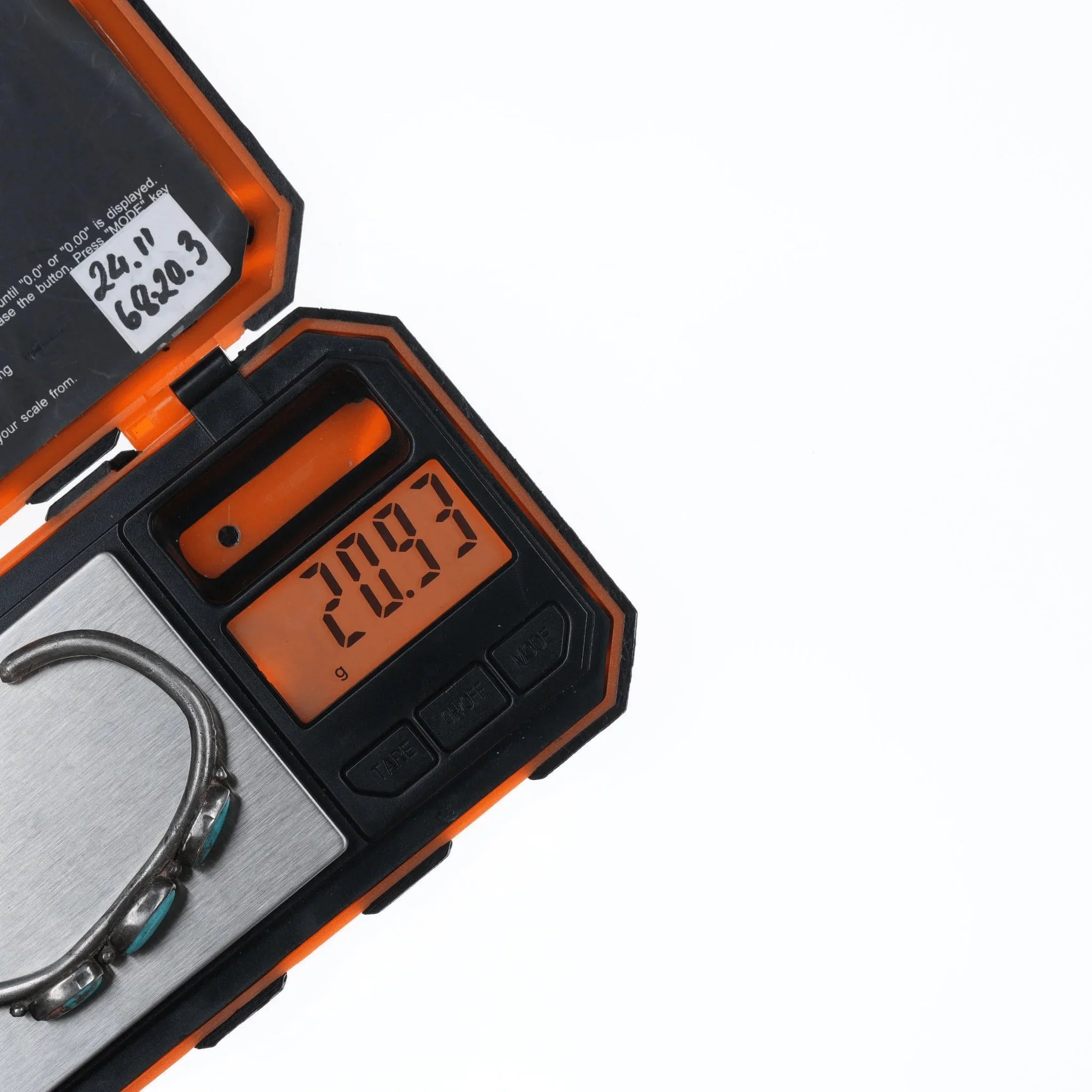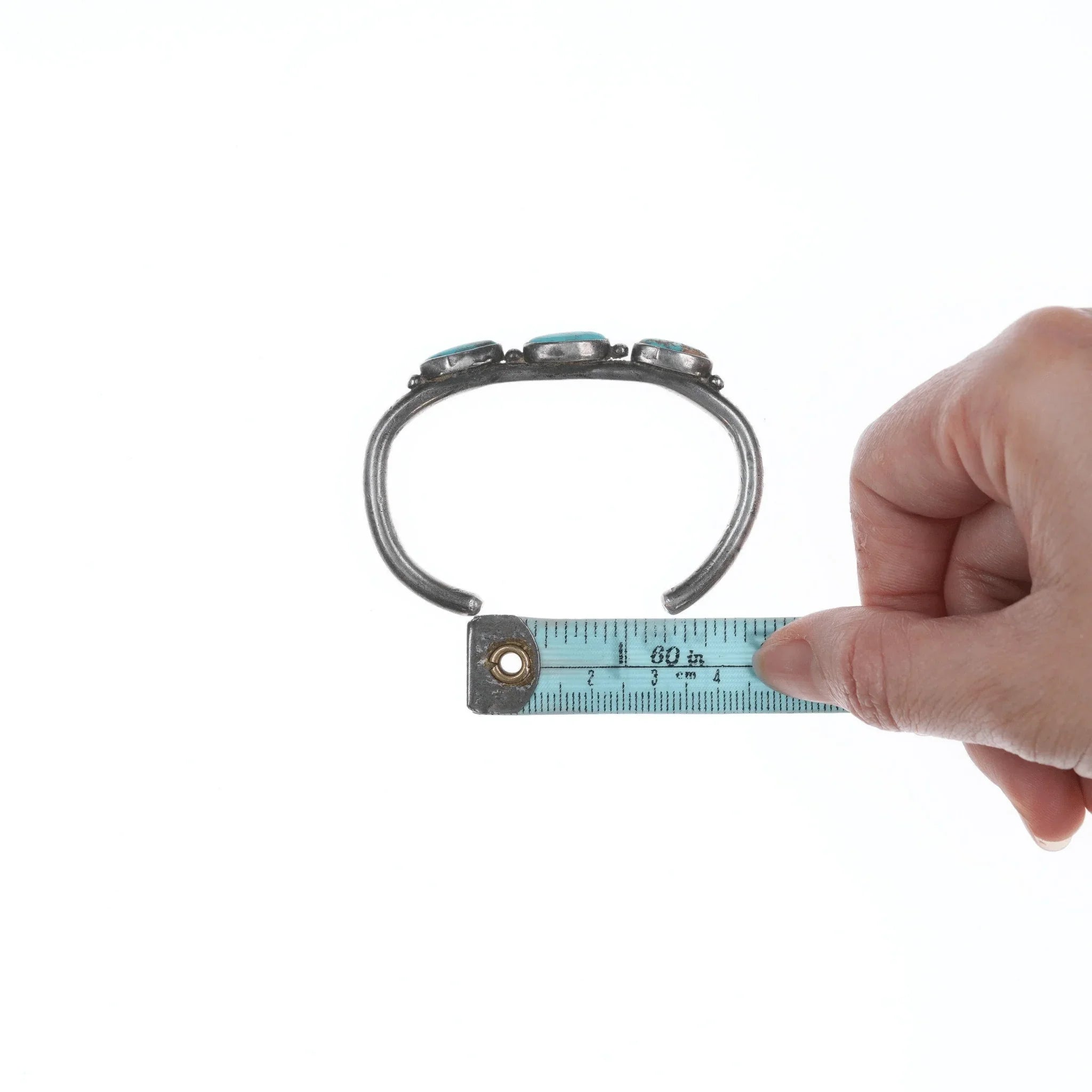 6" 20's-30's Navajo stamped silver 3 stone turquoise cuff bracelet.